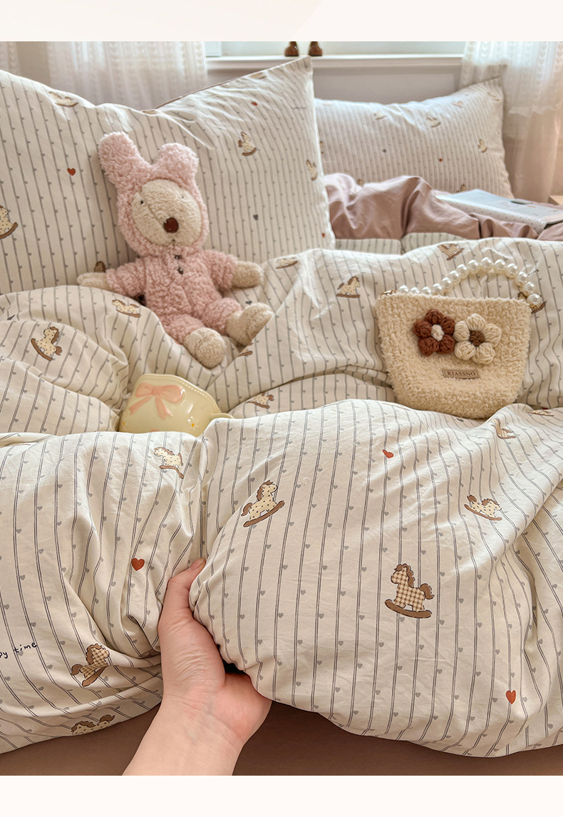 当前位置: 91家纺网 > 商品网购 > 床品套件 > 四件套 > 水洗棉四件套 > 优尚佳生活馆 【提供买家秀】2026新款加厚水洗仿棉A类印花四件套 快乐木马