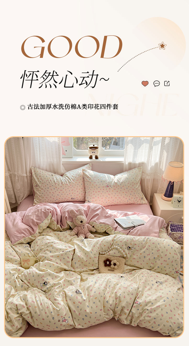 当前位置: 91家纺网 > 商品网购 > 床品套件 > 四件套 > 水洗棉四件套 > 优佳优品 【提供买家秀】2026新款加厚水洗仿棉A类印花四件套 碎花旺财