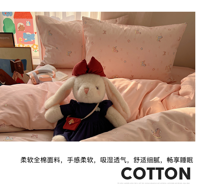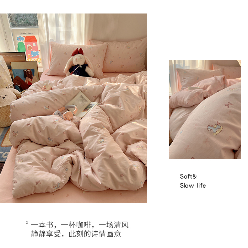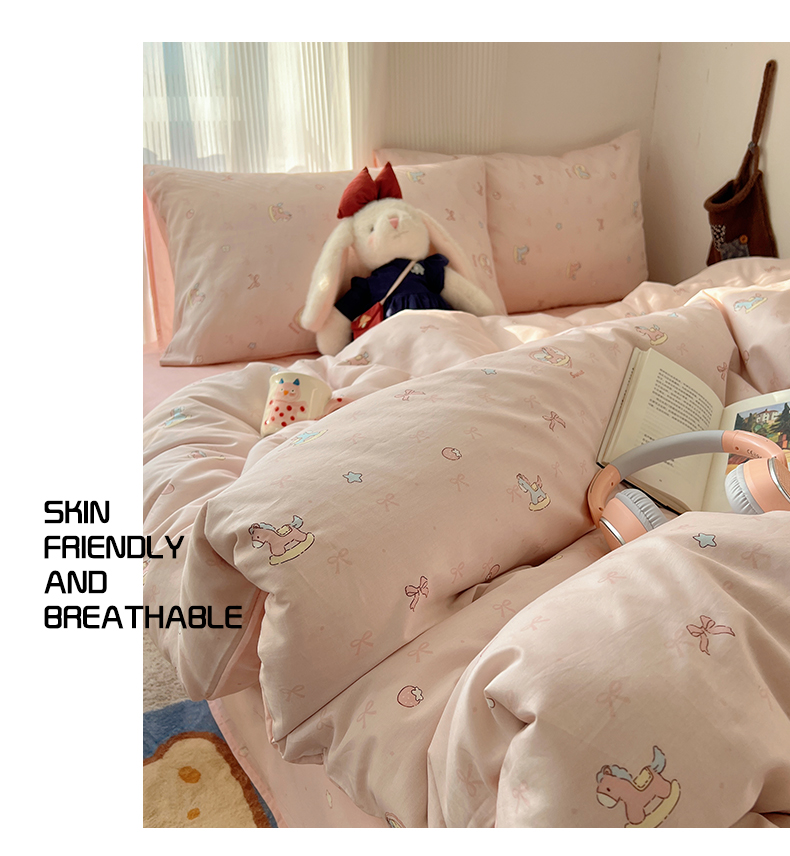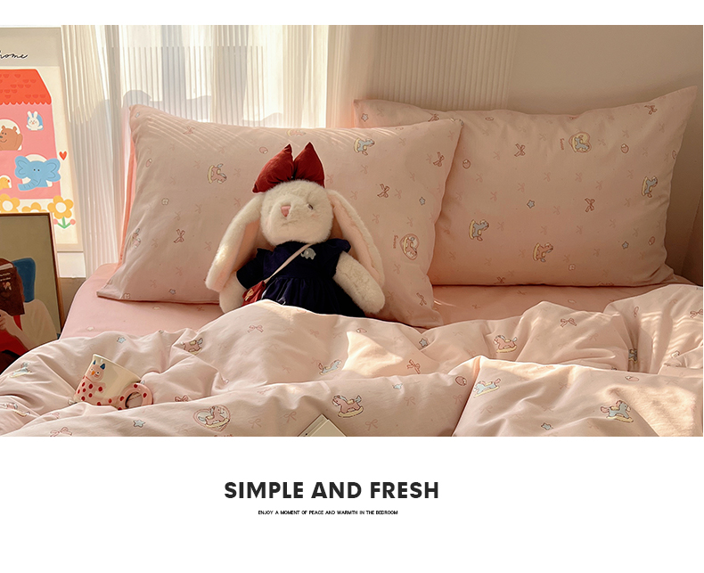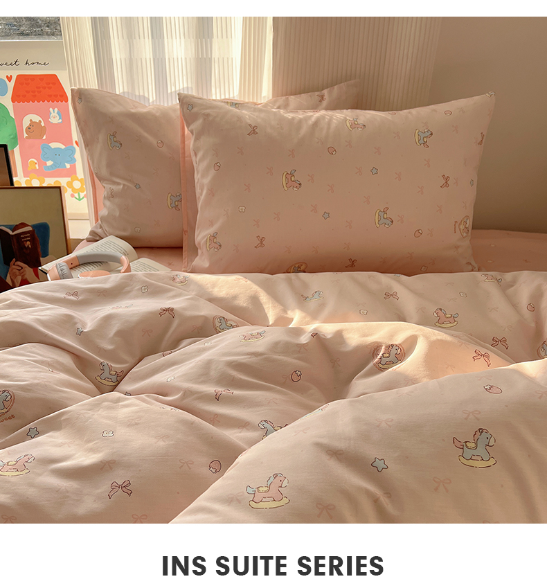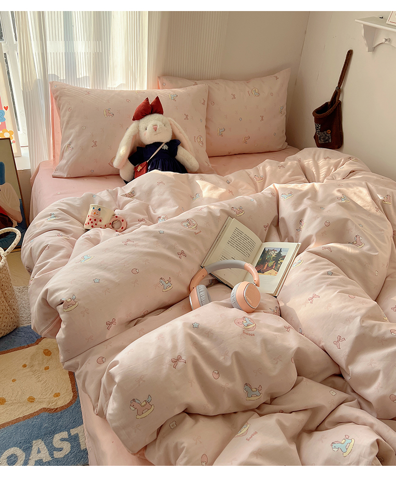 当前位置: 91家纺网 > 商品网购 > 床品套件 > 四件套 > 全棉普通四件套 > XIWEN-希文家纺 2026春夏新款40支全棉13372卡通四件套 草莓小马-粉