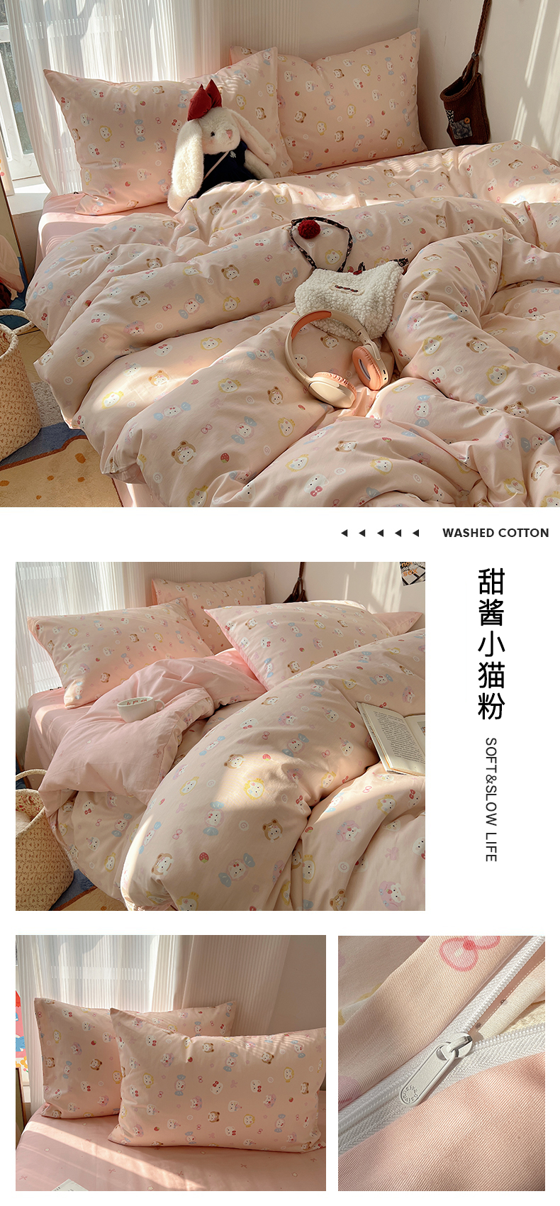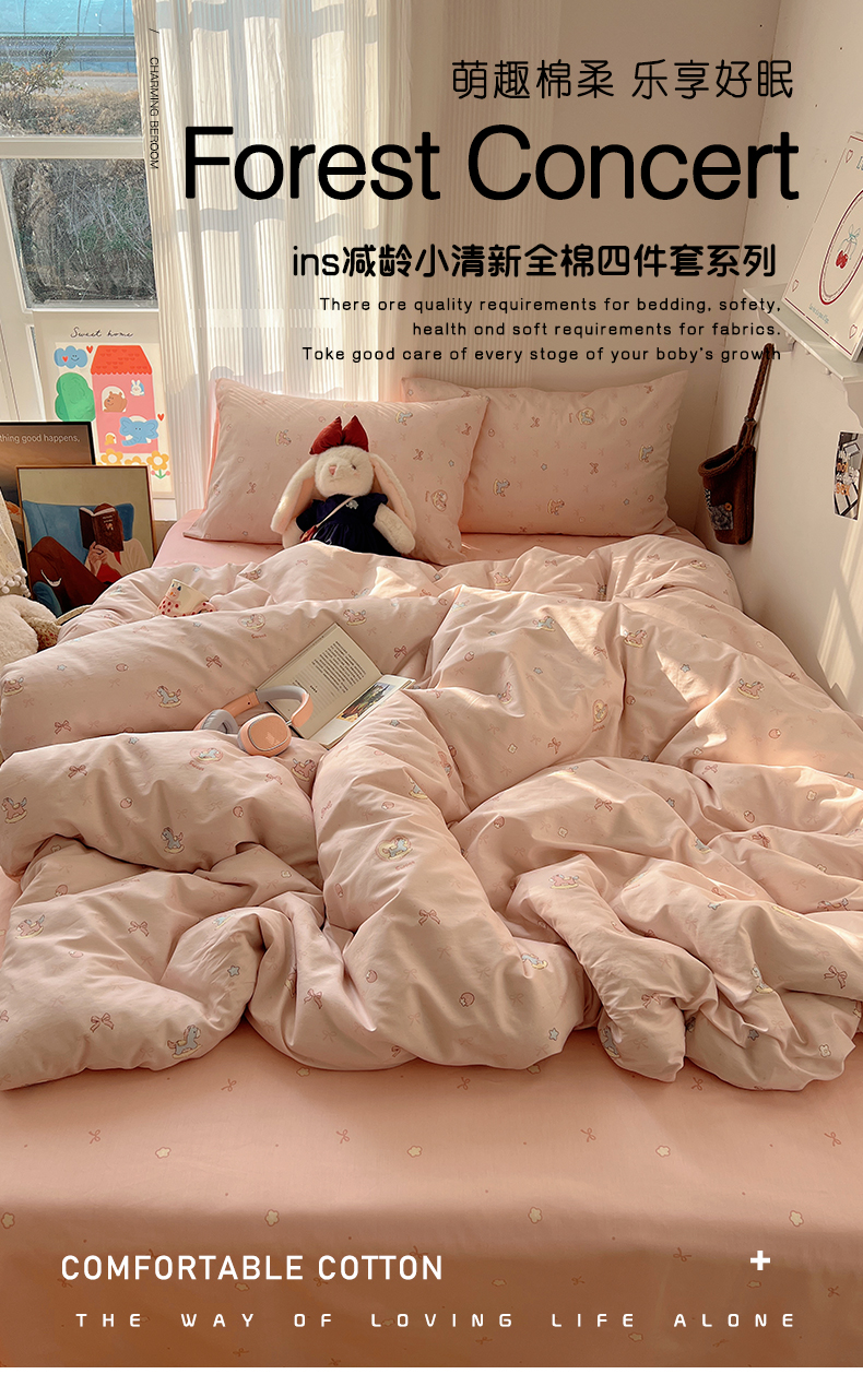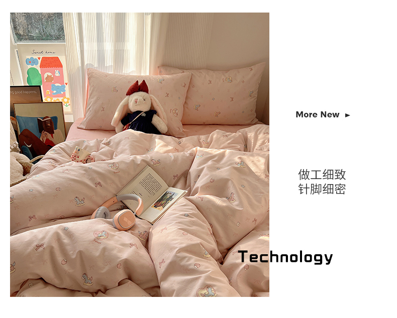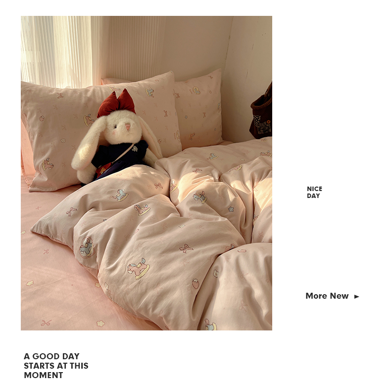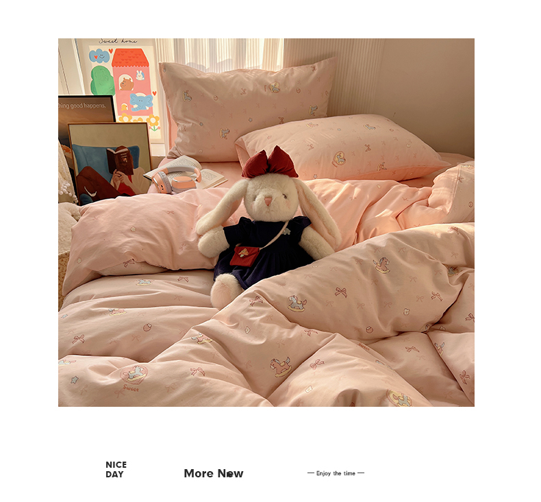 当前位置: 91家纺网 > 商品网购 > 床品套件 > 四件套 > 全棉普通四件套 > XIWEN-希文家纺 2026春夏新款40支全棉13372卡通四件套 草莓小马-粉