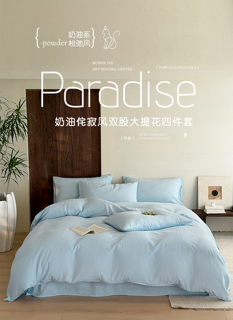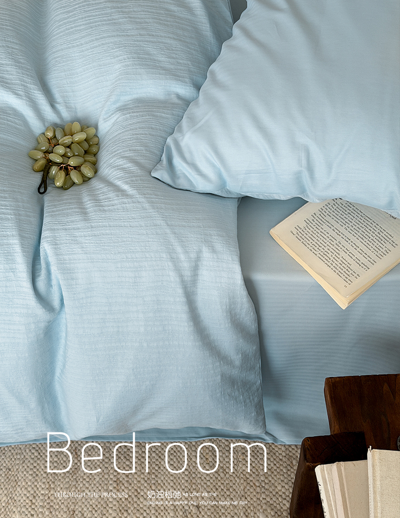 当前位置: 91家纺网 > 商品网购 > 床品套件 > 四件套 > 全棉普通四件套 > 静家居-简约原创家纺 2026新款奶油叱咤风60s全棉纯棉厚织提花四件套轻屿 轻屿-天蓝