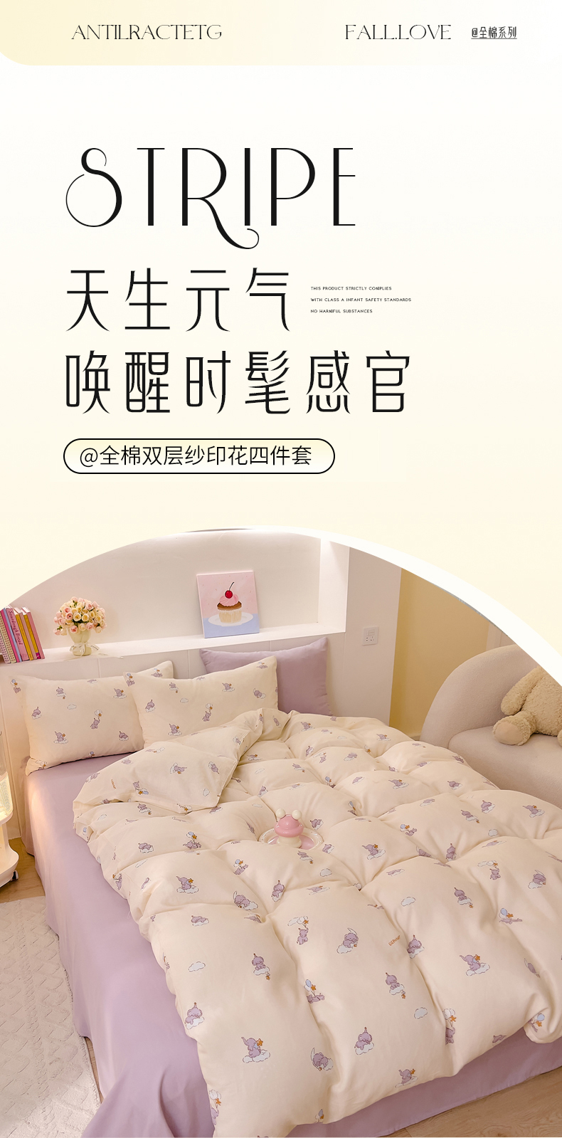 当前位置: 91家纺网 > 商品网购 > 床品套件 > 四件套 > 双层纱四件套 > DoDo 兜兜 2026新款全棉纯棉小温暖双层纱四件套【可定做尺寸】气球小象