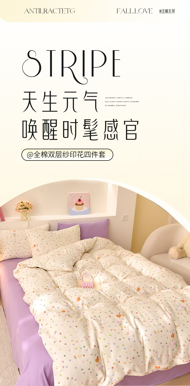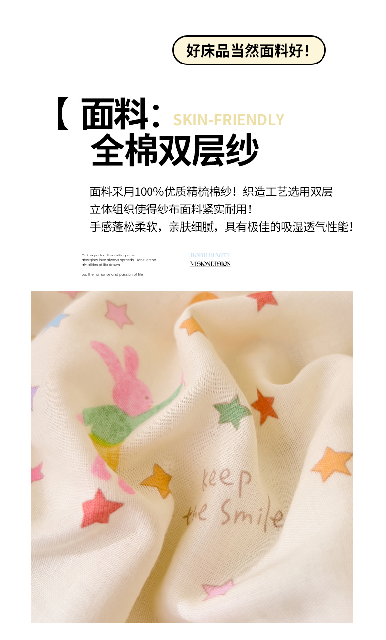 当前位置: 91家纺网 > 商品网购 > 床品套件 > 四件套 > 双层纱四件套 > DoDo 兜兜 2026新款全棉纯棉小温暖双层纱四件套【可定做尺寸】缤纷小兔