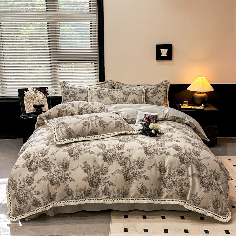 (总)漫仙阁家纺 2025秋冬新品加厚高克重复古风双层纱印花四件套,一叶,城堡花园,浮绘花影,格颂,花之舞,露娜,曼妙花园-灰,曼妙花园-紫,梅花颂,夕颜