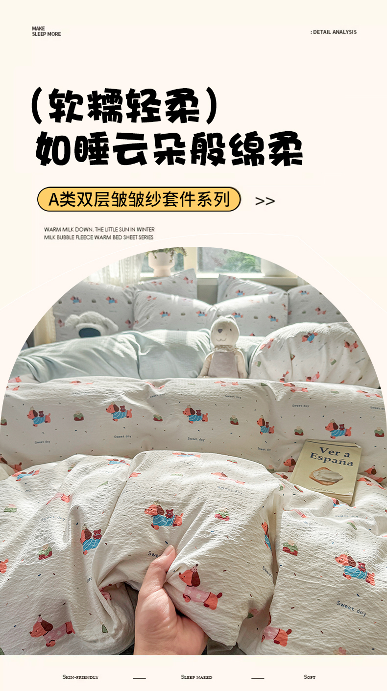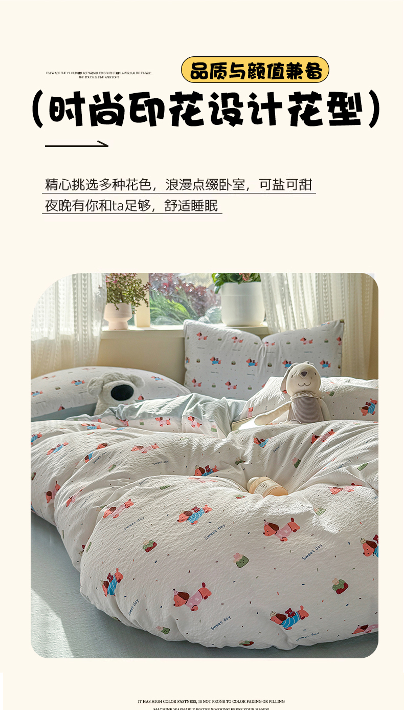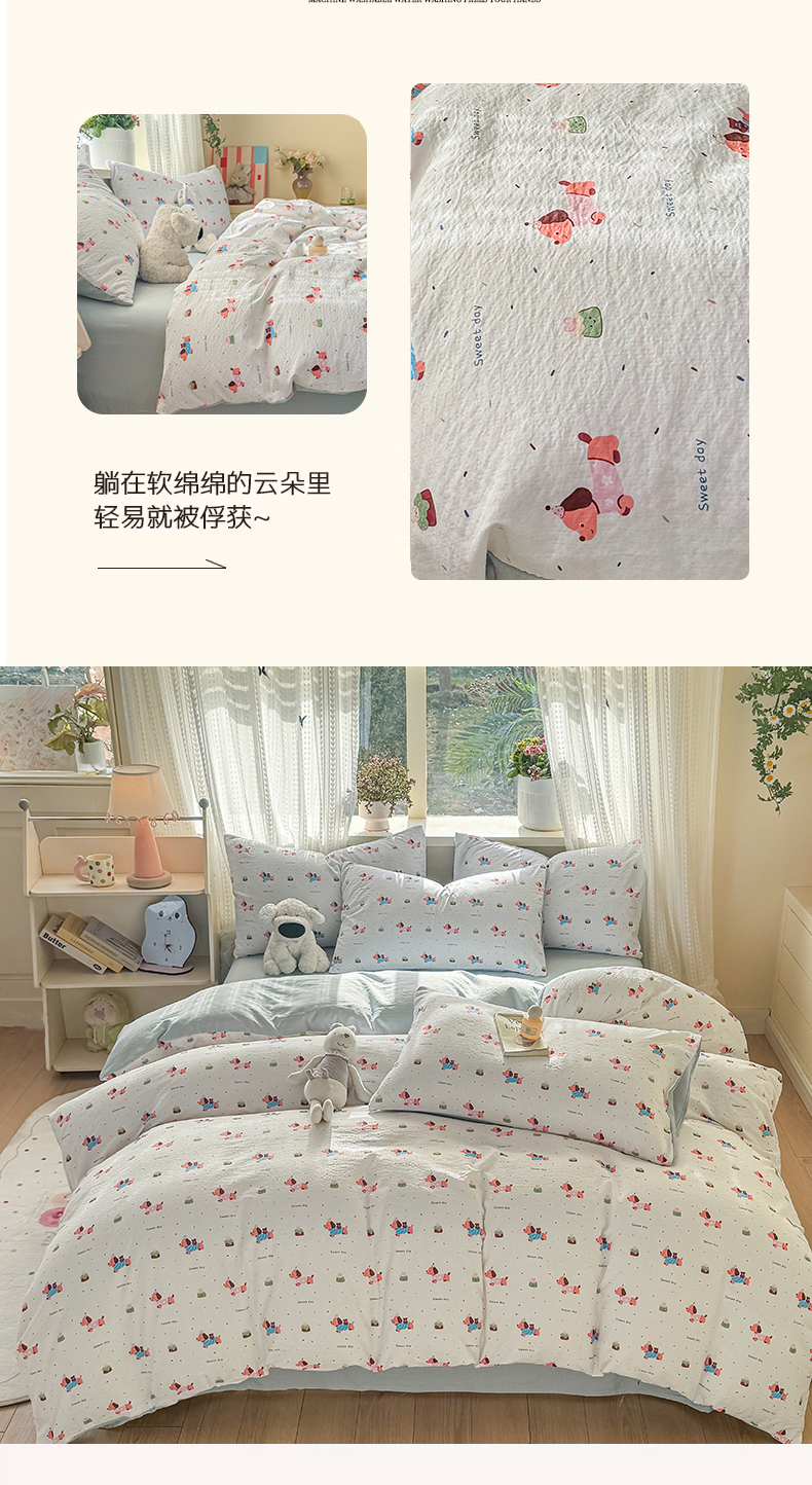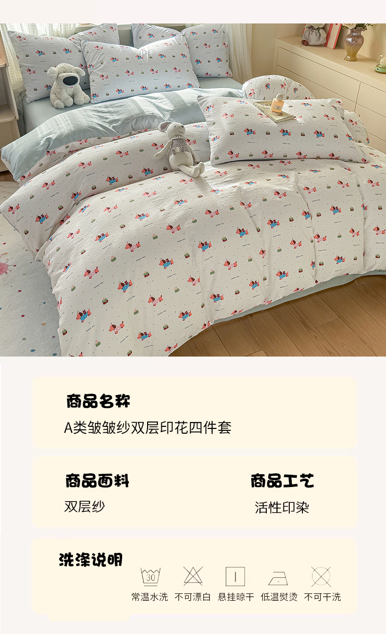 当前位置: 91家纺网 > 商品网购 > 床品套件 > 四件套 > 双层纱四件套 > 丽美人家纺 2026新款A类皱皱纱双层印花四件套 洛洛小狗