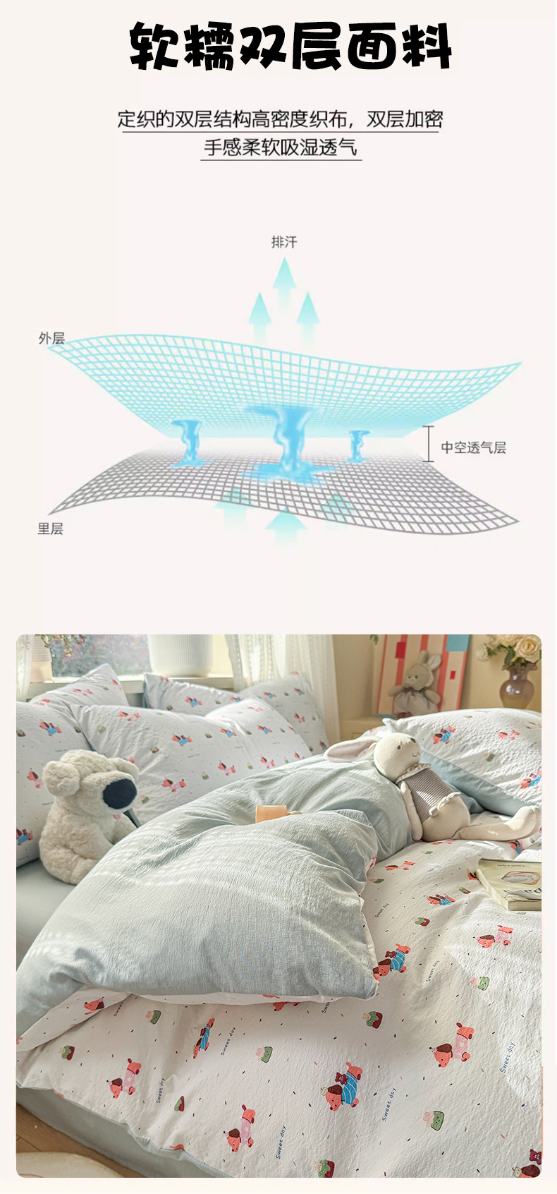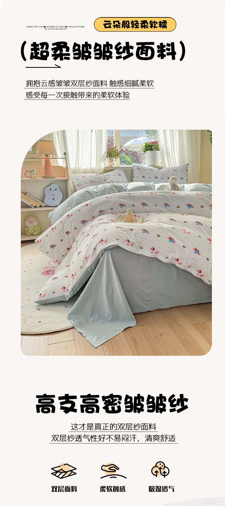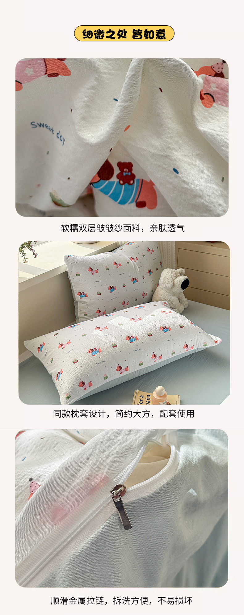 当前位置: 91家纺网 > 商品网购 > 床品套件 > 四件套 > 双层纱四件套 > 丽美人家纺 2026新款A类皱皱纱双层印花四件套 洛洛小狗