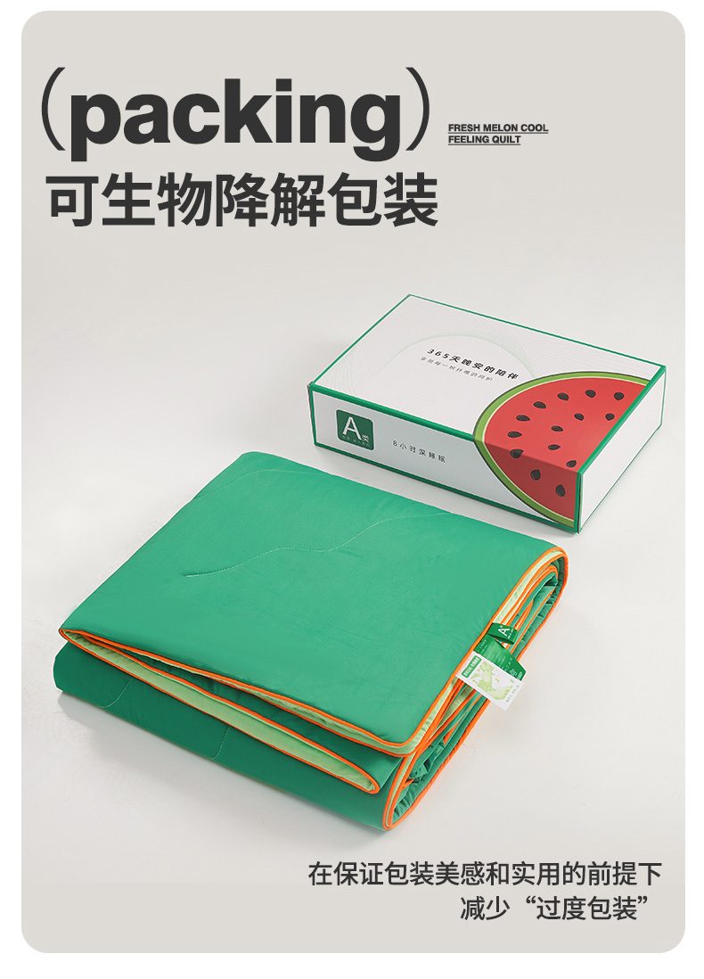 商品名称:爱彼家纺 2026春夏新款A类氨纶凉感丝西瓜大豆瓜瓜被夏被夏凉被空调被-系列二 瓜瓜被-西瓜绿