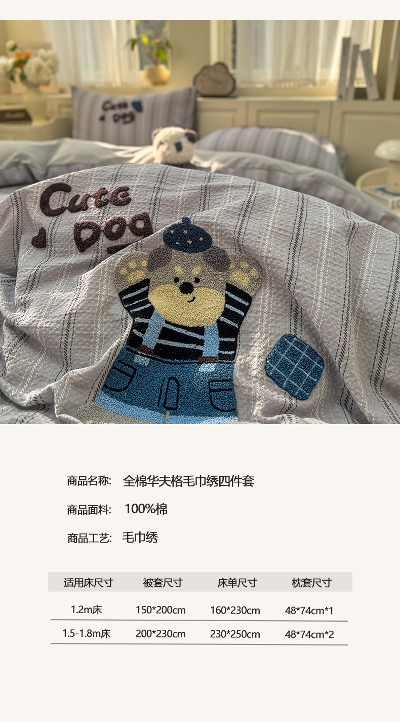 (总)帅露家纺 2026新款全棉纯棉华夫格毛巾绣四件套,爱心肥仔,波点熊,彩色日记,嘟嘟熊,绿色原野,文艺牛仔,雪崩崩,音乐派