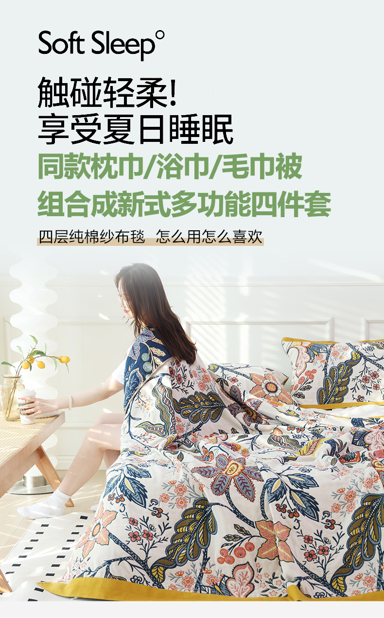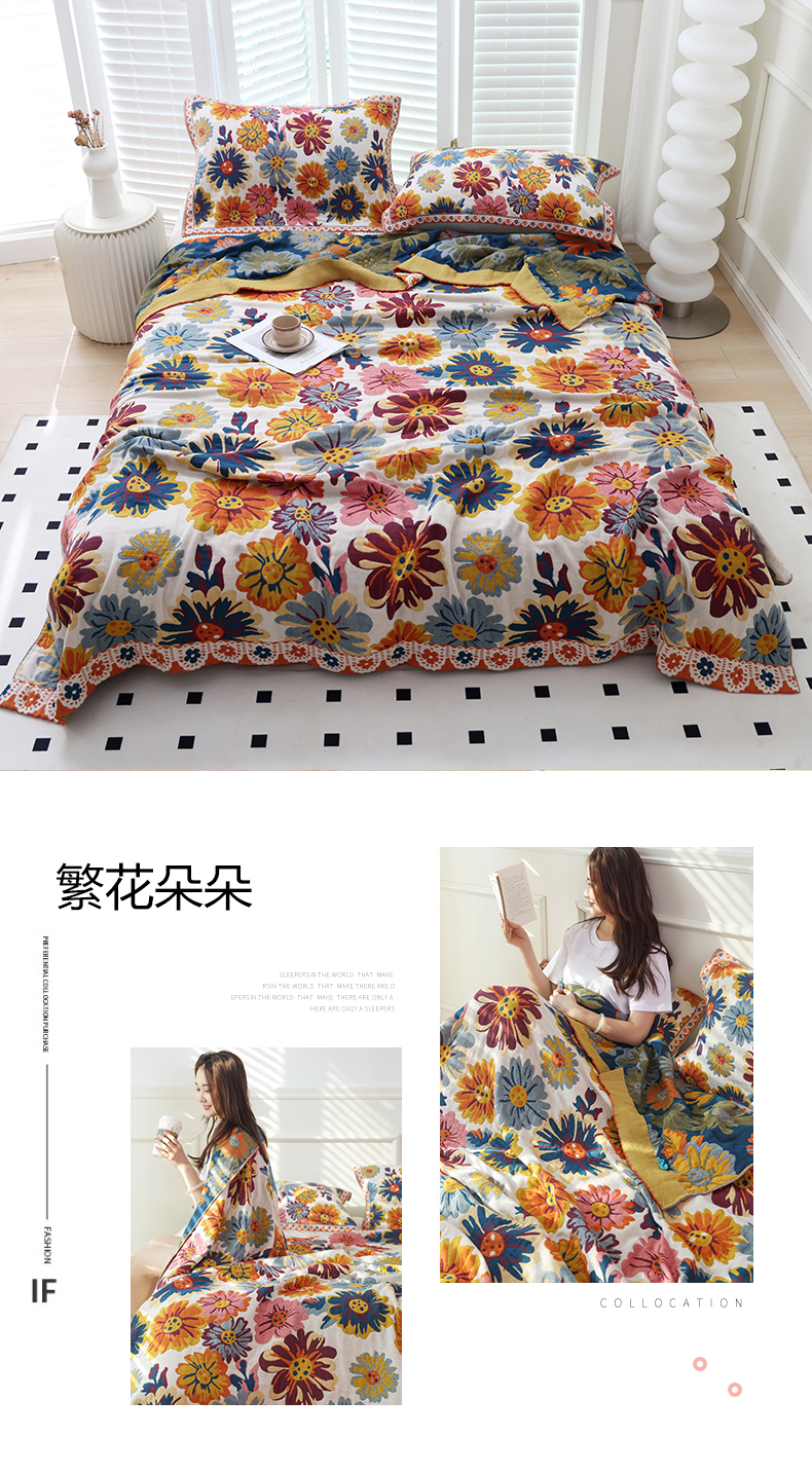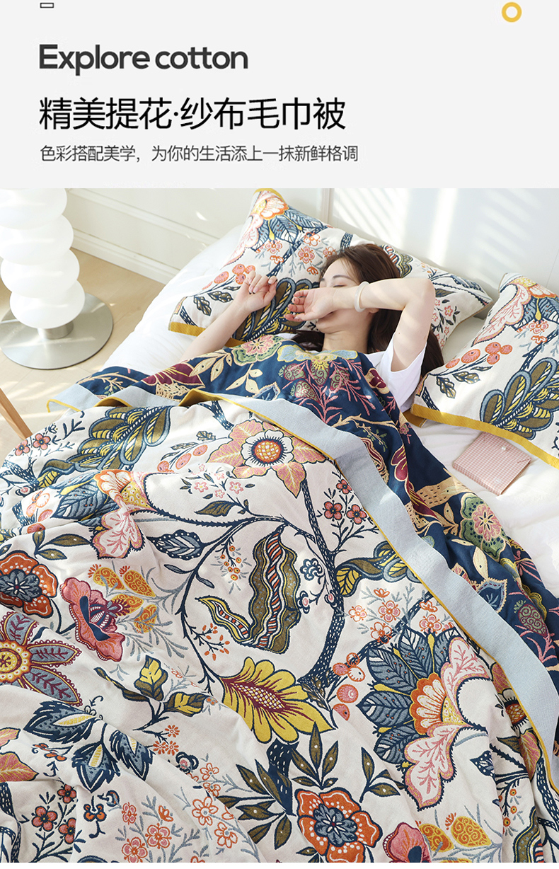 当前位置: 91家纺网 > 商品网购 > 被子 > 夏被 > 朴尔家纺-毛巾被 2026新款彩棉国潮风全棉纯棉四层纱布毛巾被枕巾浴巾四件套-朴尔经典款常年备货 繁花朵朵