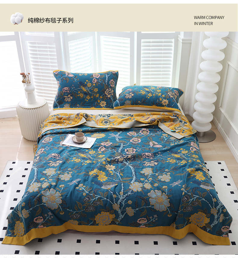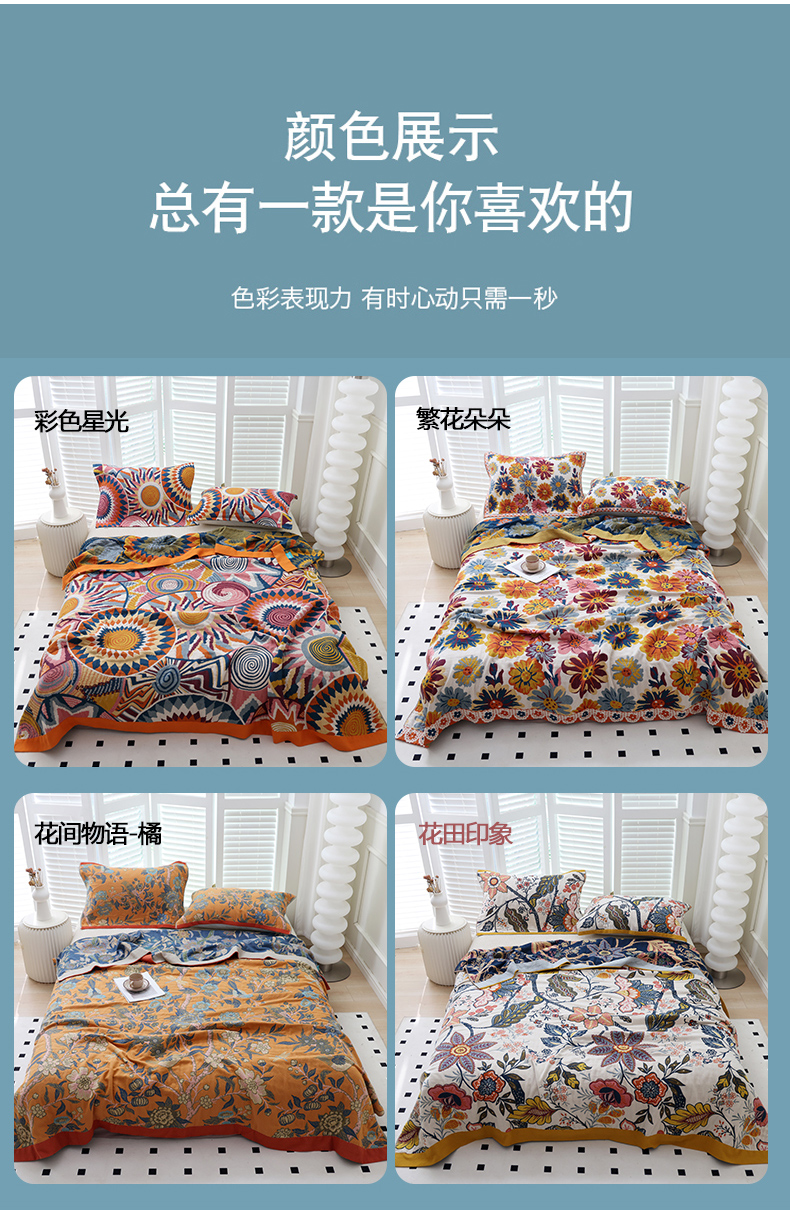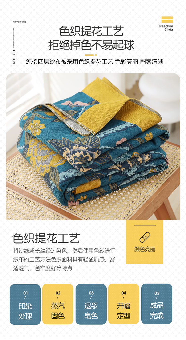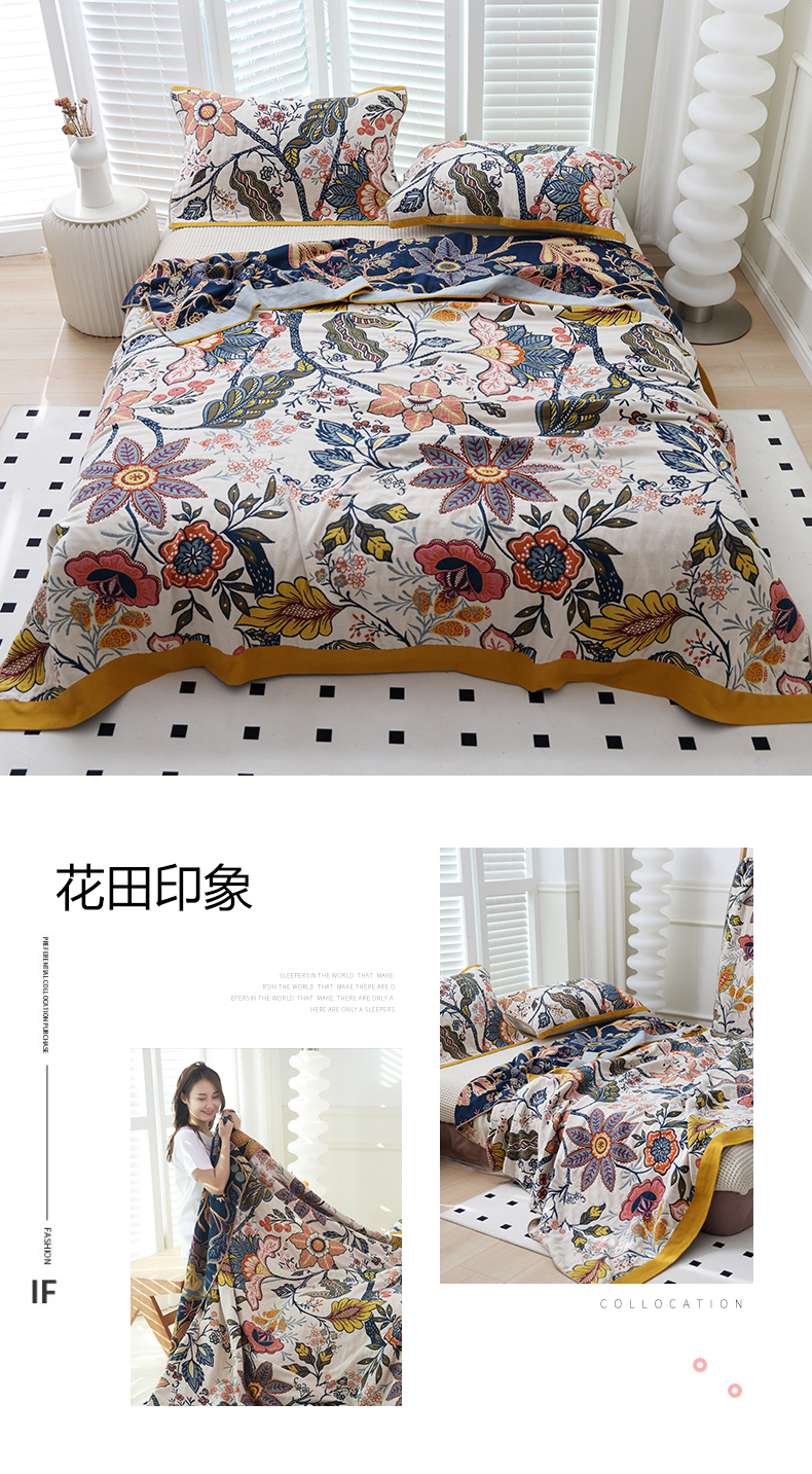 • 91家纺网 家纺一手货源 找家纺 朴尔家纺-毛巾被 2026新款彩棉国潮风全棉纯棉四层纱布毛巾被枕巾浴巾四件套-朴尔经典款常年备货 繁花朵朵