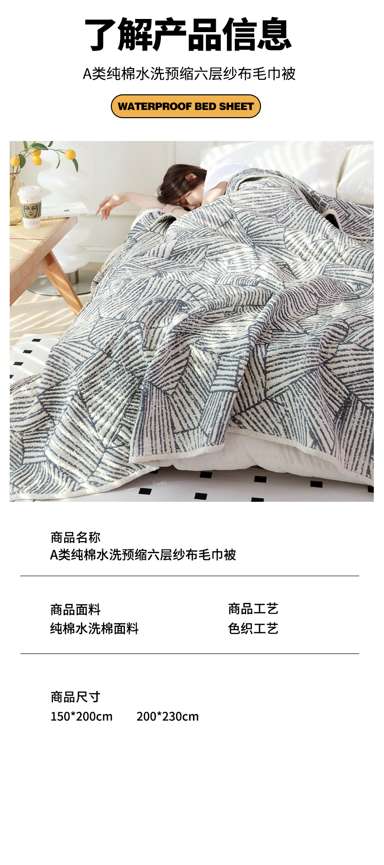 商品名称:朴尔家纺-毛巾被 2026春夏新款全棉纯棉水洗预缩加厚六层纱布毛巾被夏被夏凉被空调被 莫奈花园