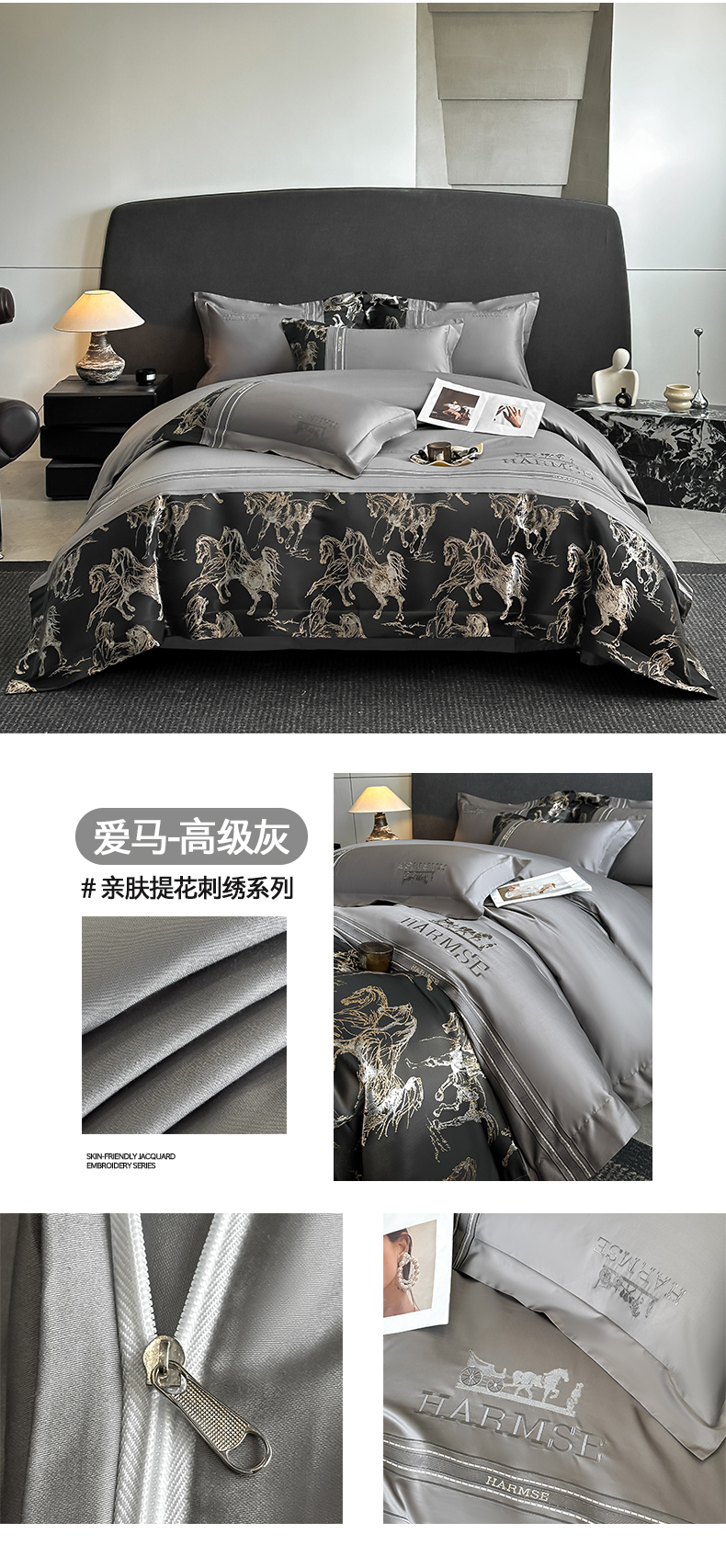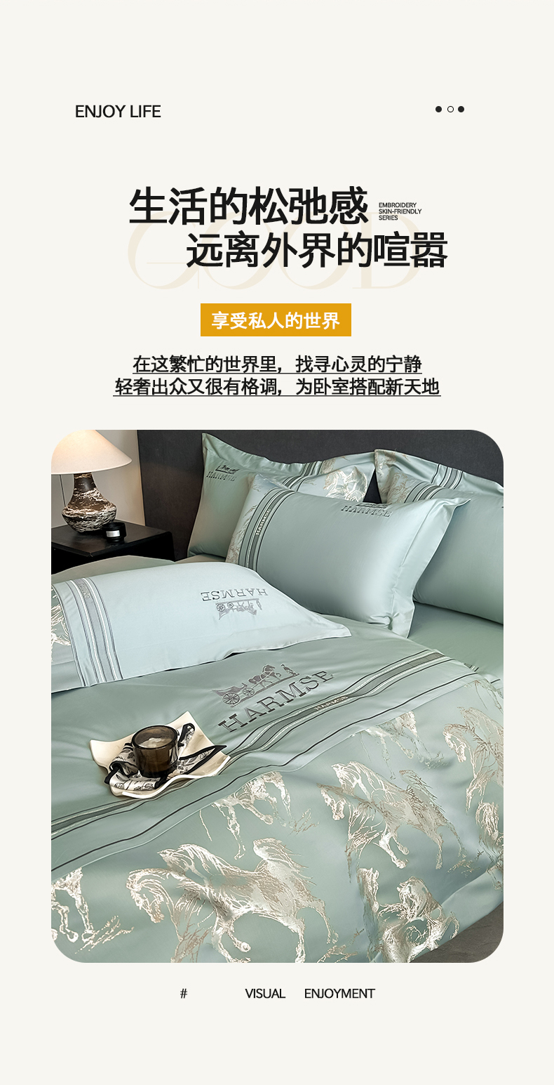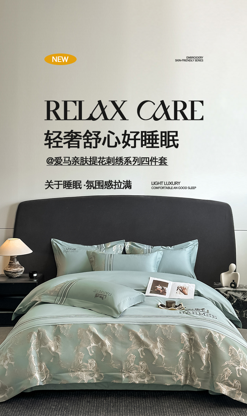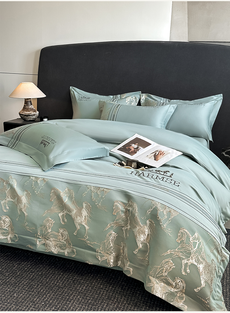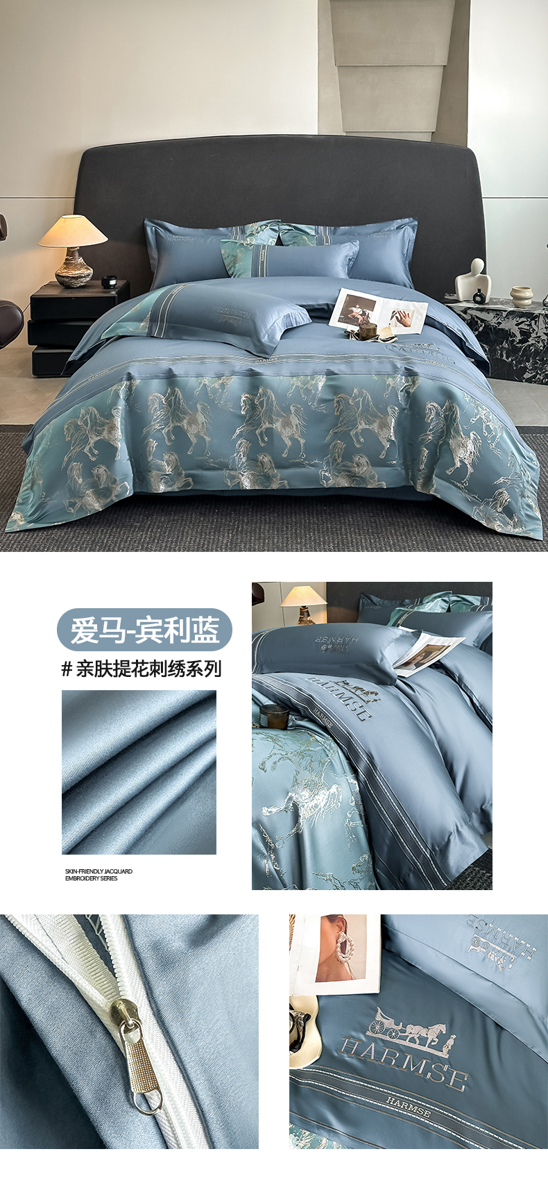 当前位置: 91家纺网 > 商品网购 > 床品套件 > 四件套 > 全棉普通四件套 > 置顶家纺 2026新款马年爱马亲肤提花刺绣系列四件套 爱马-繁星蓝