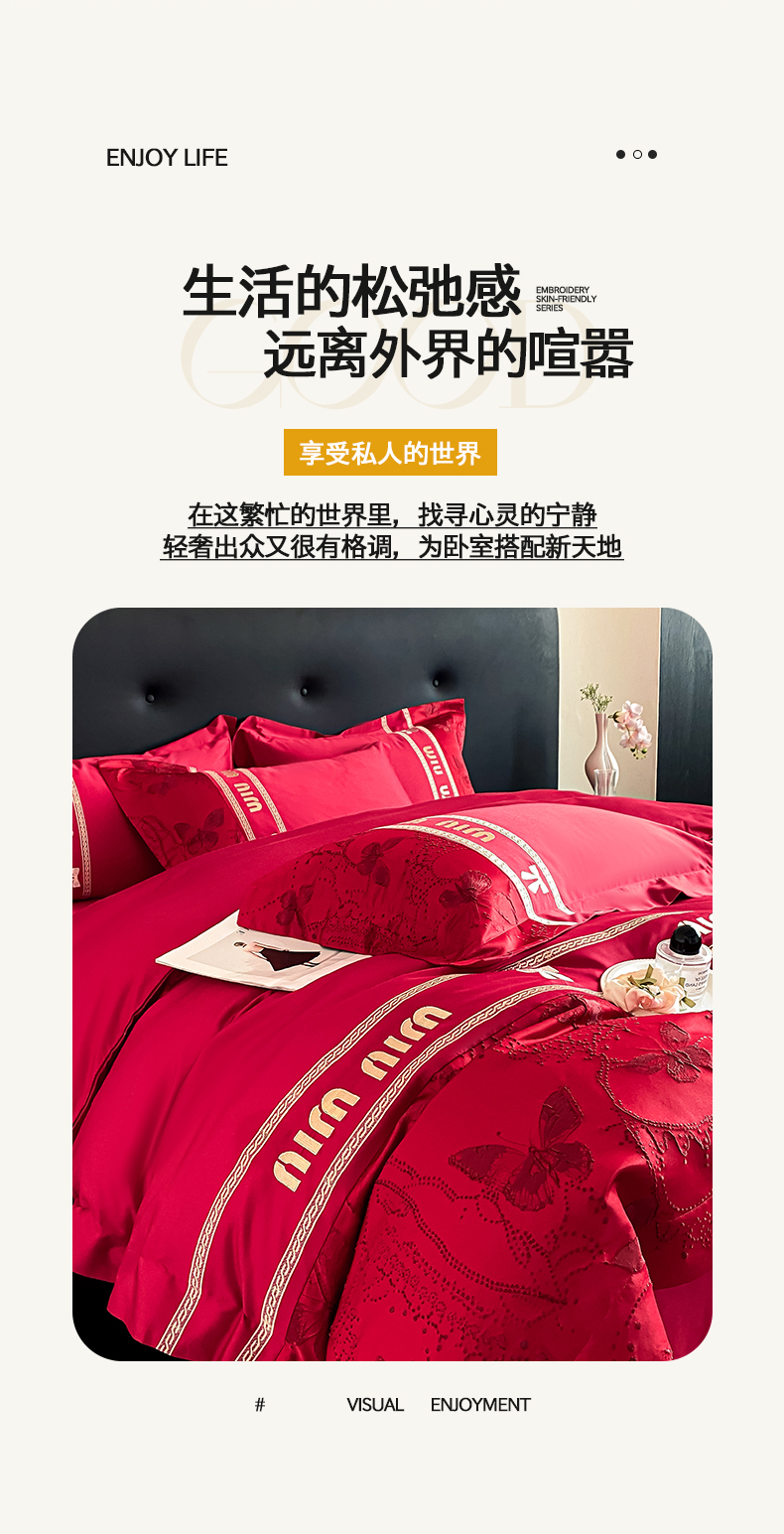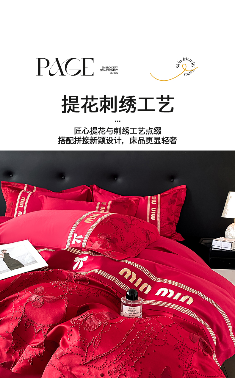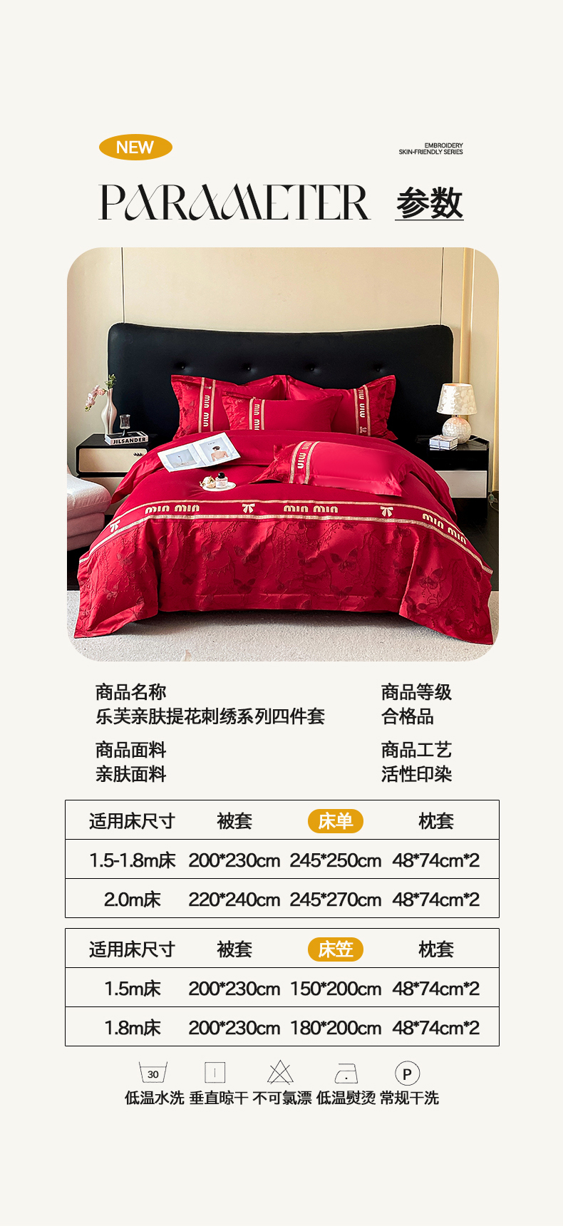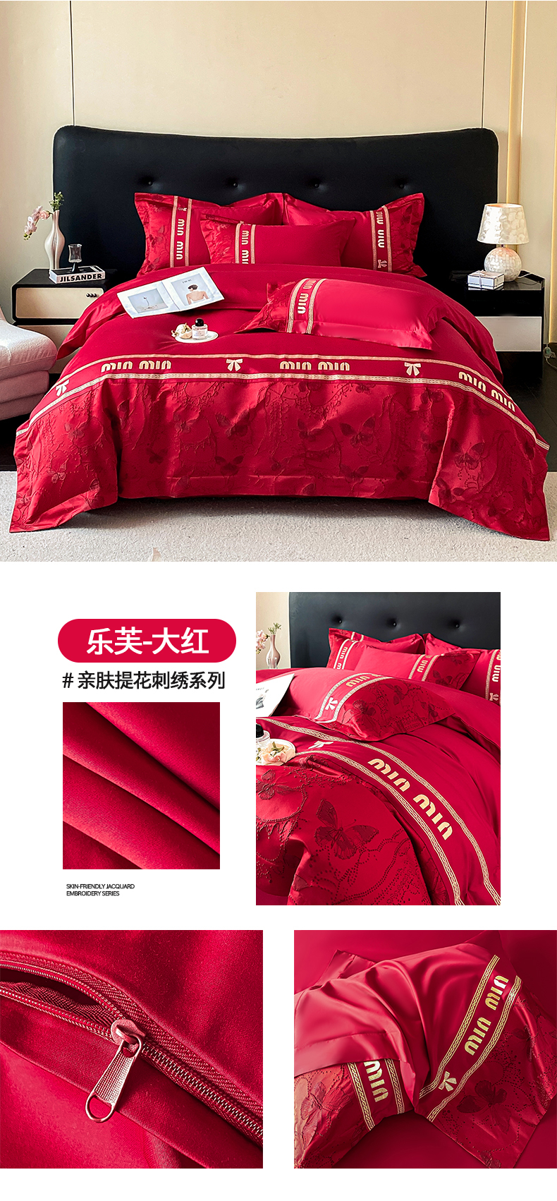 当前位置: 91家纺网 > 商品网购 > 床品套件 > 四件套 > 全棉普通四件套 > 置顶家纺 2026新款春夏乐芙亲肤提花刺绣系列四件套 乐芙-大红