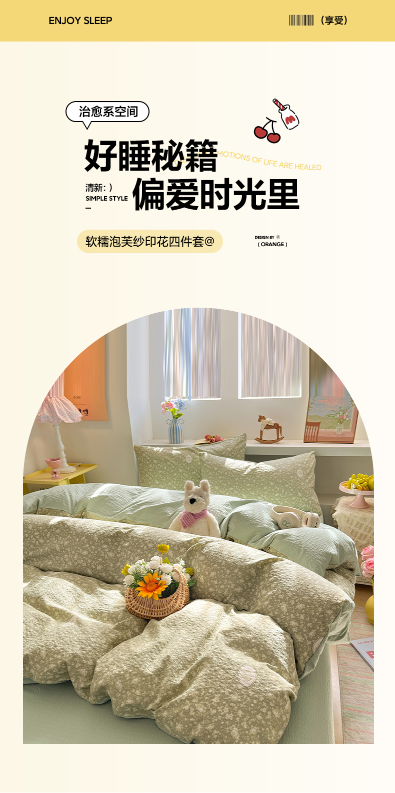 当前位置: 91家纺网 > 商品网购 > 床品套件 > 四件套 > 其它四件套 > 卡迪熊家纺 2026新款软糯泡芙纱印花四件套 花之世界