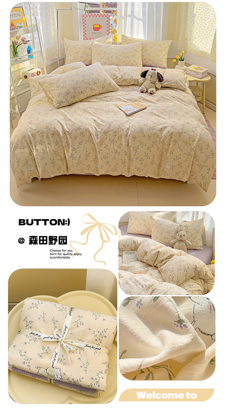 当前位置: 91家纺网 > 商品网购 > 床品套件 > 四件套 > 双层纱四件套 > 优选良品 2026新款加厚云感棉双层纱四件套小碎花被套床单床笠款学生三件套新款直播爆款 森田野园