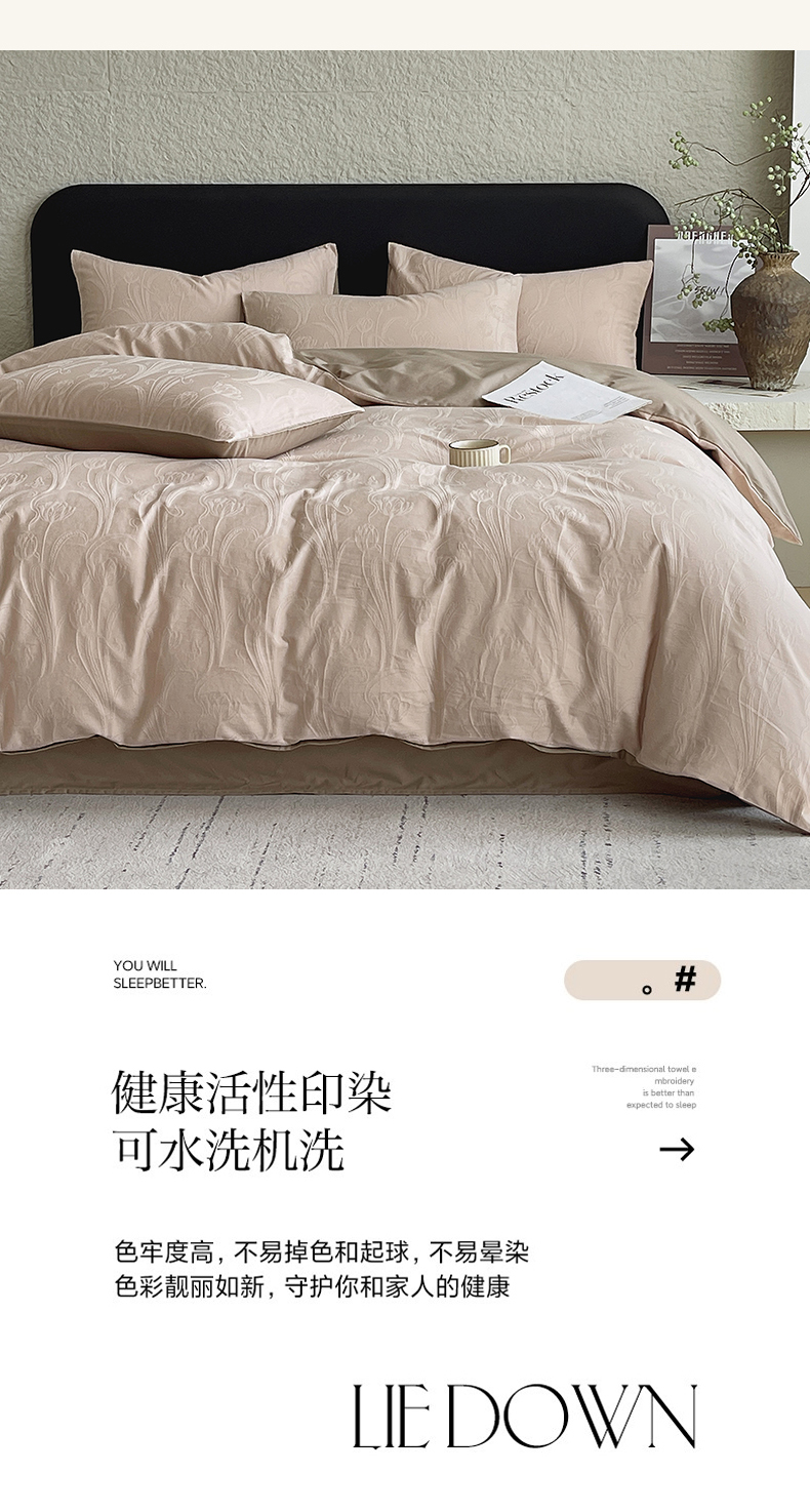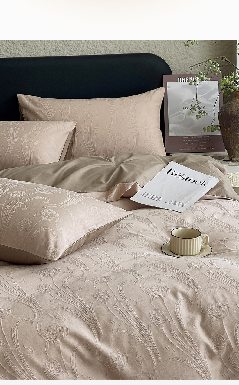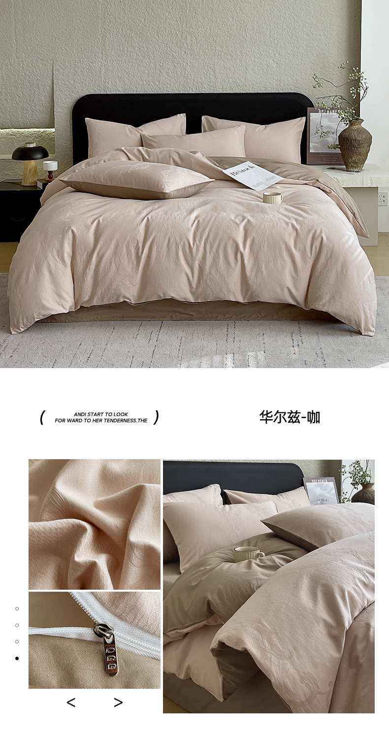 当前位置: 91家纺网 > 商品网购 > 床品套件 > 四件套 > 全棉普通四件套 > 琪格格纺织 2026新款60s精梳全棉纯棉厚织贡缎提花四件套 A类全棉立体浮雕床品 郁香浅渡-咖