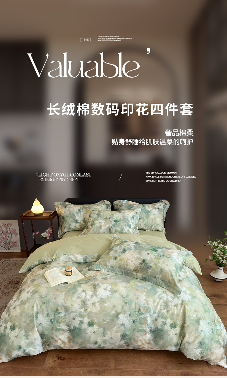 当前位置: 91家纺网 > 商品网购 > 床品套件 > 四件套 > 全棉普通四件套 > (总)优彩 2026新款长绒棉数码印花精梳全棉纯棉四件套