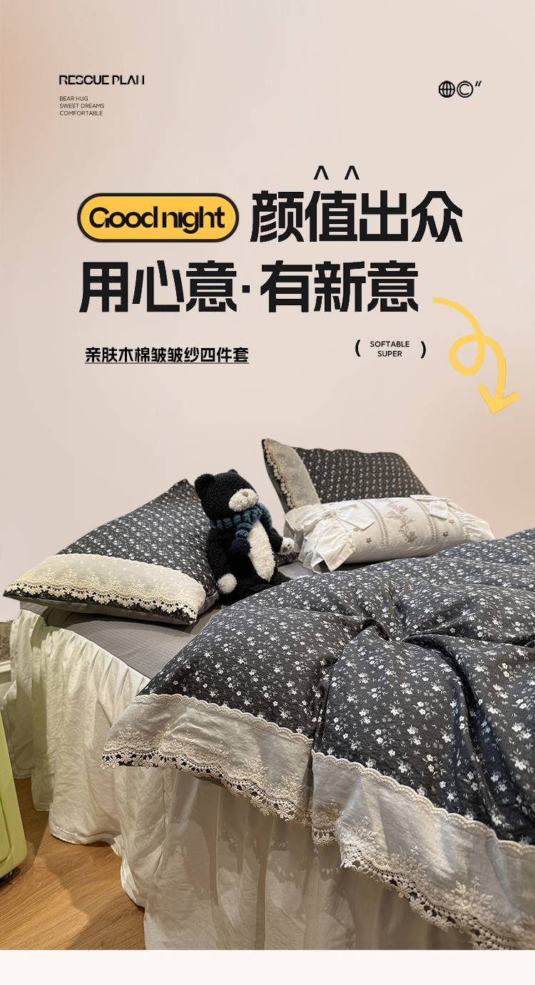 当前位置: 91家纺网 > 商品网购 > 床品套件 > 四件套 > 其它四件套 > 盼季家纺 2026新款亲肤木棉法式复古蕾丝花边皱皱纱四件套 复古蕾丝花边-秘密庄园