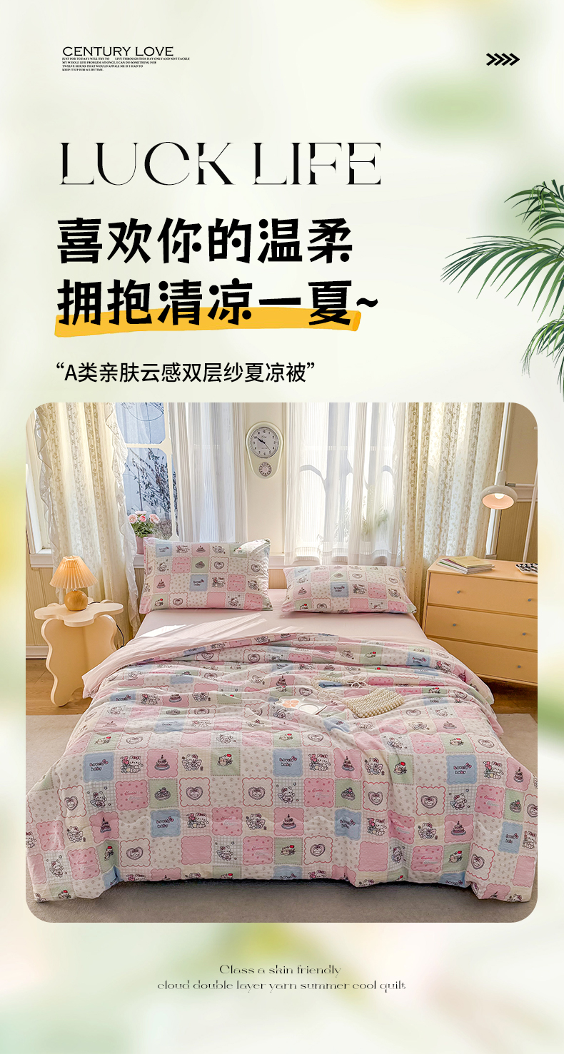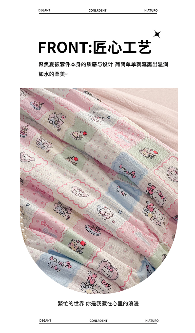 (总)艺菲阁家纺 2025新款卡通麻绳云感双层纱夏凉被,猫猫晚宴,猫咪恋人,奇妙小熊 咖,奇妙小熊米,兔子的欢喜,小猫时光-黄,小美冰淇淋,邮一颗草莓