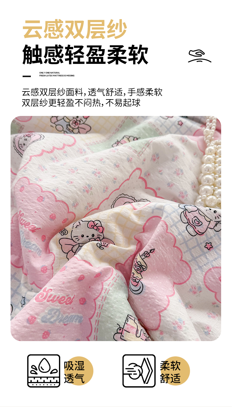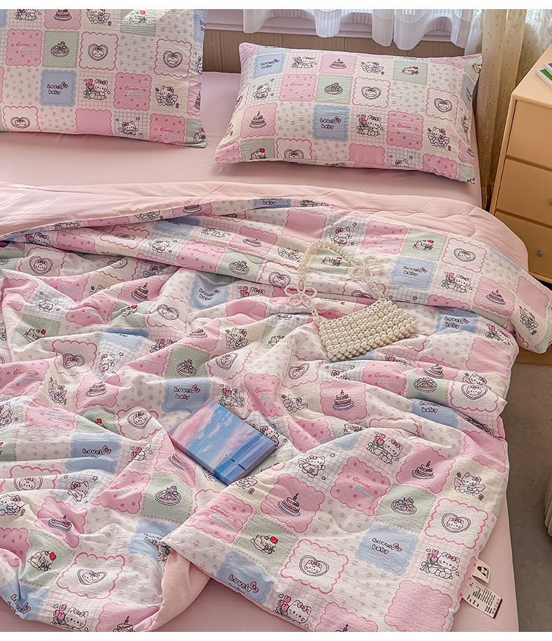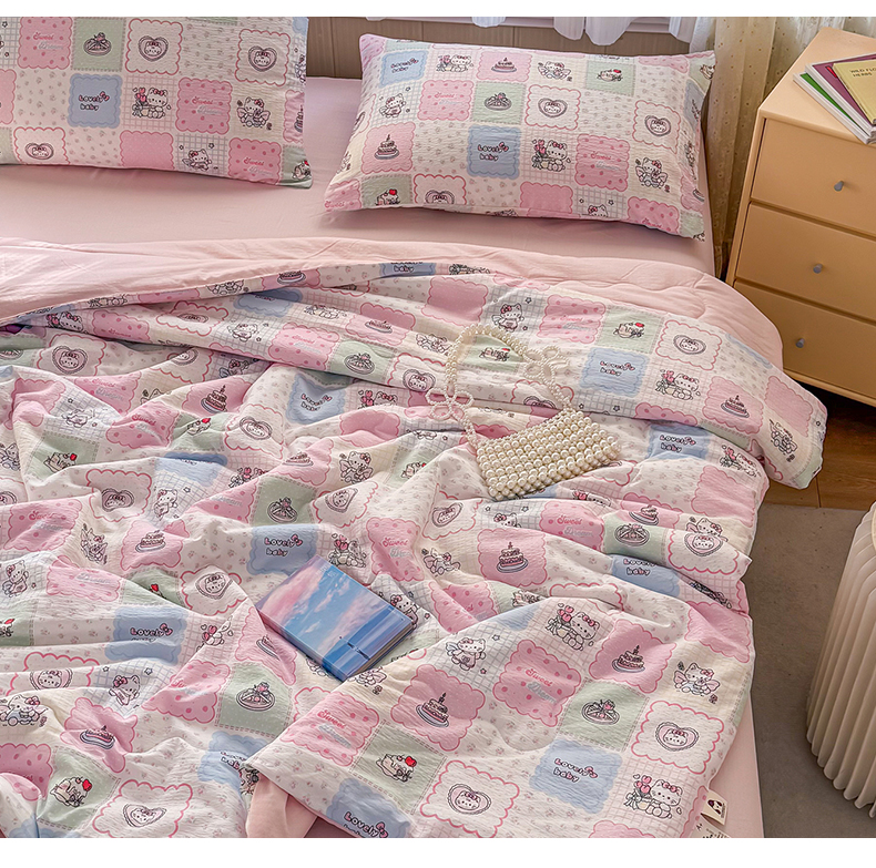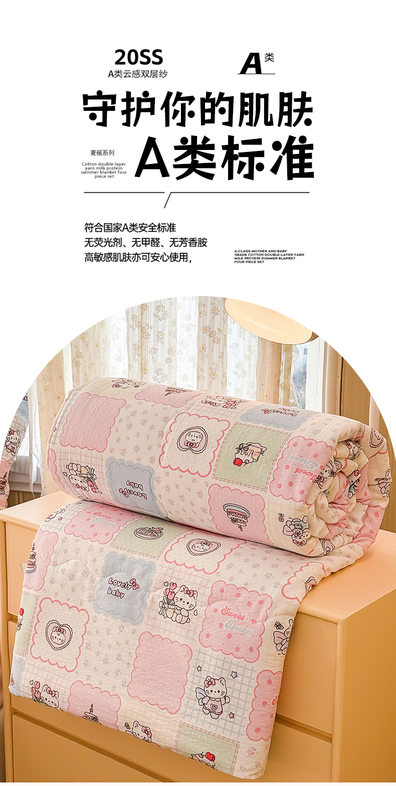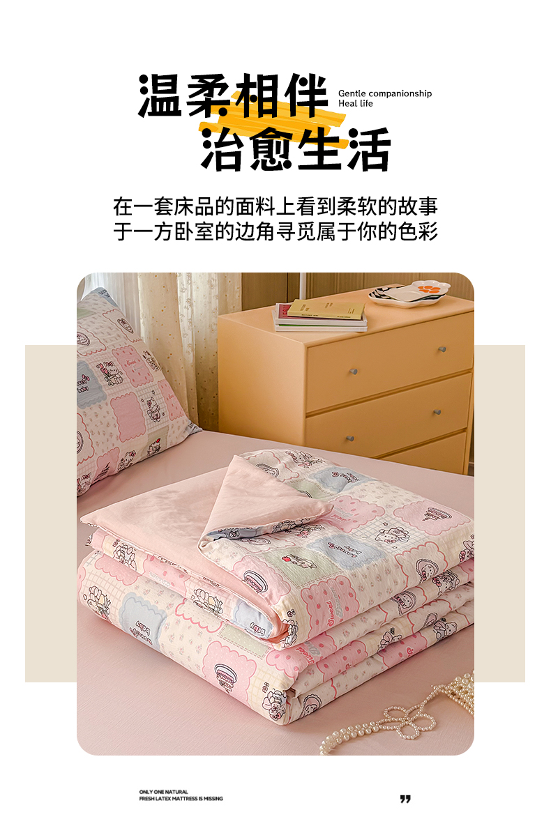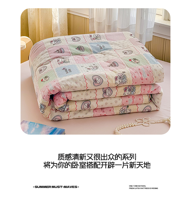 (总)艺菲阁家纺 2026新款云感双层纱夏被夏凉被空调被,芭比兔,蛋糕派,蓝莓奶糖,萌猫来袭,米波点,苹果小怪,葡萄多多,俏皮狗,裙小兔,苏槿,童年木马,像素小猫,星眠云野(粉),竹歆花语