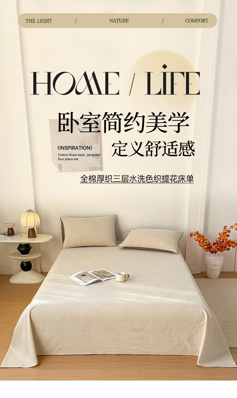 (总)灰鲸 2026新款全棉纯棉厚织三层水洗色织提花床单单床单床单单件,芳菲-杏仁奶霜,芳菲-可可奶咖,芳菲-摩卡,芳菲-素墨,罗格西亚-素墨,罗格西亚-杏仁奶霜,柔丝漫语-可可奶咖,柔丝漫语-摩卡,柔丝漫语-素墨,柔丝漫语-杏仁奶霜,维希-可可奶咖,维希-杏仁奶霜,云汐-可可奶咖,云汐-素墨,云汐-杏仁奶霜