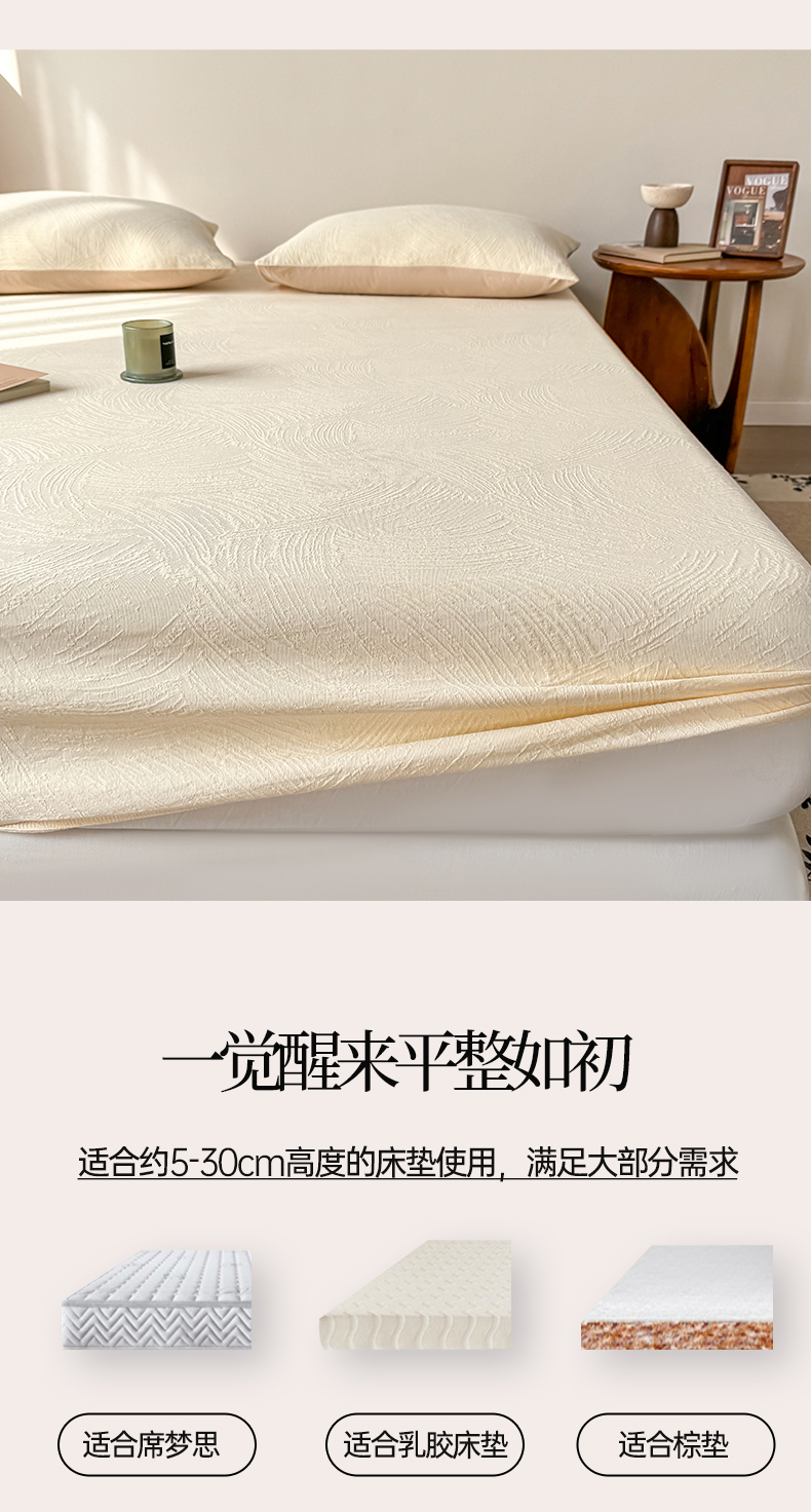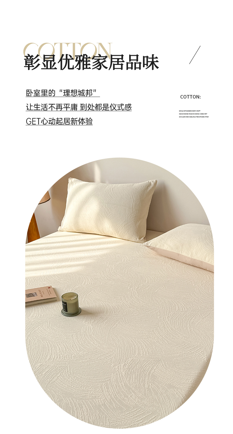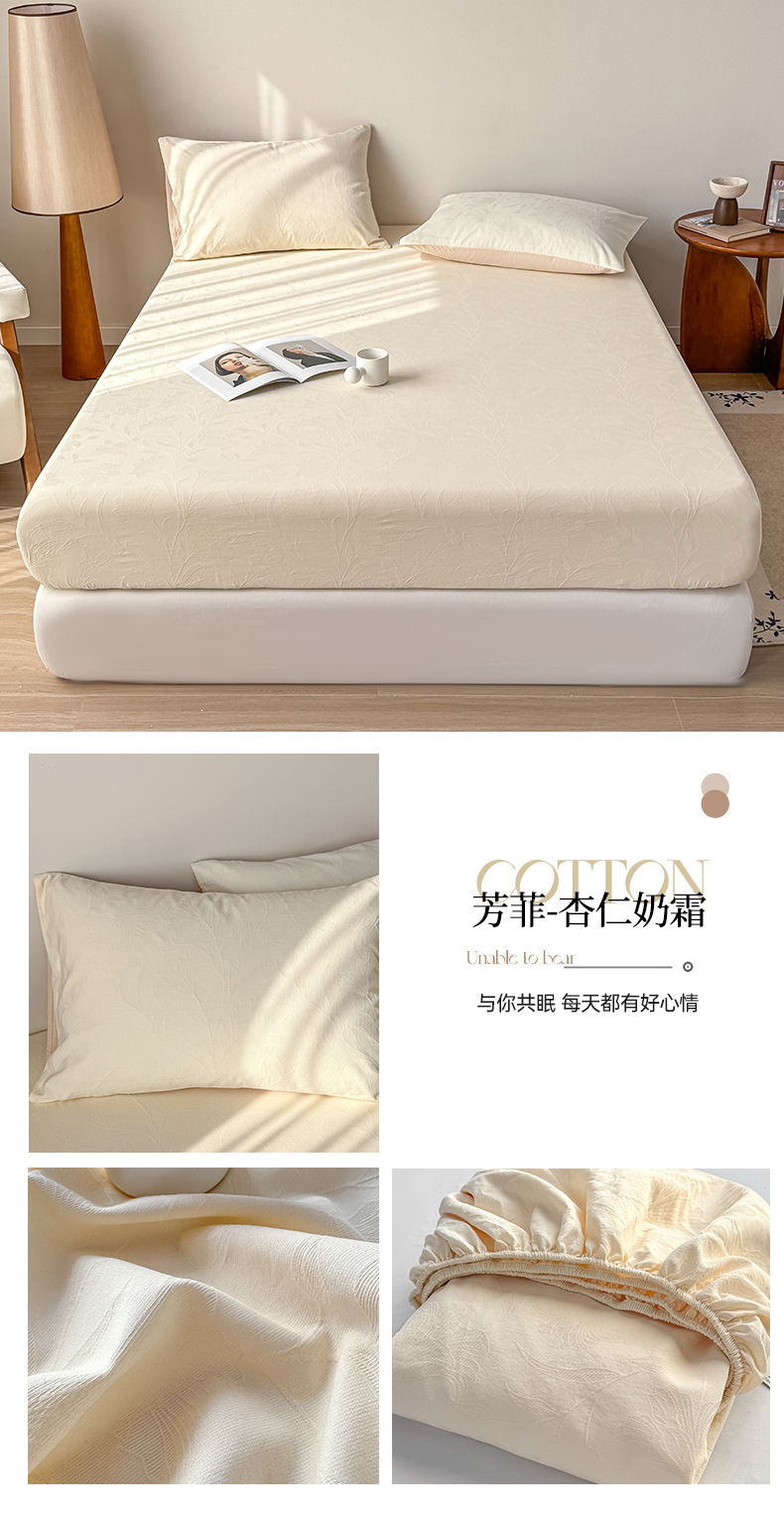 • 91家纺网 家纺一手货源 找家纺 灰鲸 2026新款全棉纯棉厚织三层水洗色织提花床笠单品床笠床笠单件 柔丝漫语-杏仁奶霜