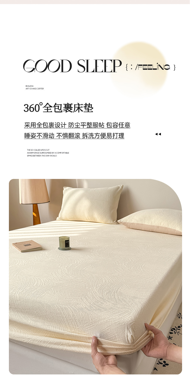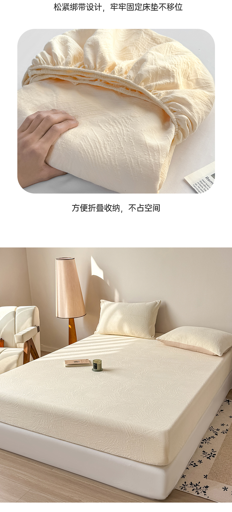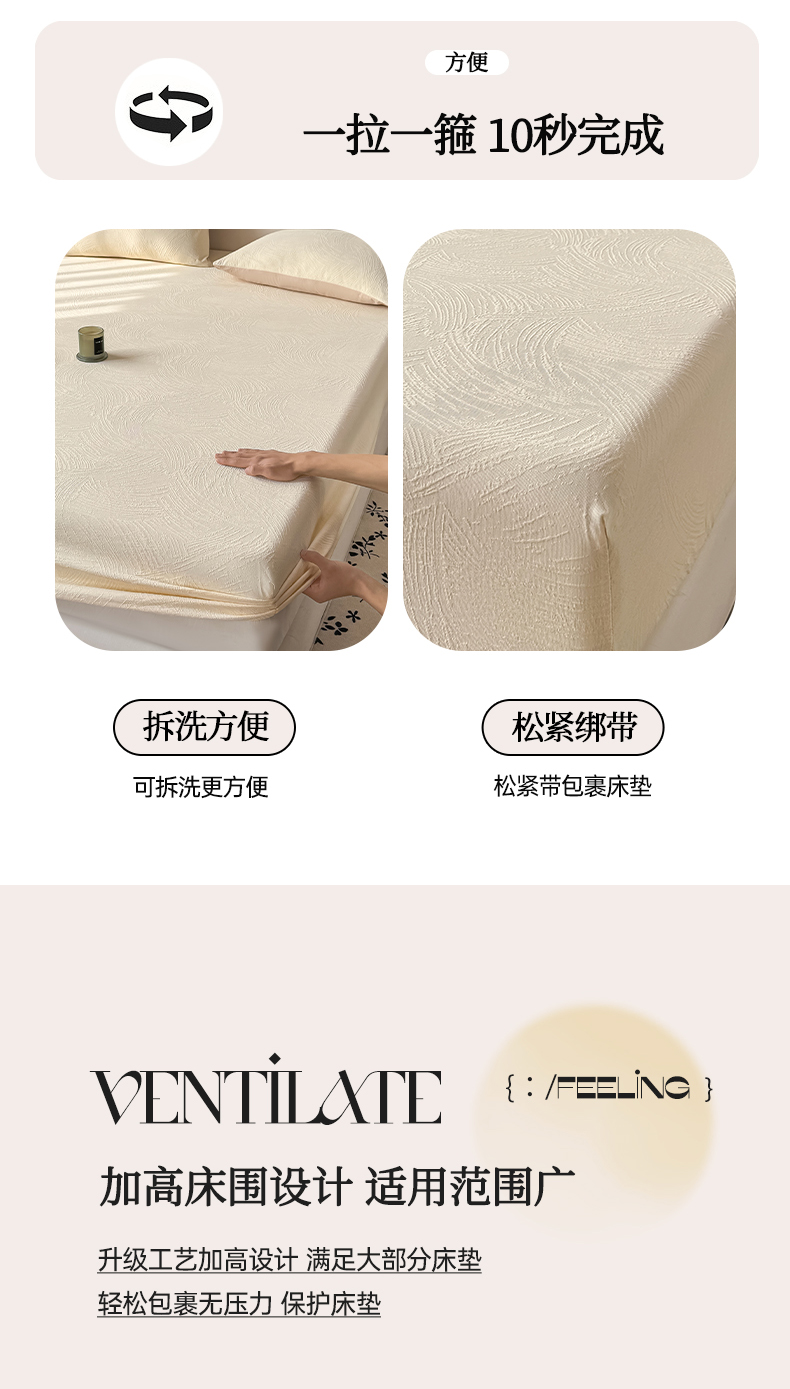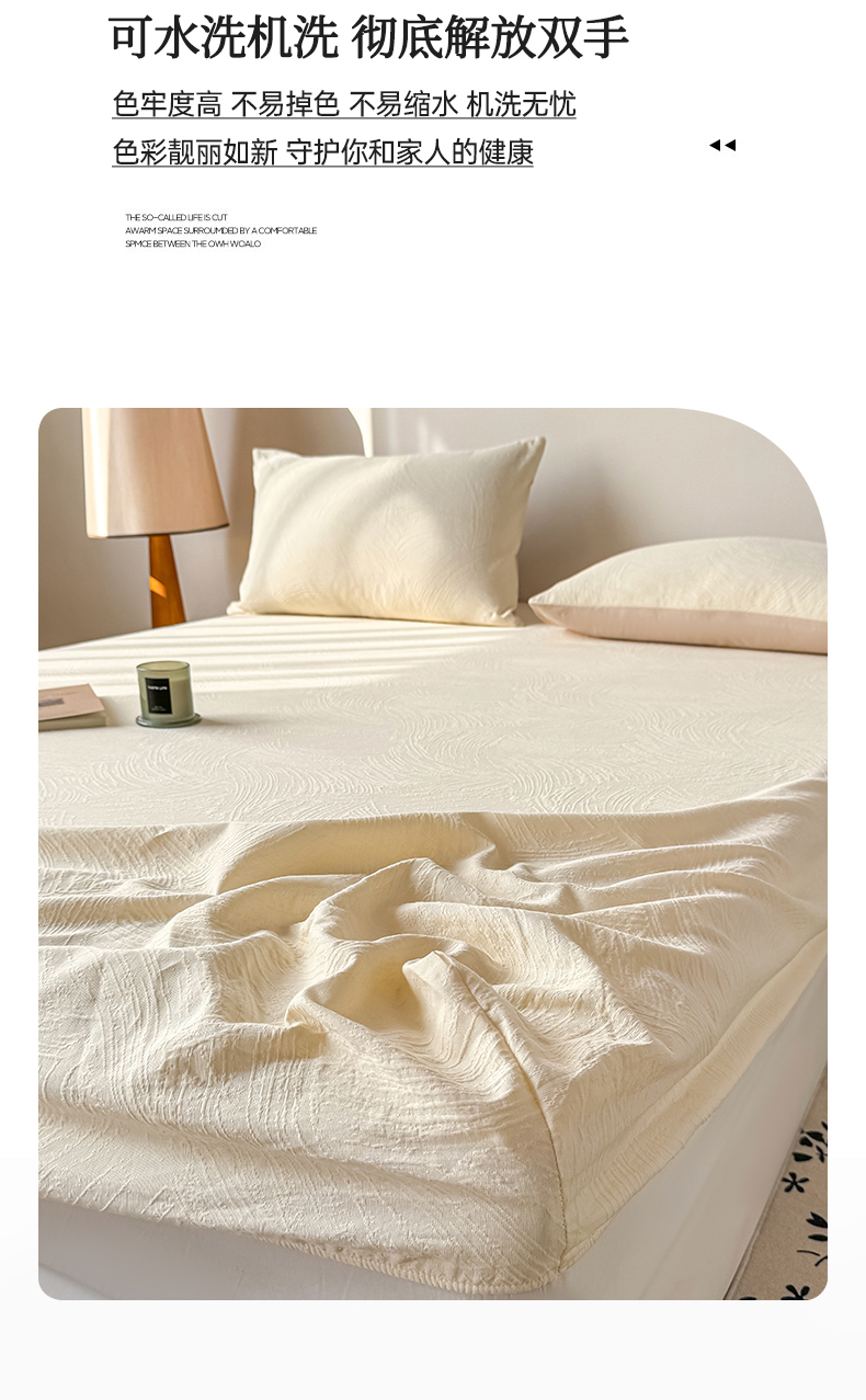 • 91家纺网 家纺一手货源 找家纺 灰鲸 2026新款全棉纯棉厚织三层水洗色织提花床笠单品床笠床笠单件 柔丝漫语-杏仁奶霜