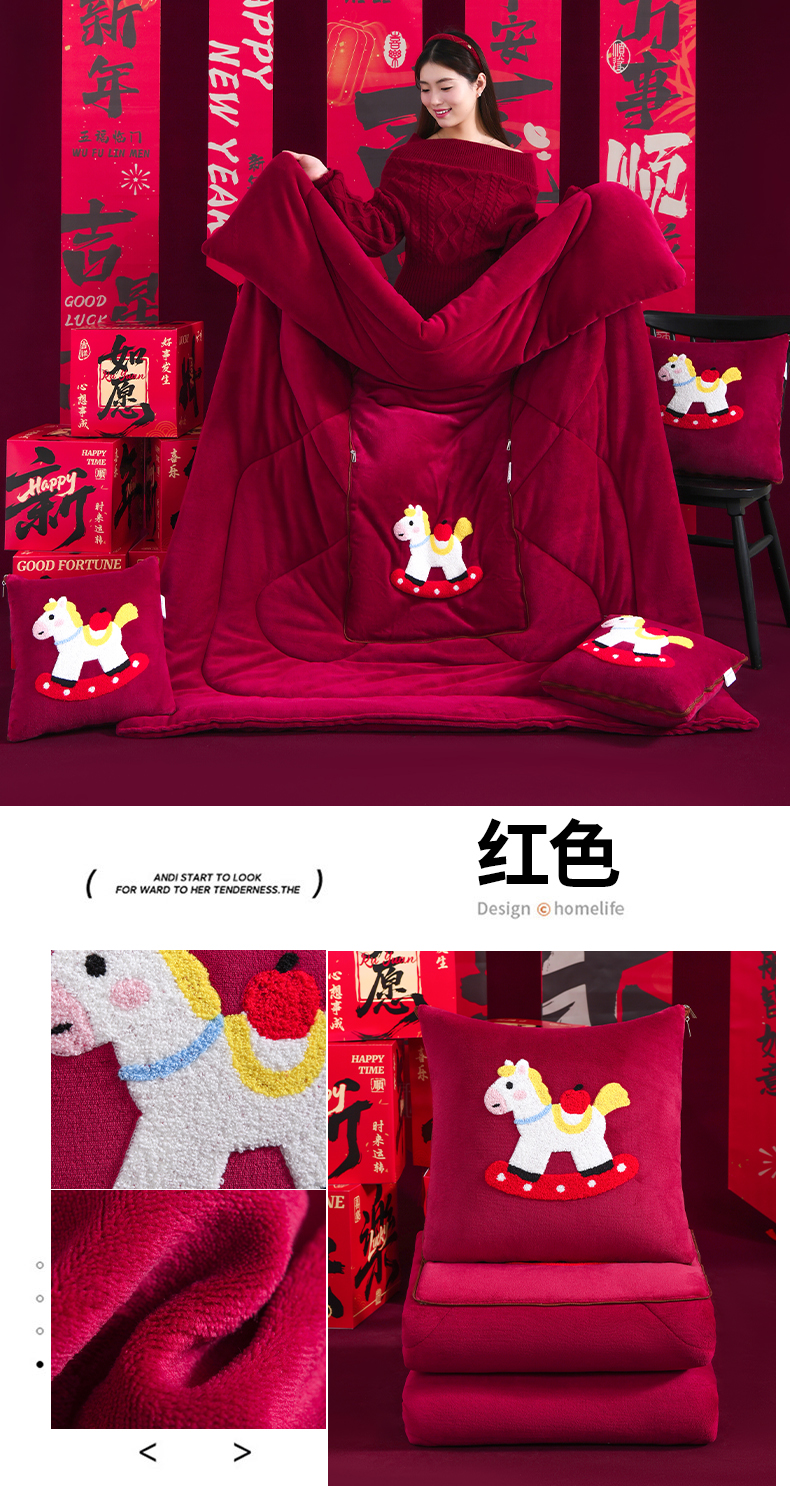 (总)宝马家纺(原梦童画) 2026新款马年限定抱枕被-萌马系列,黑色,红色,咖色,组合图仅展示