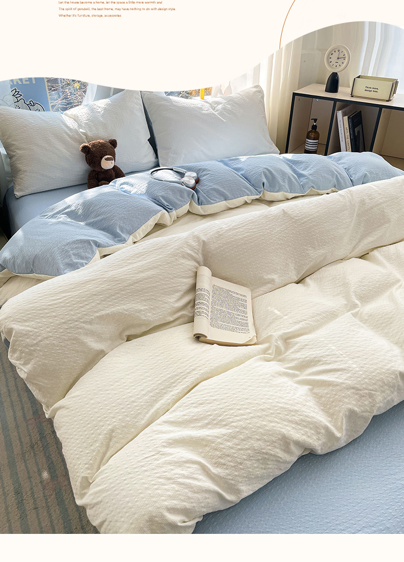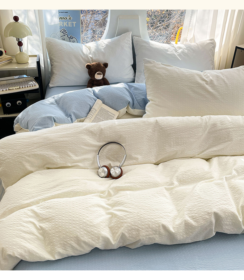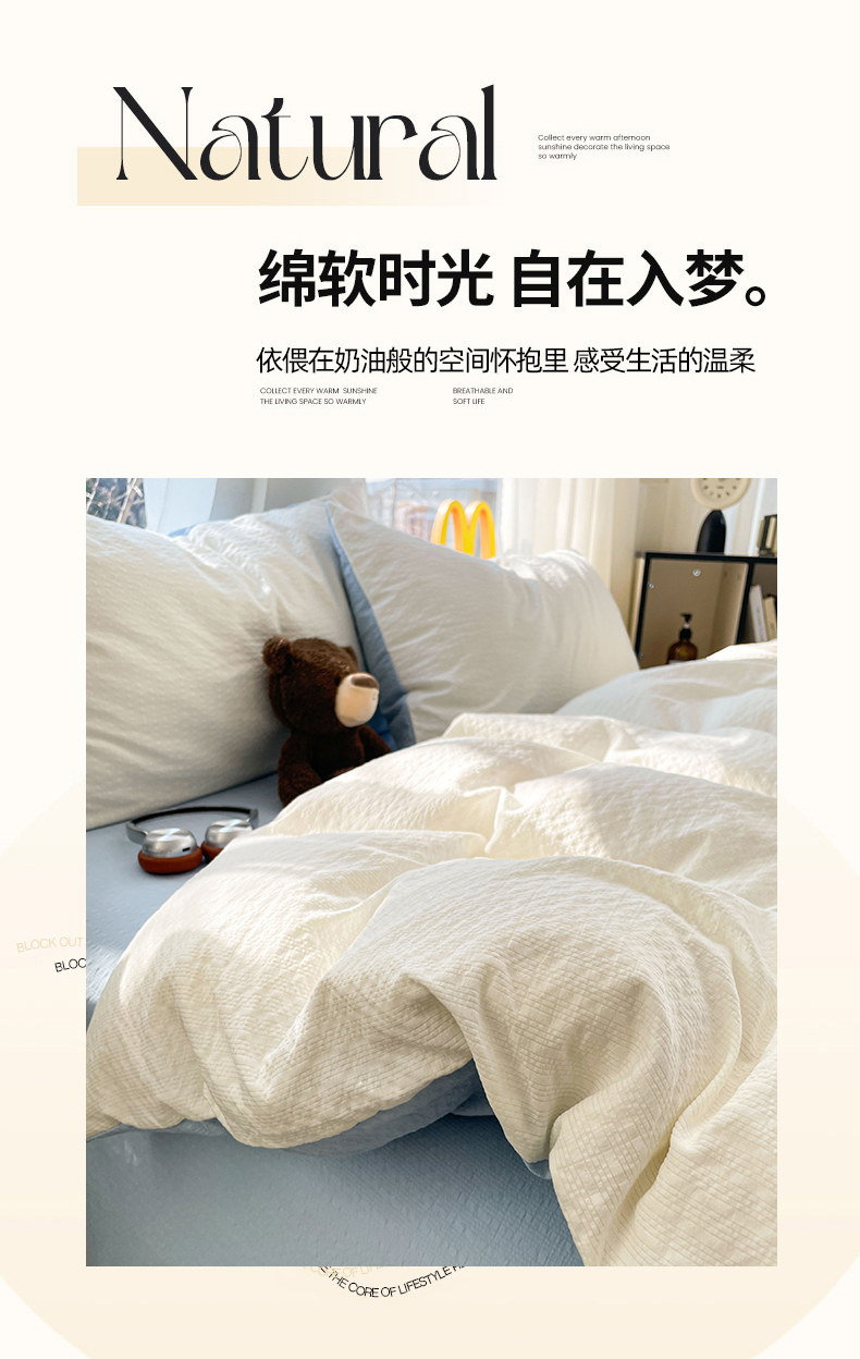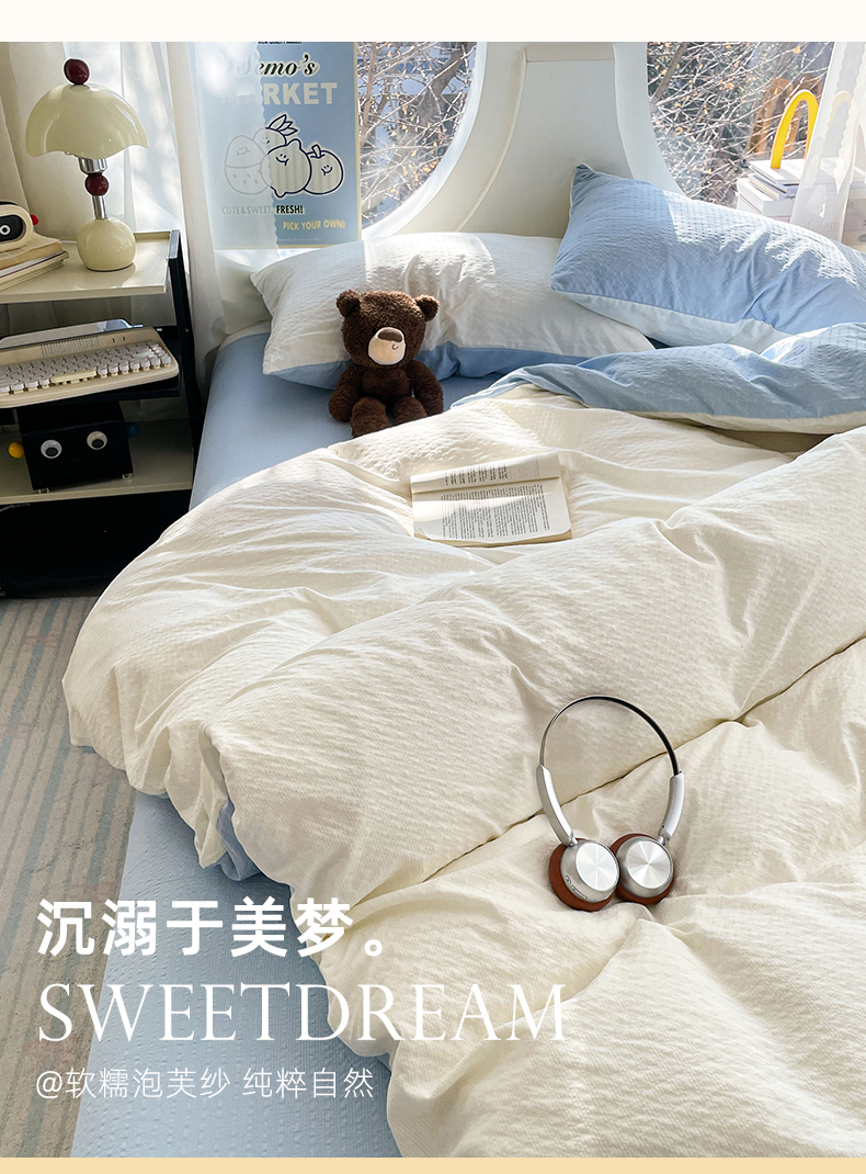 当前位置: 91家纺网 > 商品网购 > 床品套件 > 四件套 > 双层纱四件套 > 优承佳生活馆 2026新款软糯双拼泡芙纱四件套 奶油白+天空蓝