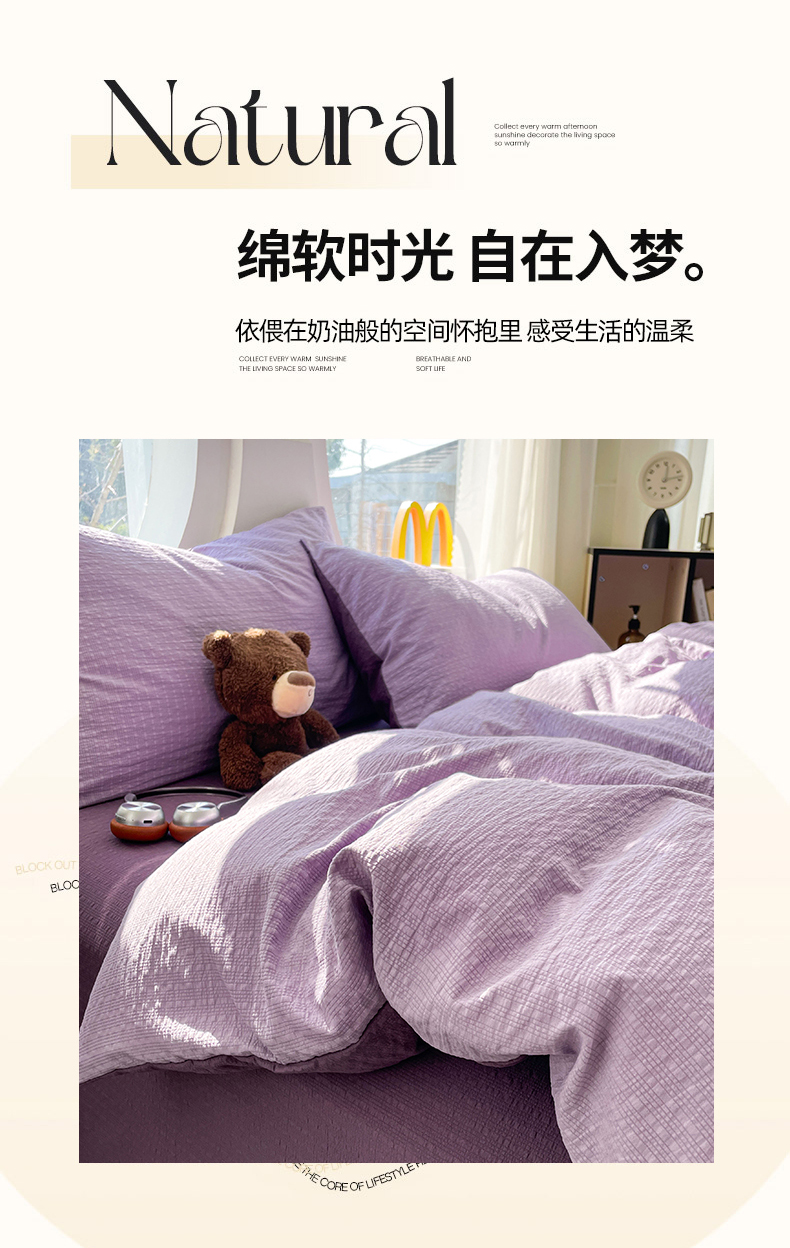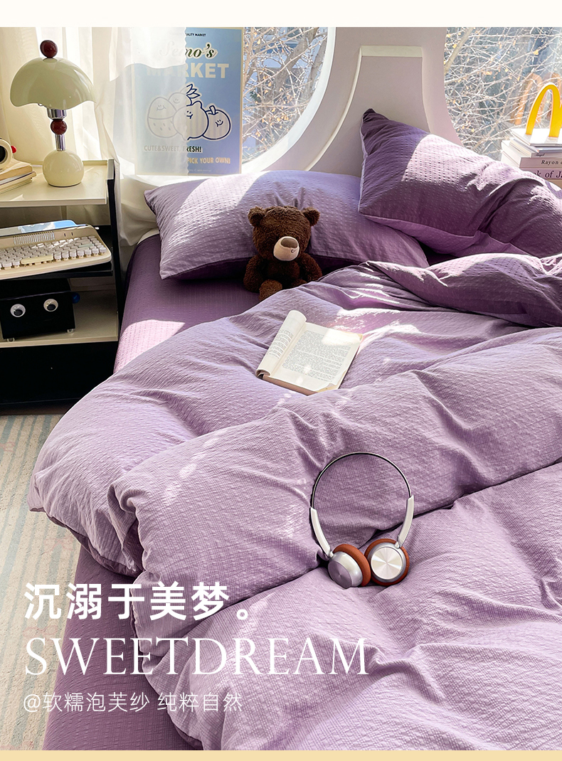 当前位置: 91家纺网 > 商品网购 > 床品套件 > 四件套 > 双层纱四件套 > 优承佳生活馆 2026新款软糯双拼泡芙纱四件套 芋泥紫+烟雾紫