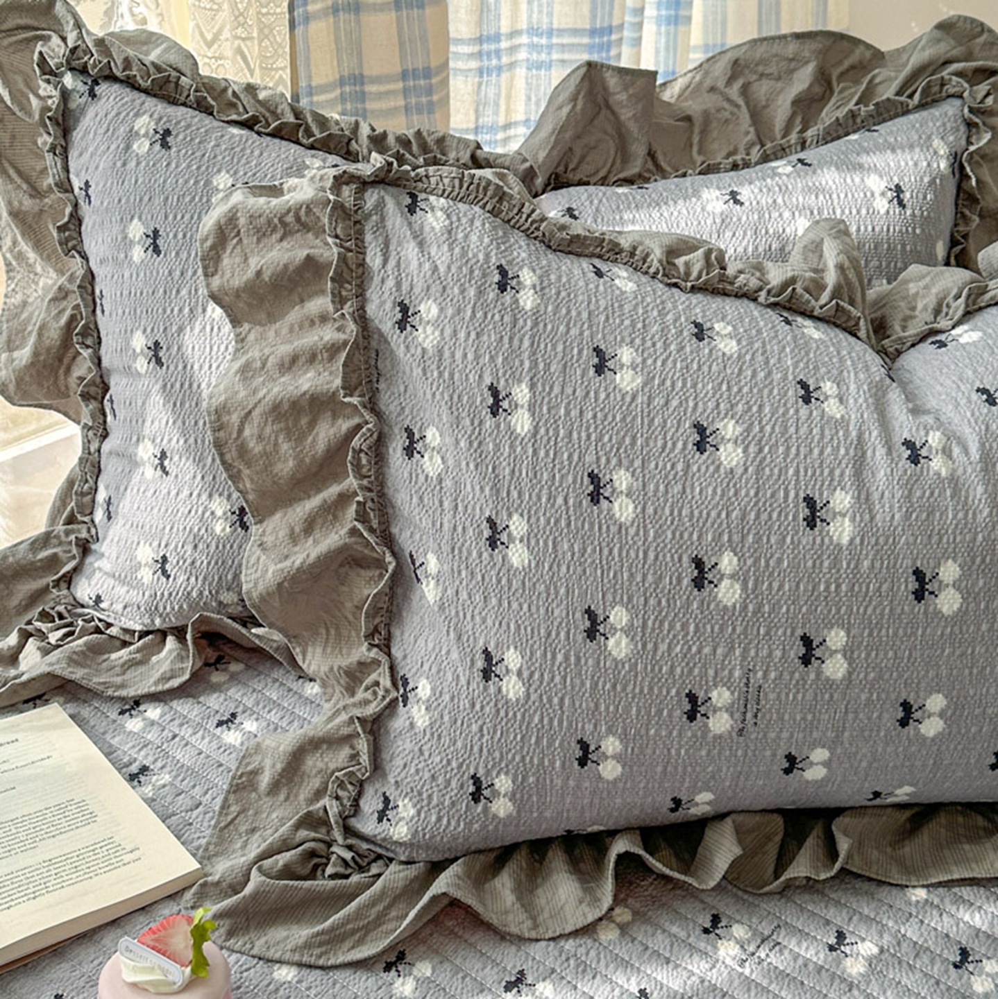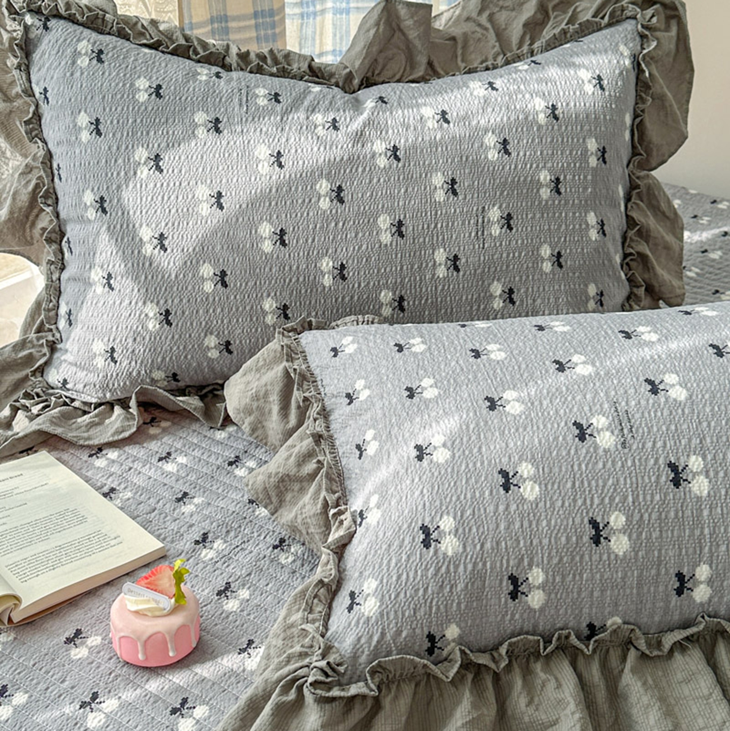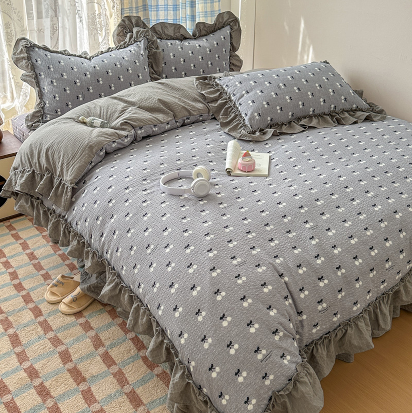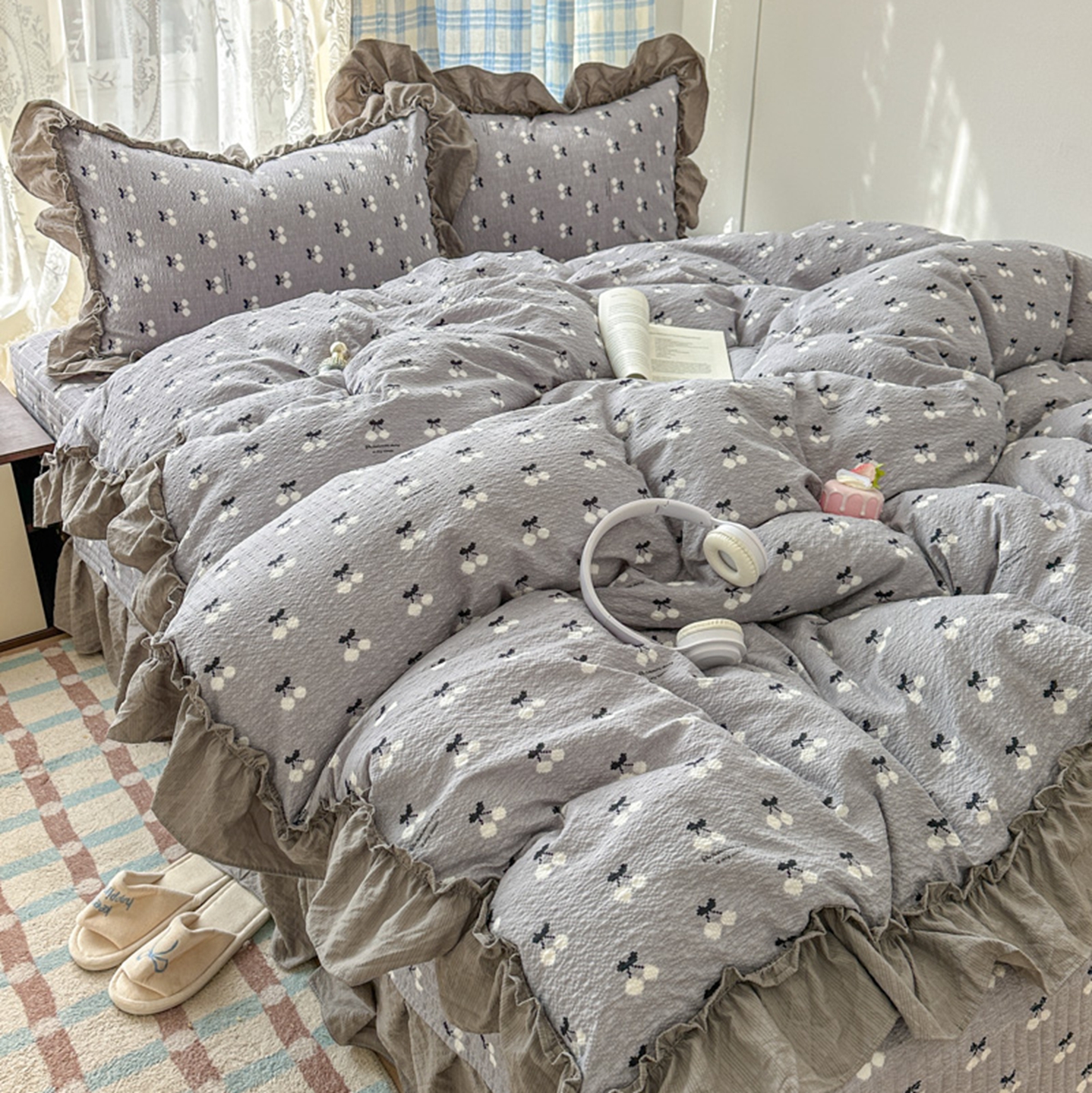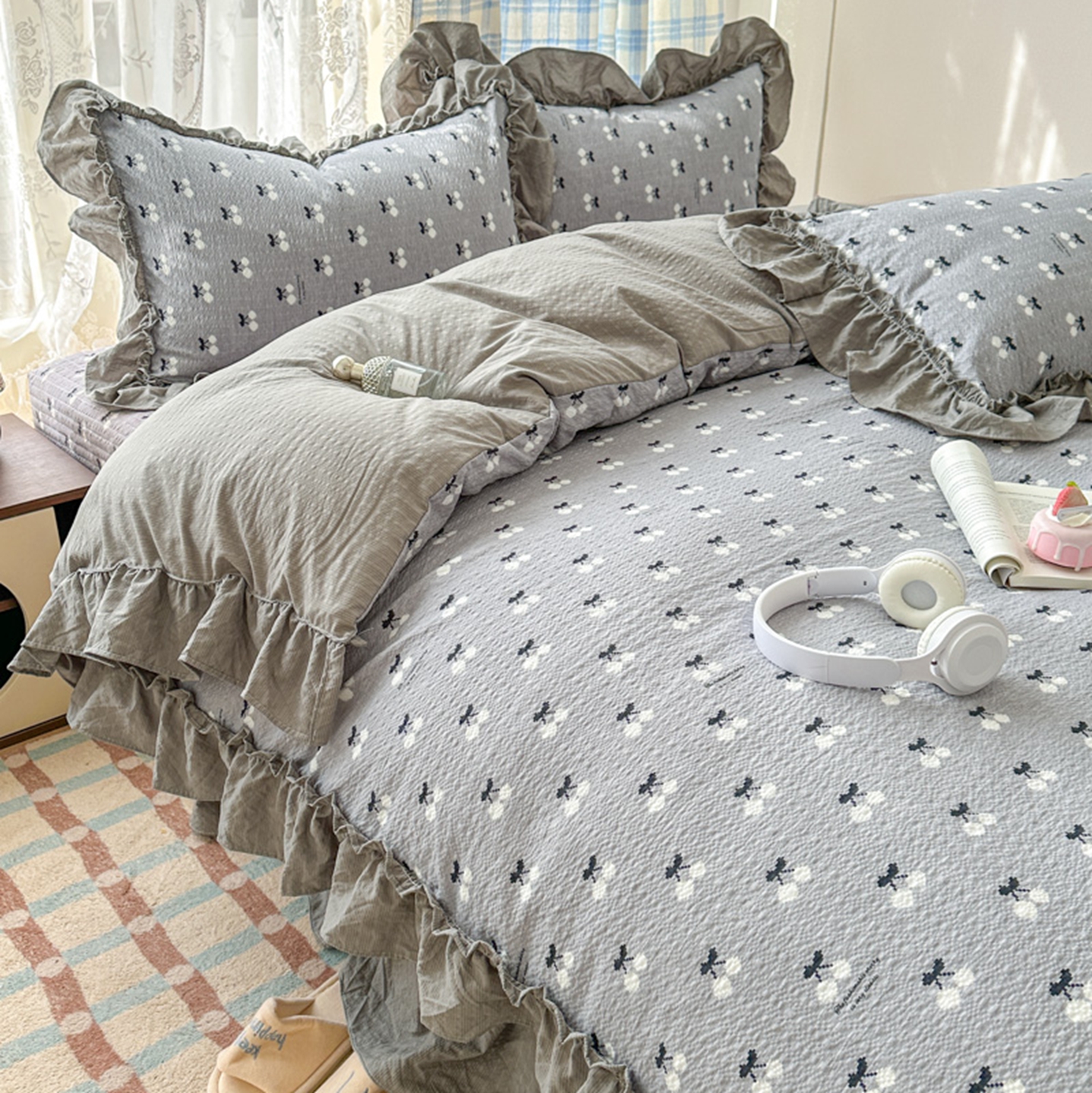 欧尚 2026新款花边床盖四件套 灰樱桃