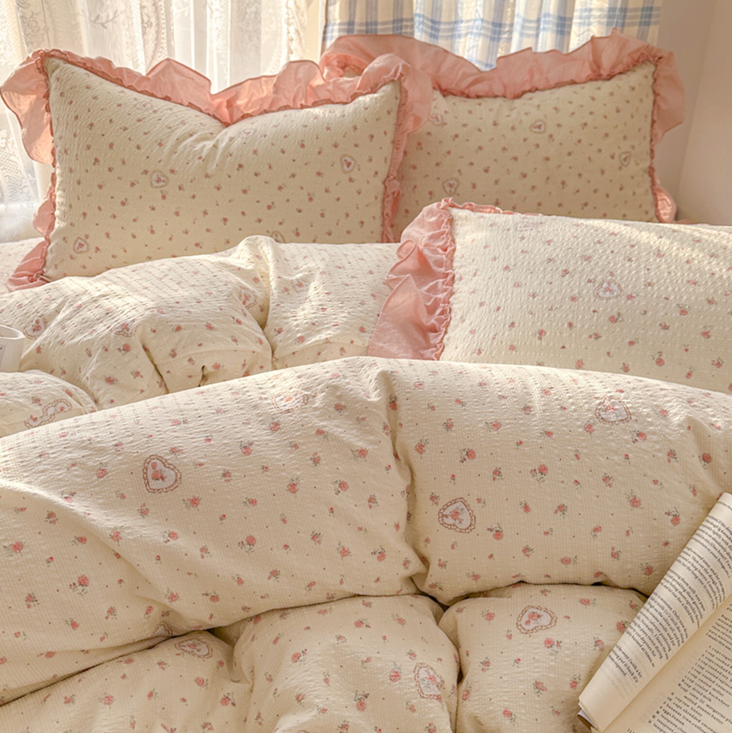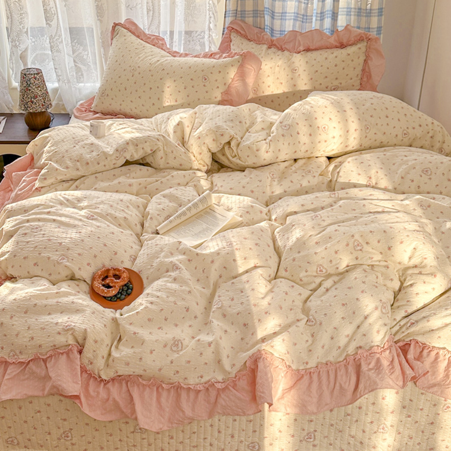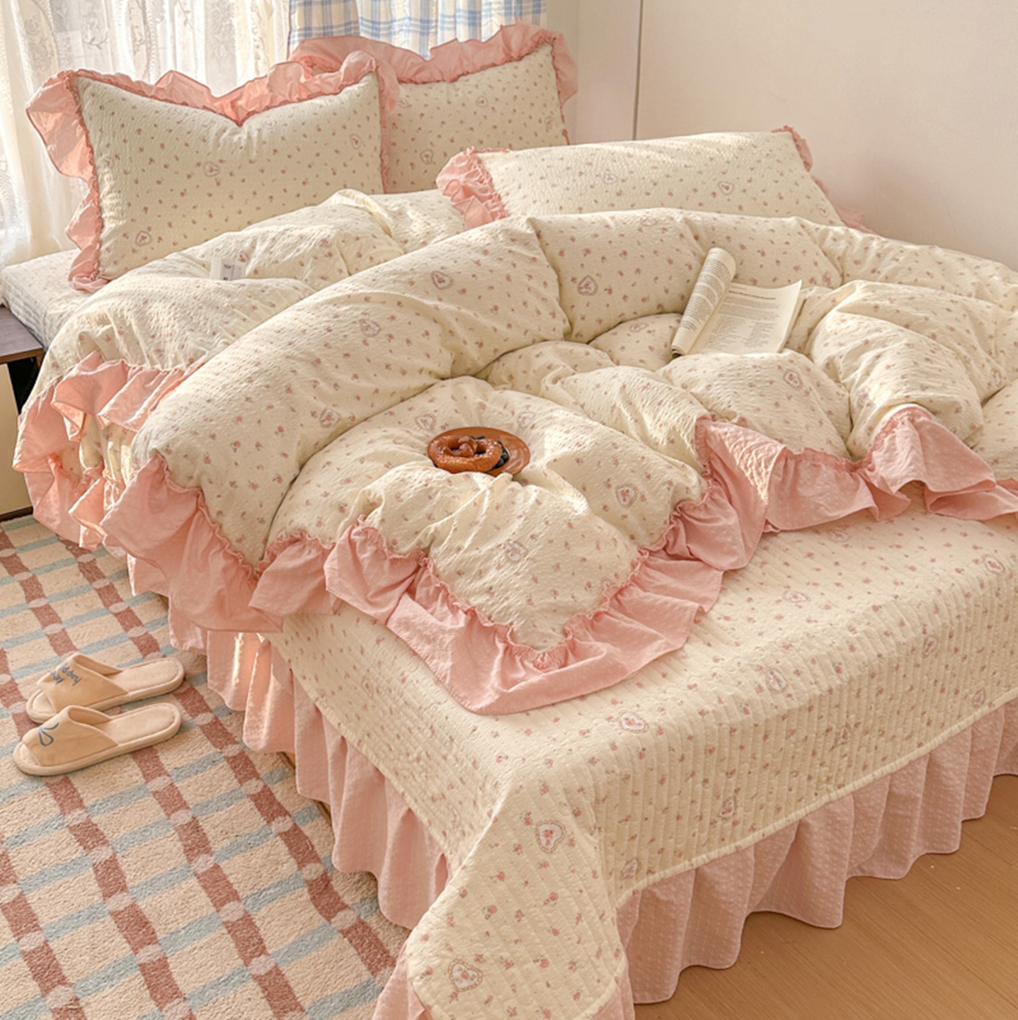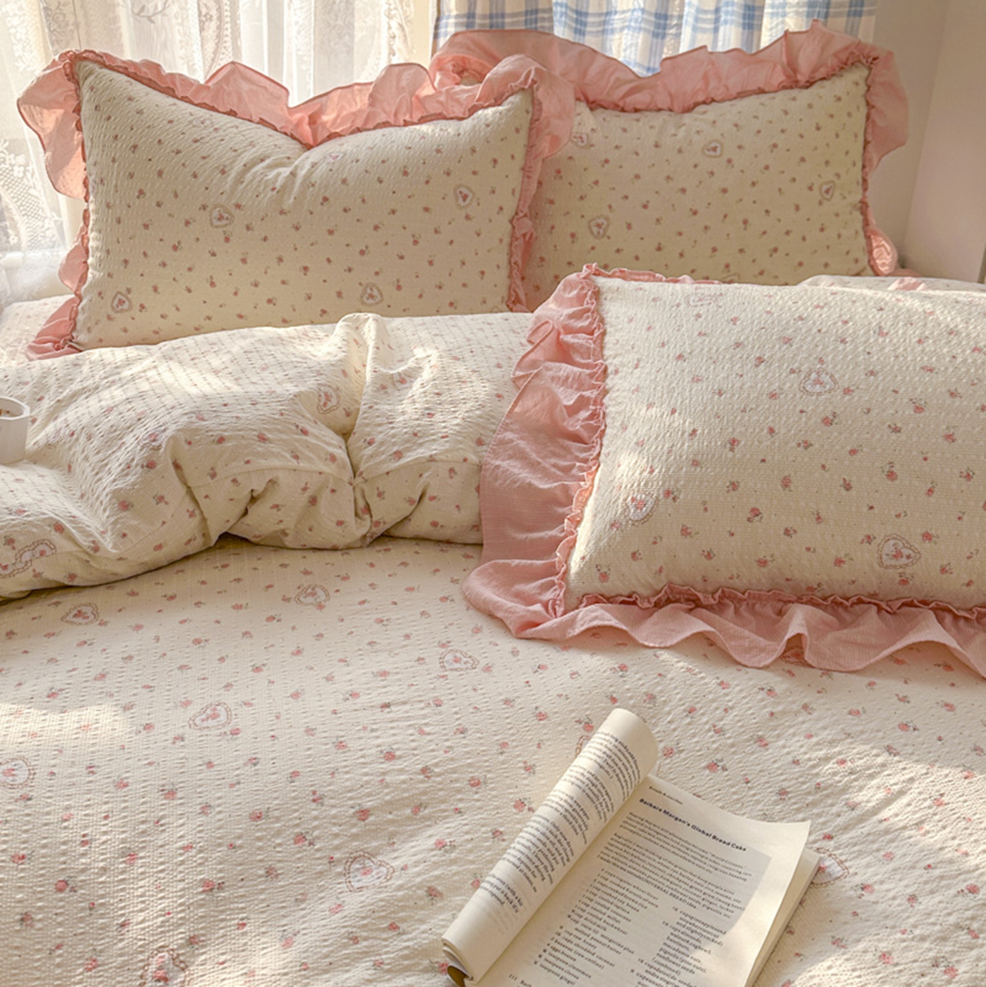 (总)欧尚 2026新款花边床盖四件套,春和,花束,花野,灰樱桃,咖爱心,咖豹纹,咖啡小猫,梨花落,绿爱心,梦境,木马,奶油波点,暖橘枝,暖心,人间草木,田园兔,小女孩,星愿,摇摇马,紫爱心,紫豹纹,紫苏