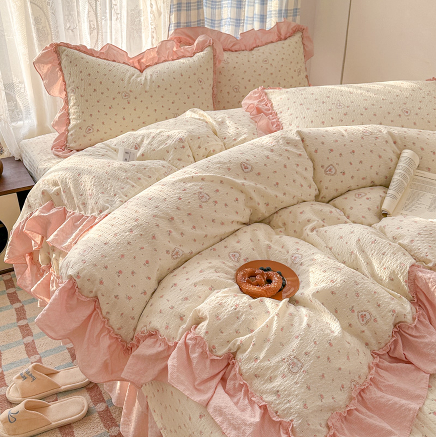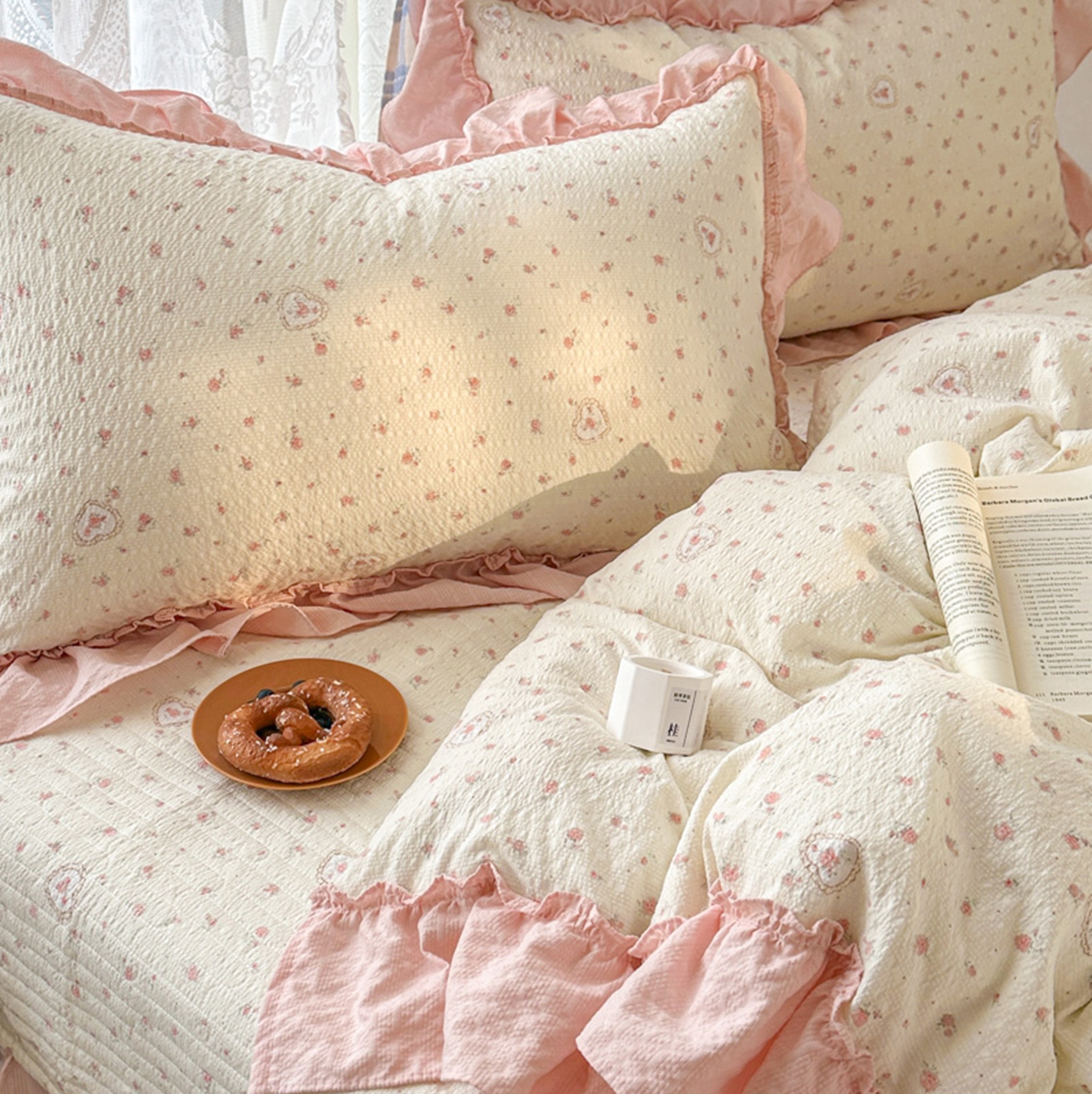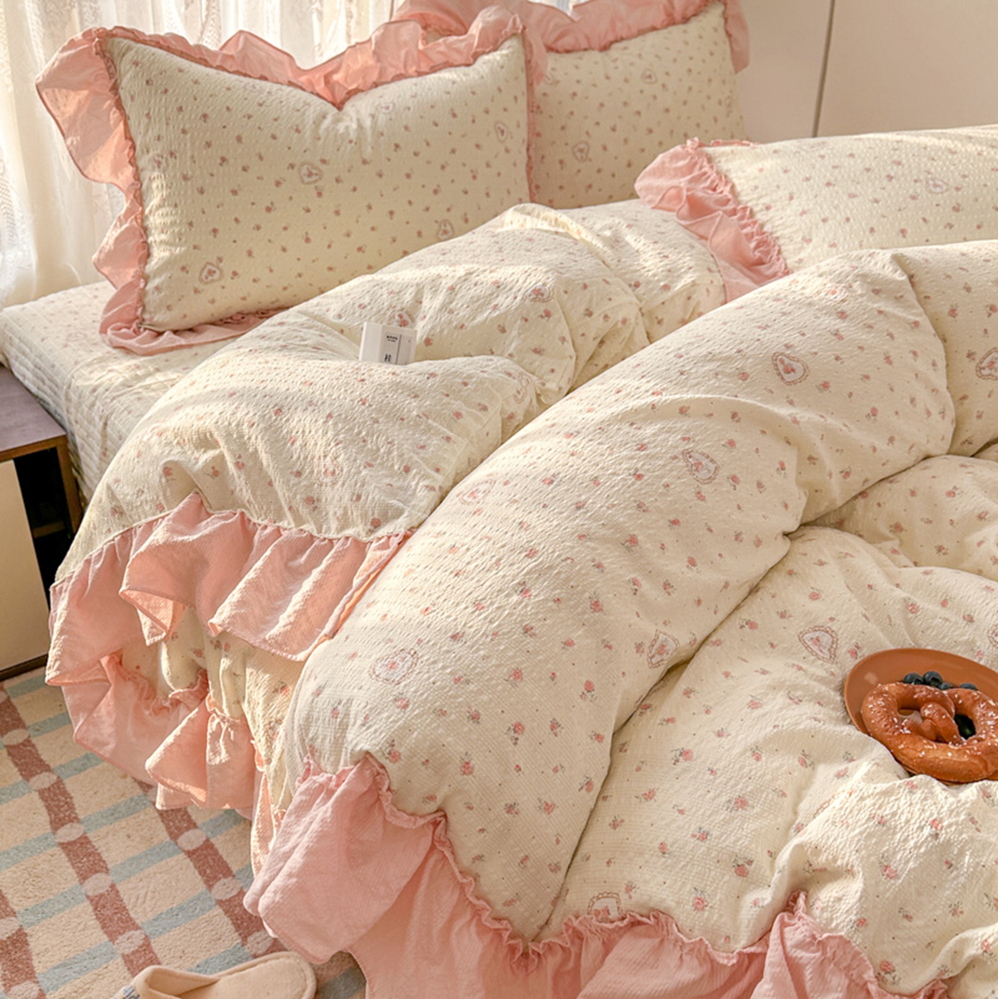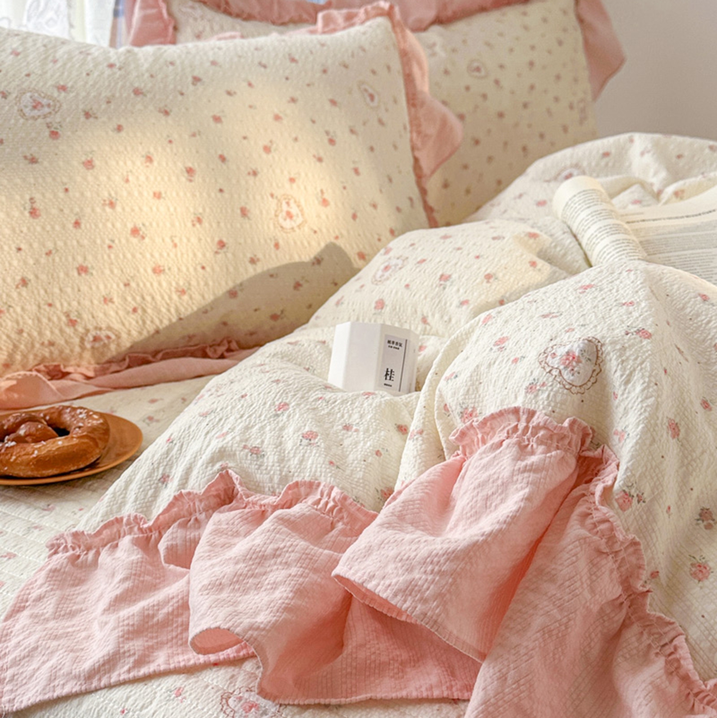 (总)欧尚 2026新款花边床盖四件套,春和,花束,花野,灰樱桃,咖爱心,咖豹纹,咖啡小猫,梨花落,绿爱心,梦境,木马,奶油波点,暖橘枝,暖心,人间草木,田园兔,小女孩,星愿,摇摇马,紫爱心,紫豹纹,紫苏