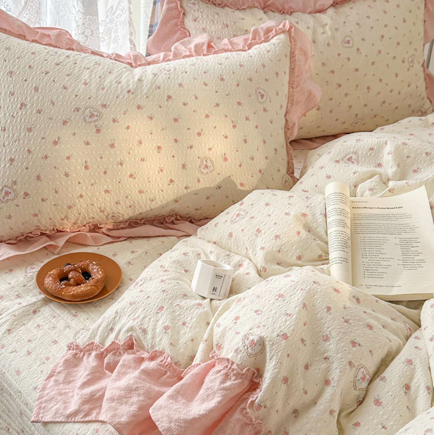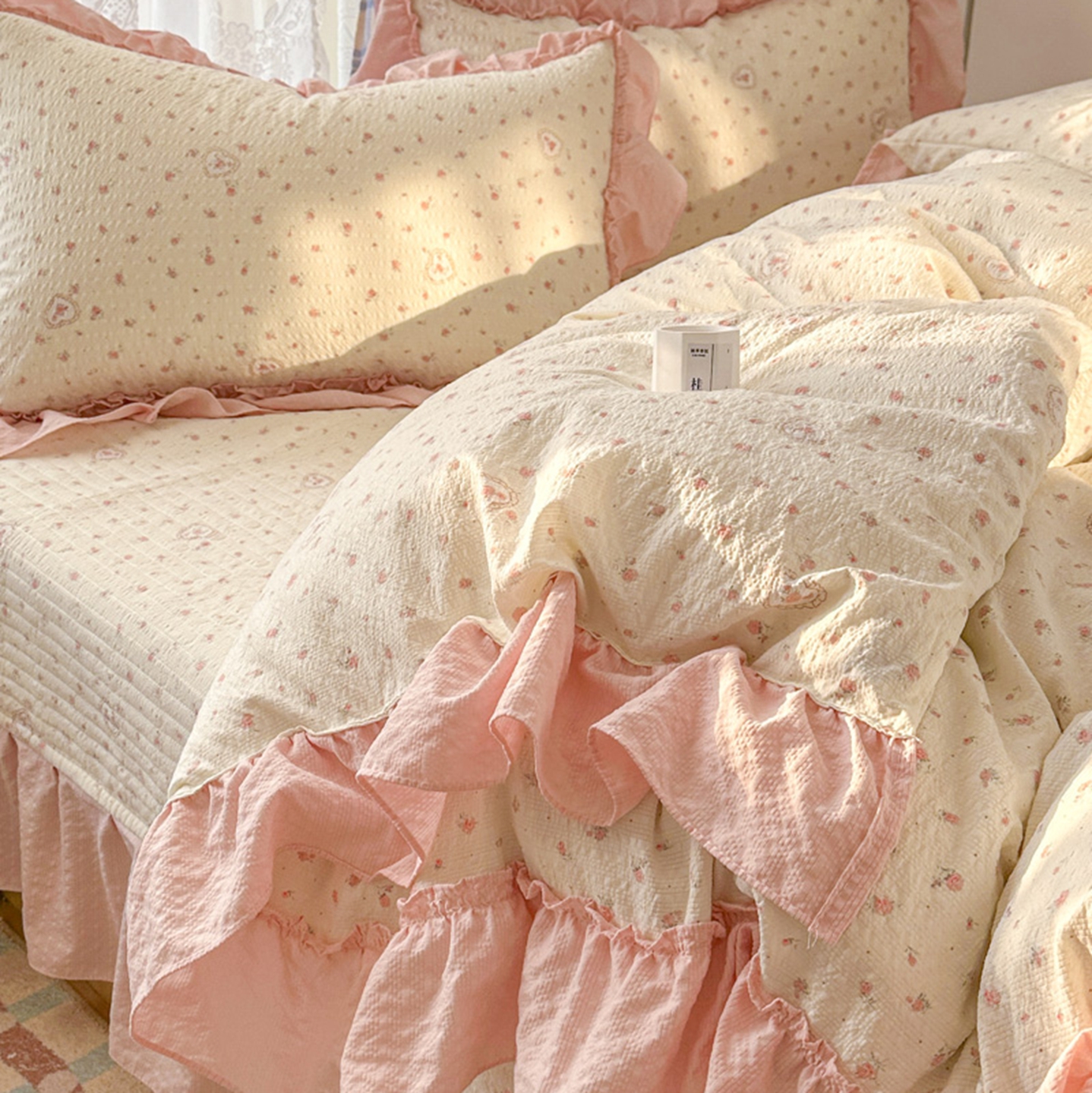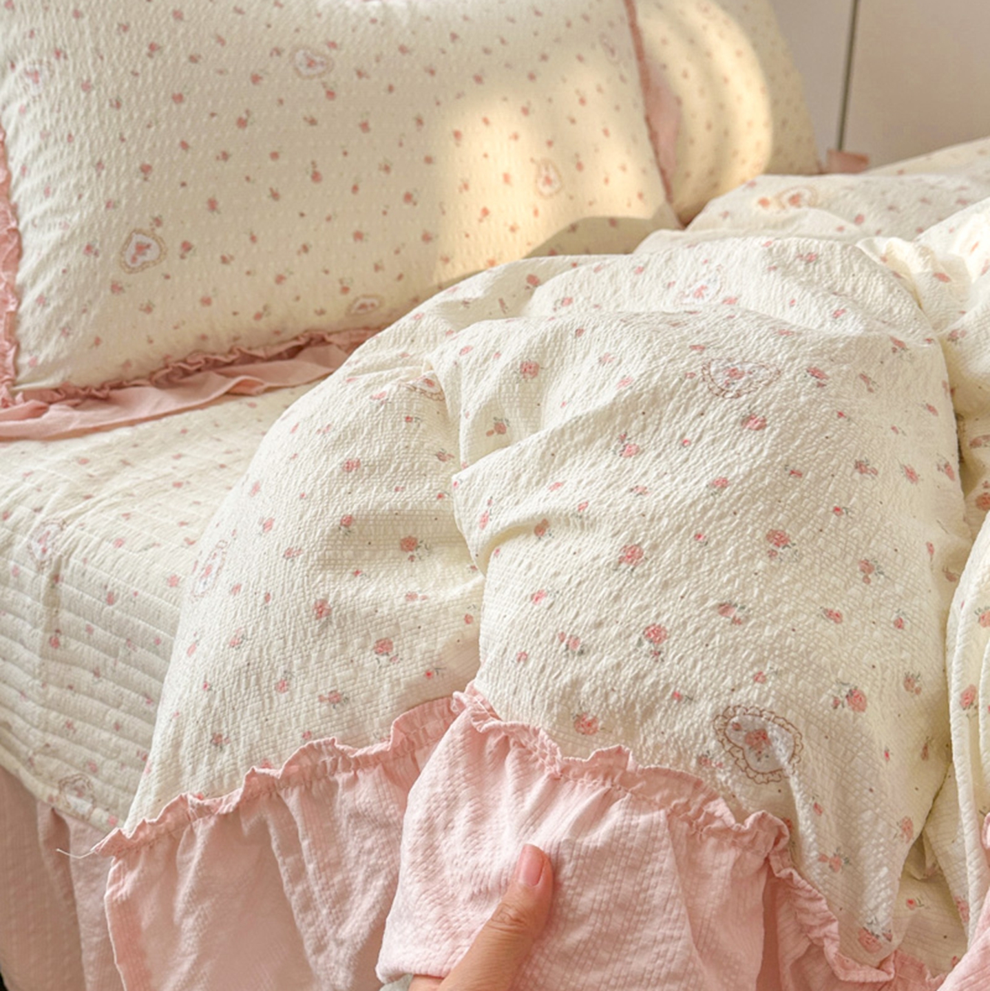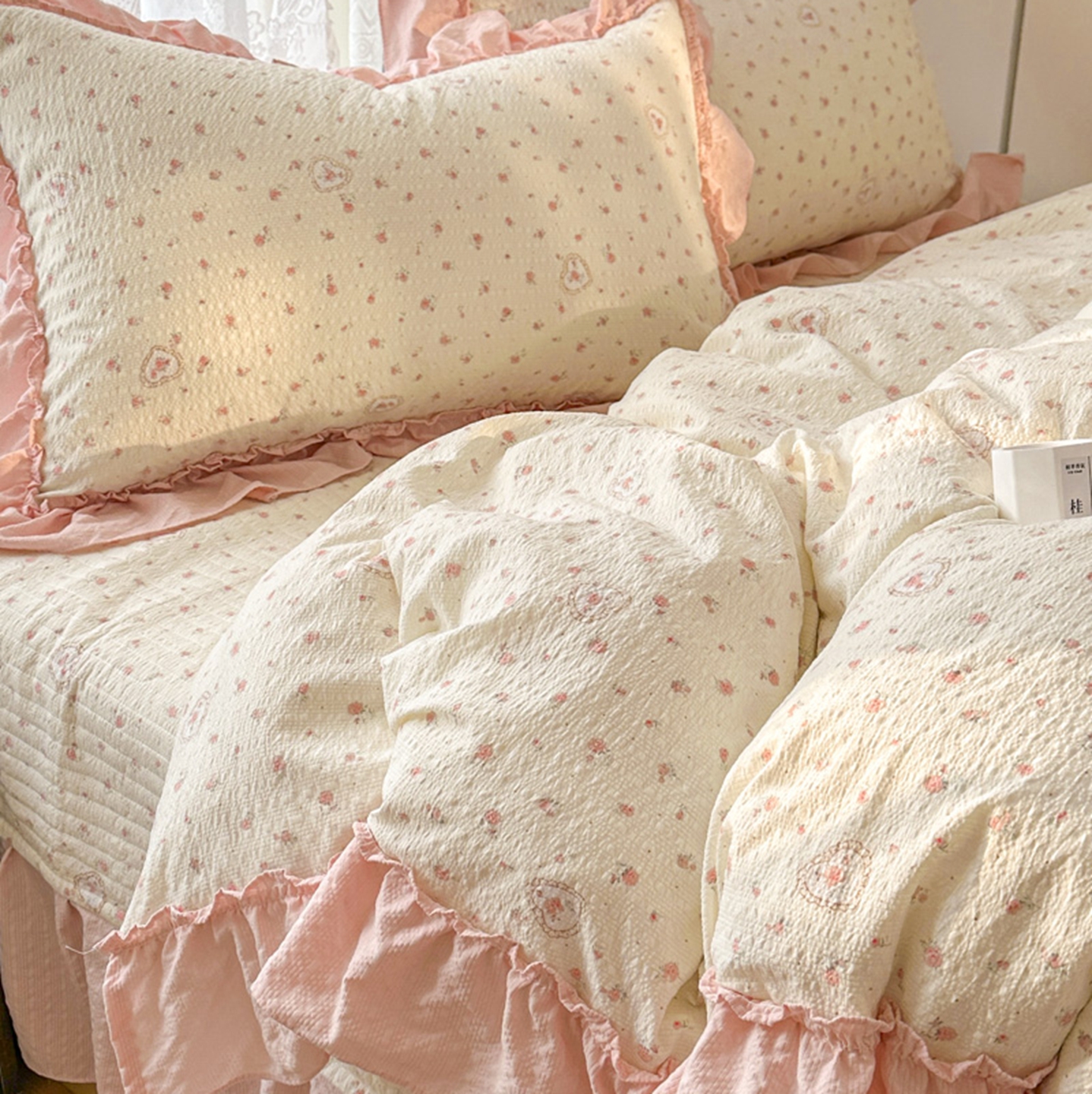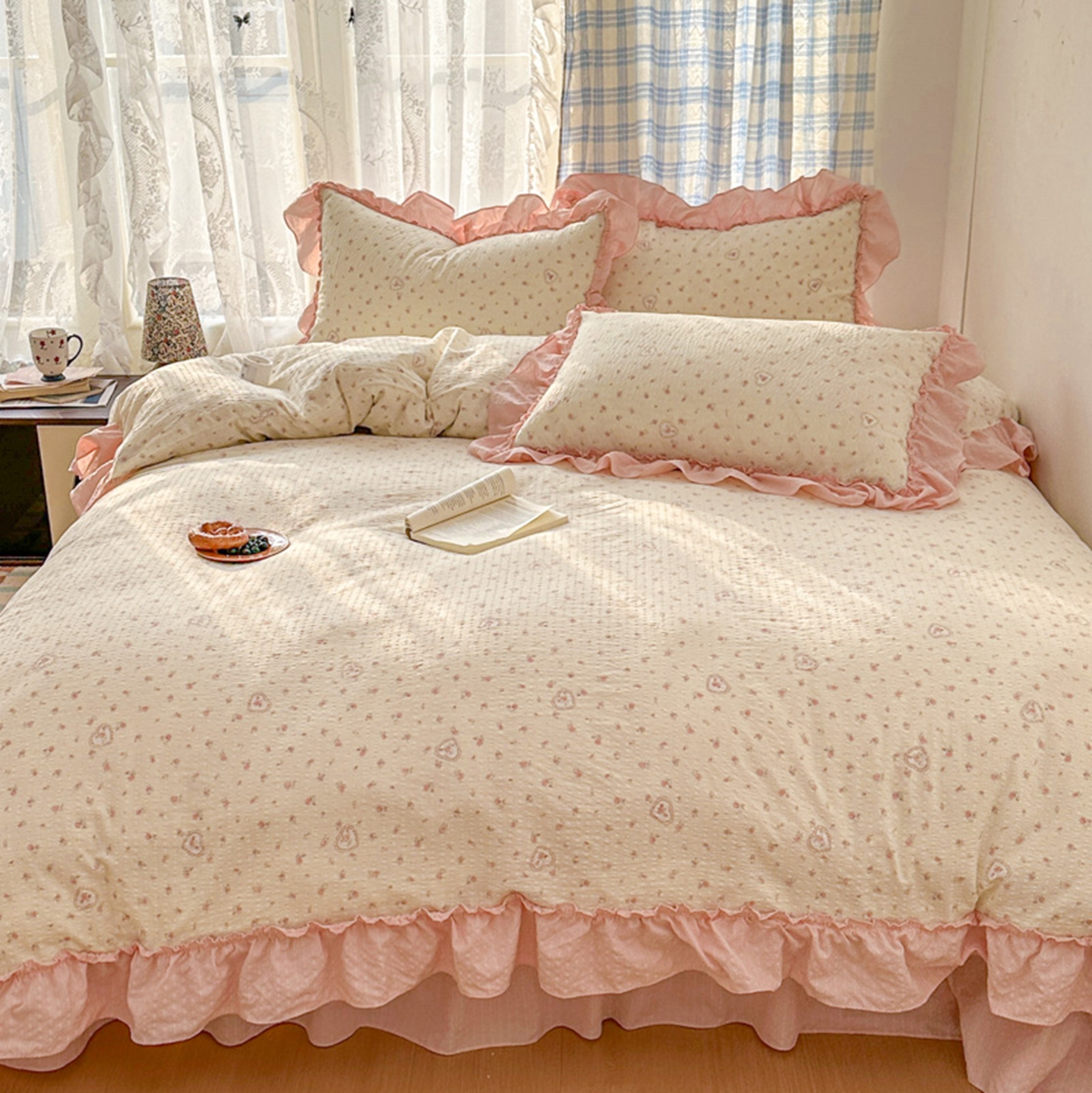 (总)欧尚 2026新款花边床盖四件套,春和,花束,花野,灰樱桃,咖爱心,咖豹纹,咖啡小猫,梨花落,绿爱心,梦境,木马,奶油波点,暖橘枝,暖心,人间草木,田园兔,小女孩,星愿,摇摇马,紫爱心,紫豹纹,紫苏