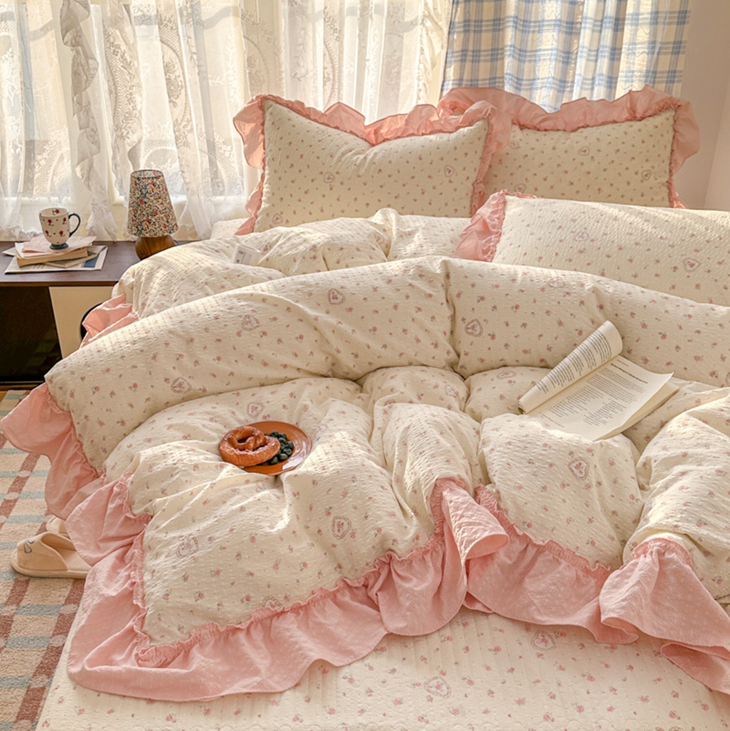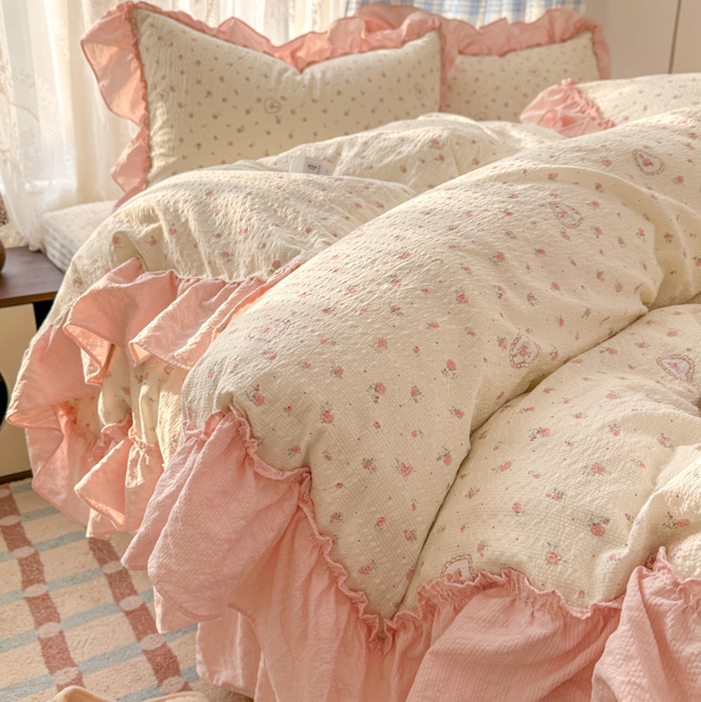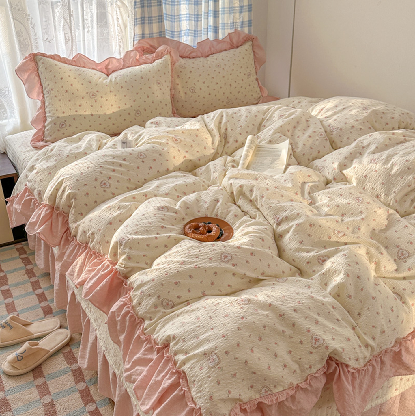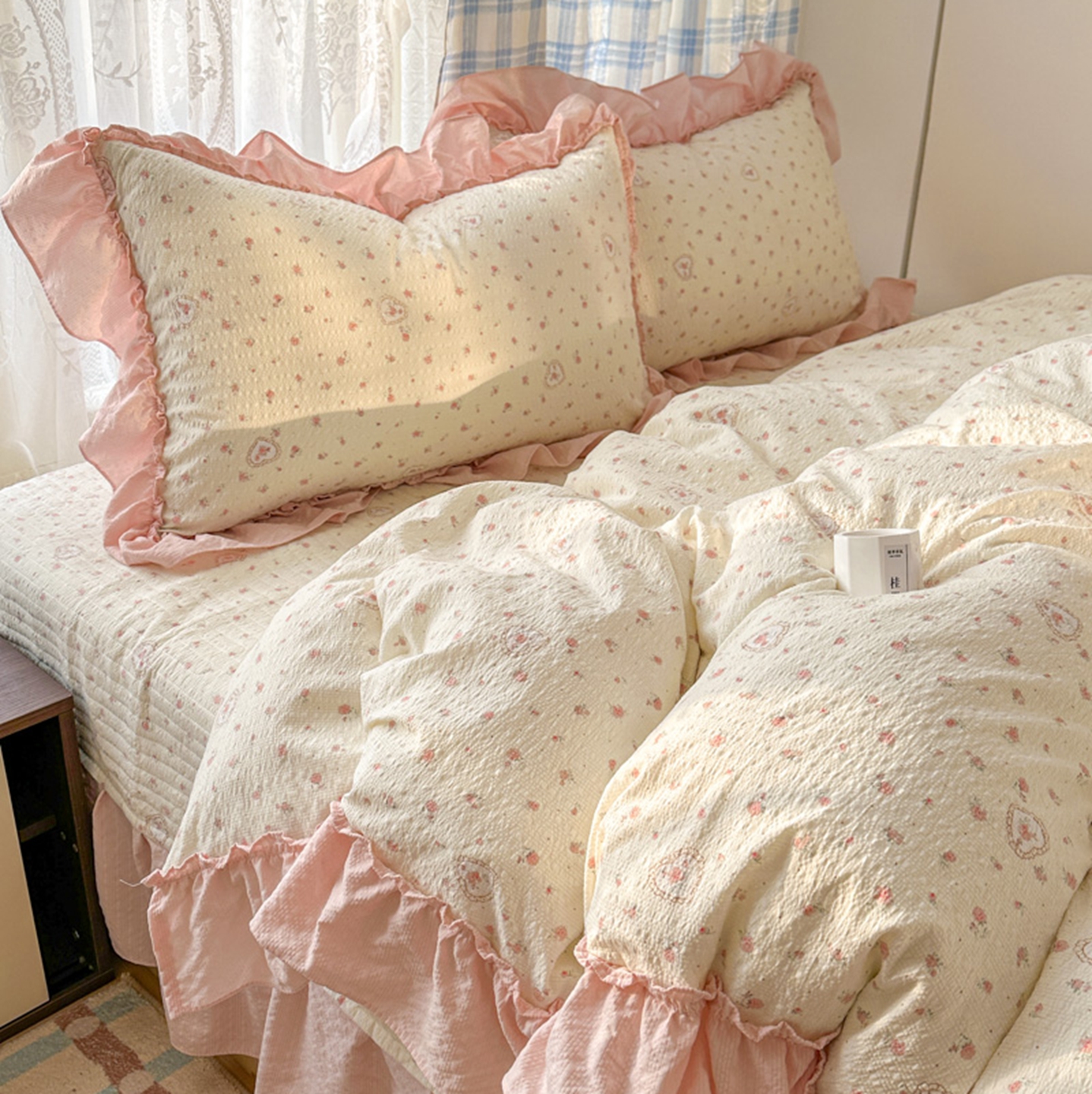 (总)欧尚 2026新款花边床盖四件套,春和,花束,花野,灰樱桃,咖爱心,咖豹纹,咖啡小猫,梨花落,绿爱心,梦境,木马,奶油波点,暖橘枝,暖心,人间草木,田园兔,小女孩,星愿,摇摇马,紫爱心,紫豹纹,紫苏