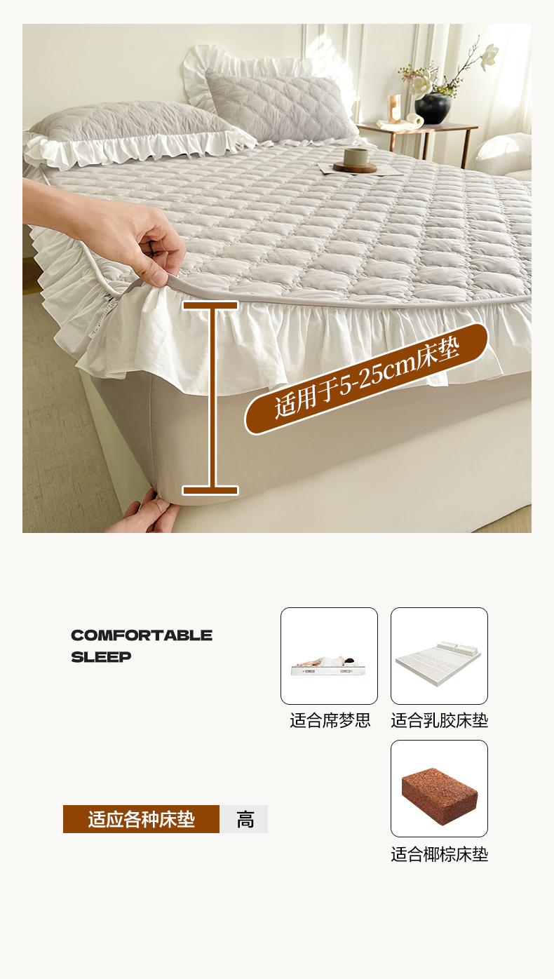 (总)佳笠家居 2025新款全棉纯棉夹棉床笠四季通用席梦思保护套床罩-初见系列,本白,薄荷绿,冰蓝,豆沙粉,高级灰,卡其色