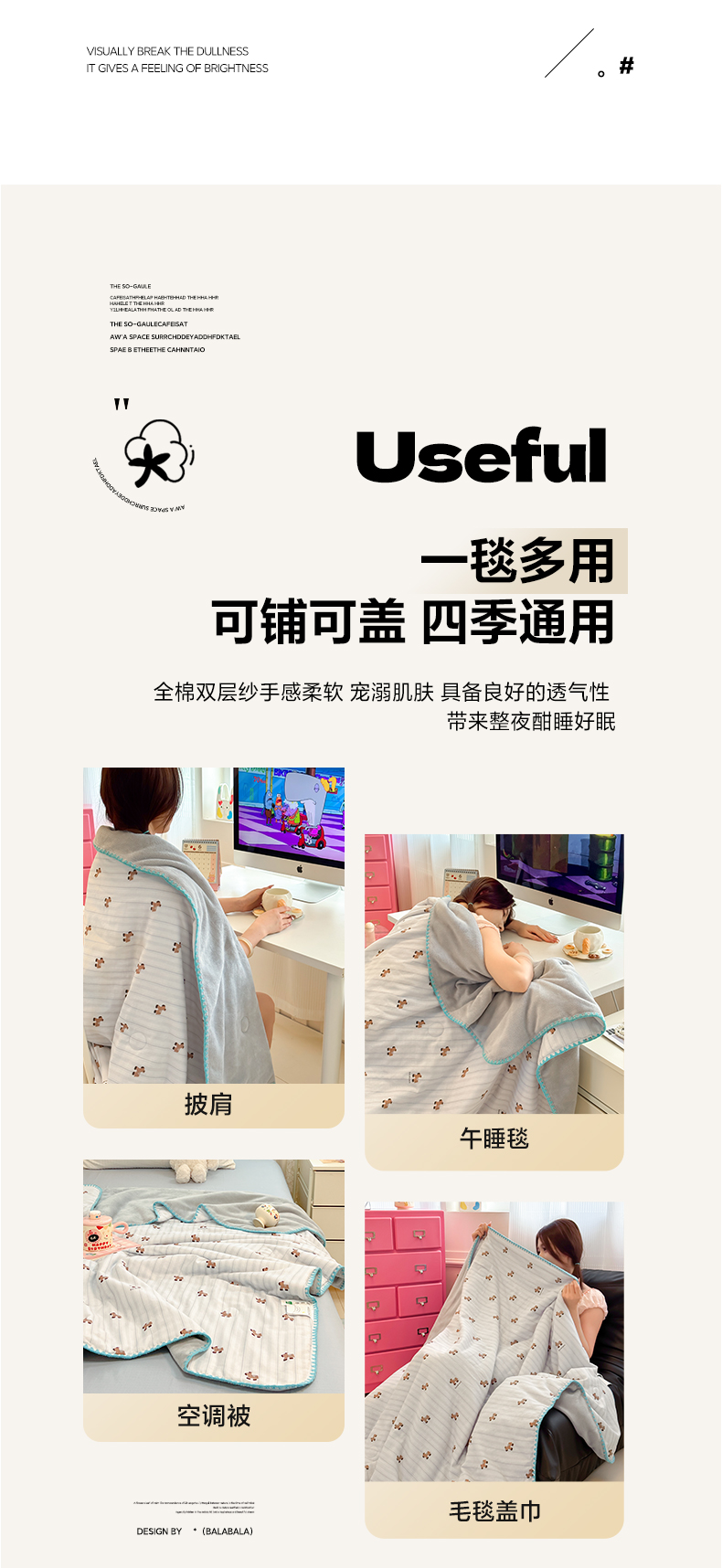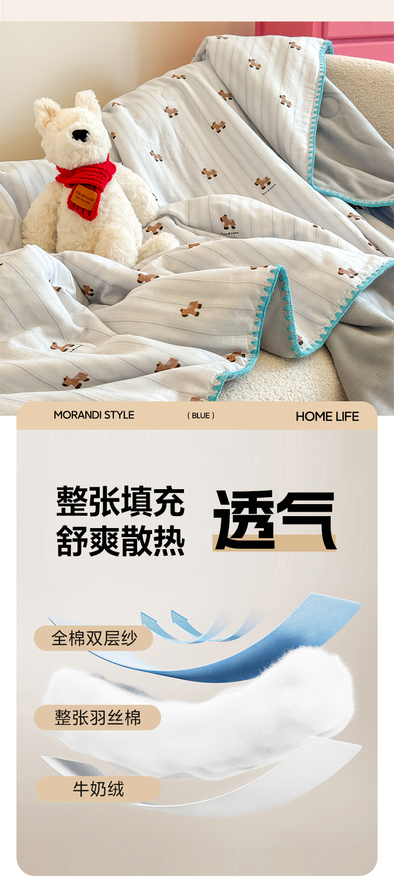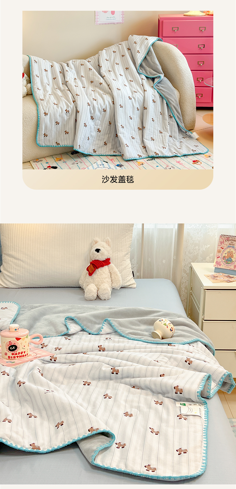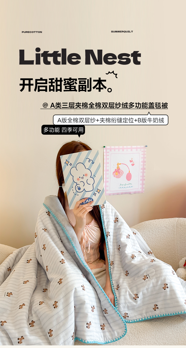 (总)妮可 2026新款跑量款全棉双层纱绒四季可用床盖系列,元气萌宠,花园兔宝,蓝汪拾趣,暖阳熊仔,甜梦凯蒂,甜心乐园,芋泥奶霜,组合图(仅参考)