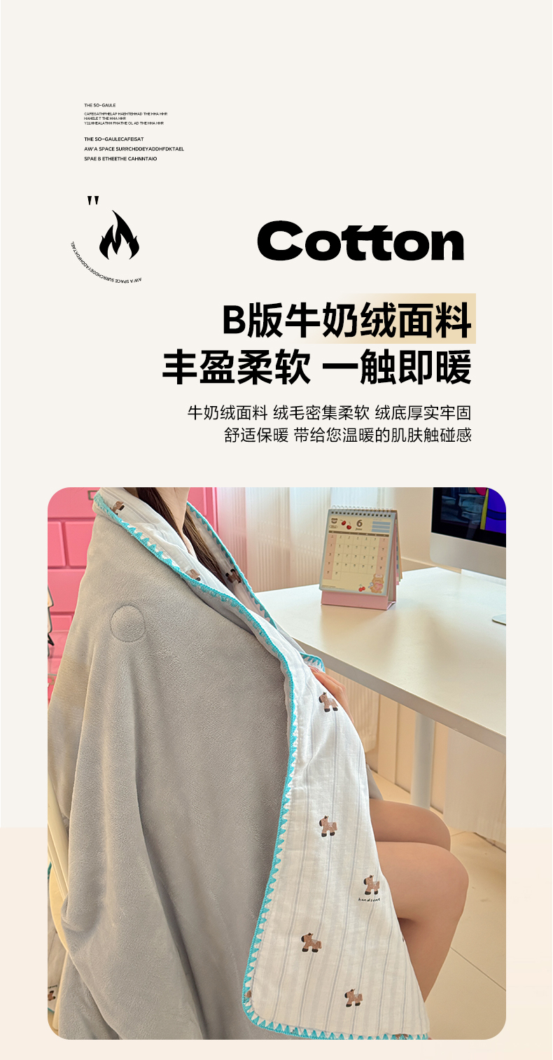 妮可 2026新款A类三层夹棉全棉双层纱绒多功能盖毯被 小马日记