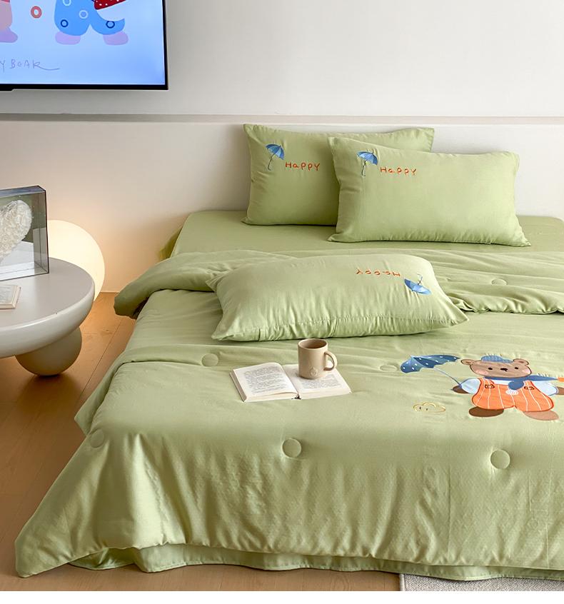• 91家纺网 家纺一手货源 找家纺 鸣升家纺 2026新款全棉夏被双层纱贴布绣100%棉花夏被四件套 熊熊乐园-绿 91家纺网 家纺一手货源 找家纺 鸣升家纺 2026新款全棉夏被双层纱贴布绣100%棉花夏被四件套 熊熊乐园-绿