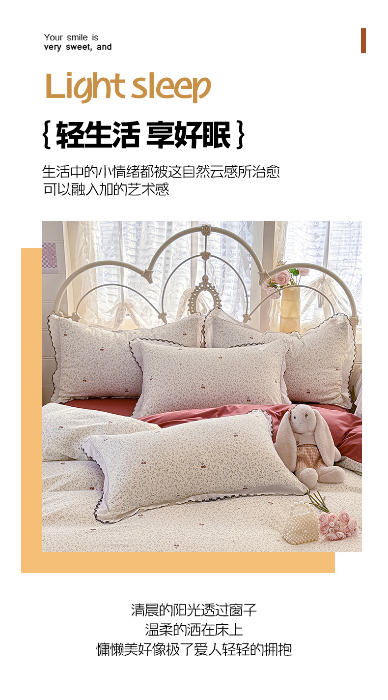 商品名称:莉莉安家纺 2026新款古法水洗云感棉印花单枕套 古法-春野樱红