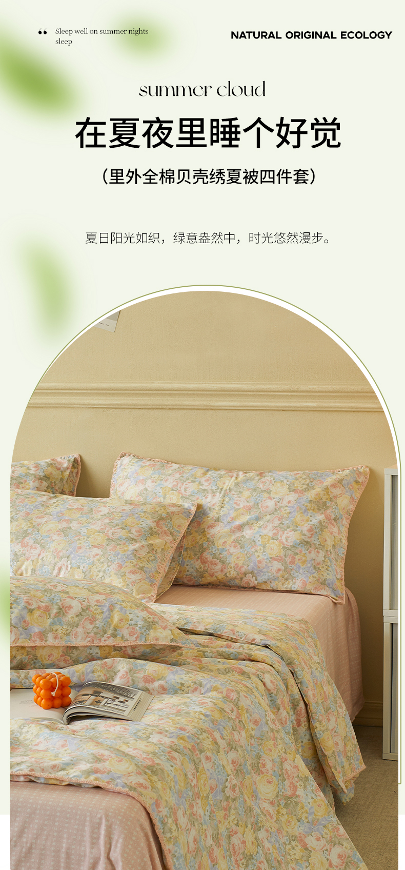 商品名称:暖阳 2026新款全棉贝壳边棉花夏被夏凉被空调被 暖阳绿意