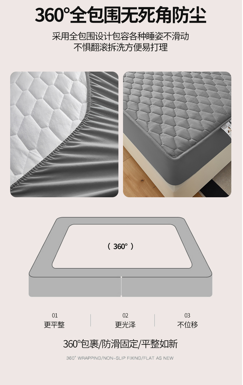 当前位置: 91家纺网 > 商品网购 > 床上用品 > 床笠 > 三盛源 2026新款A类防水隔尿床笠单件夹棉加厚席梦思床垫保护罩防尘床单床罩床套-洛卡系列(支持小批量定制尺寸) 洛卡系列-优雅灰