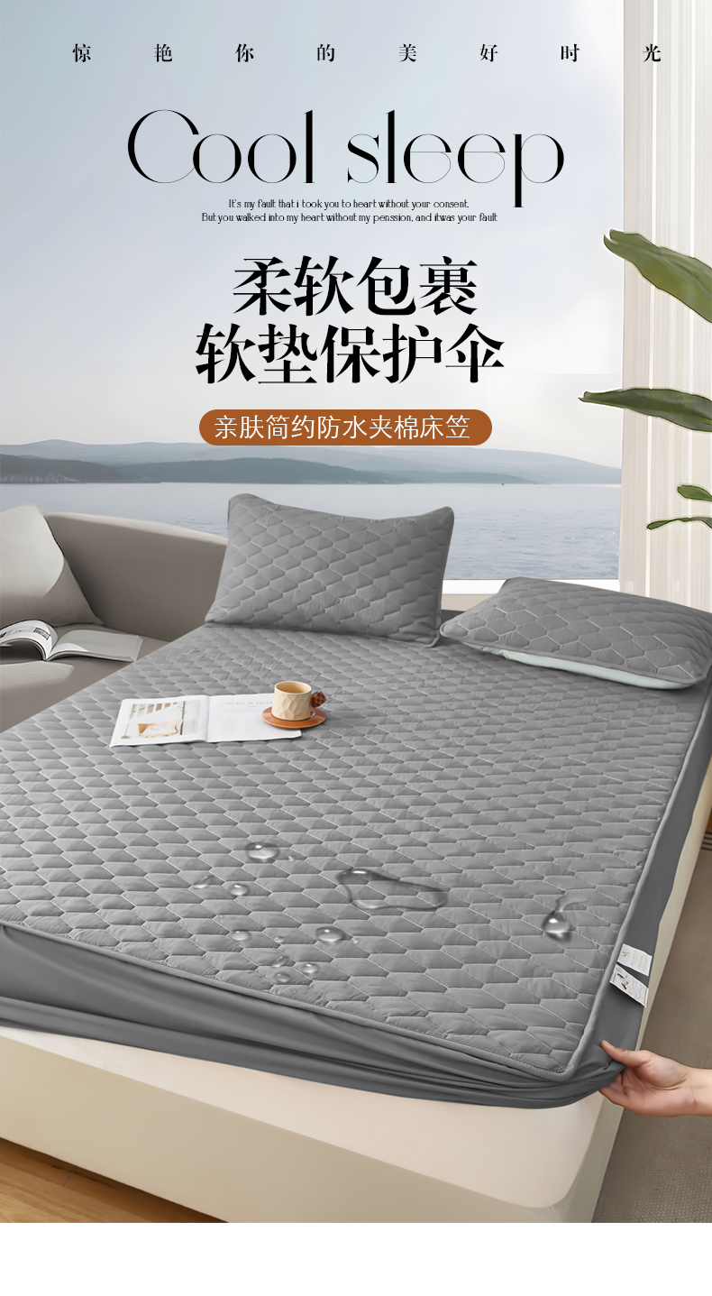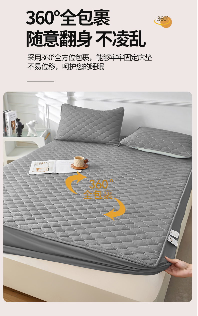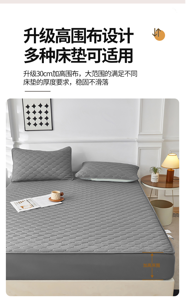 三盛源 2026新款A类防水隔尿床笠单件夹棉加厚席梦思床垫保护罩防尘床单床罩床套-洛卡系列(支持小批量定制尺寸) 洛卡系列-优雅灰