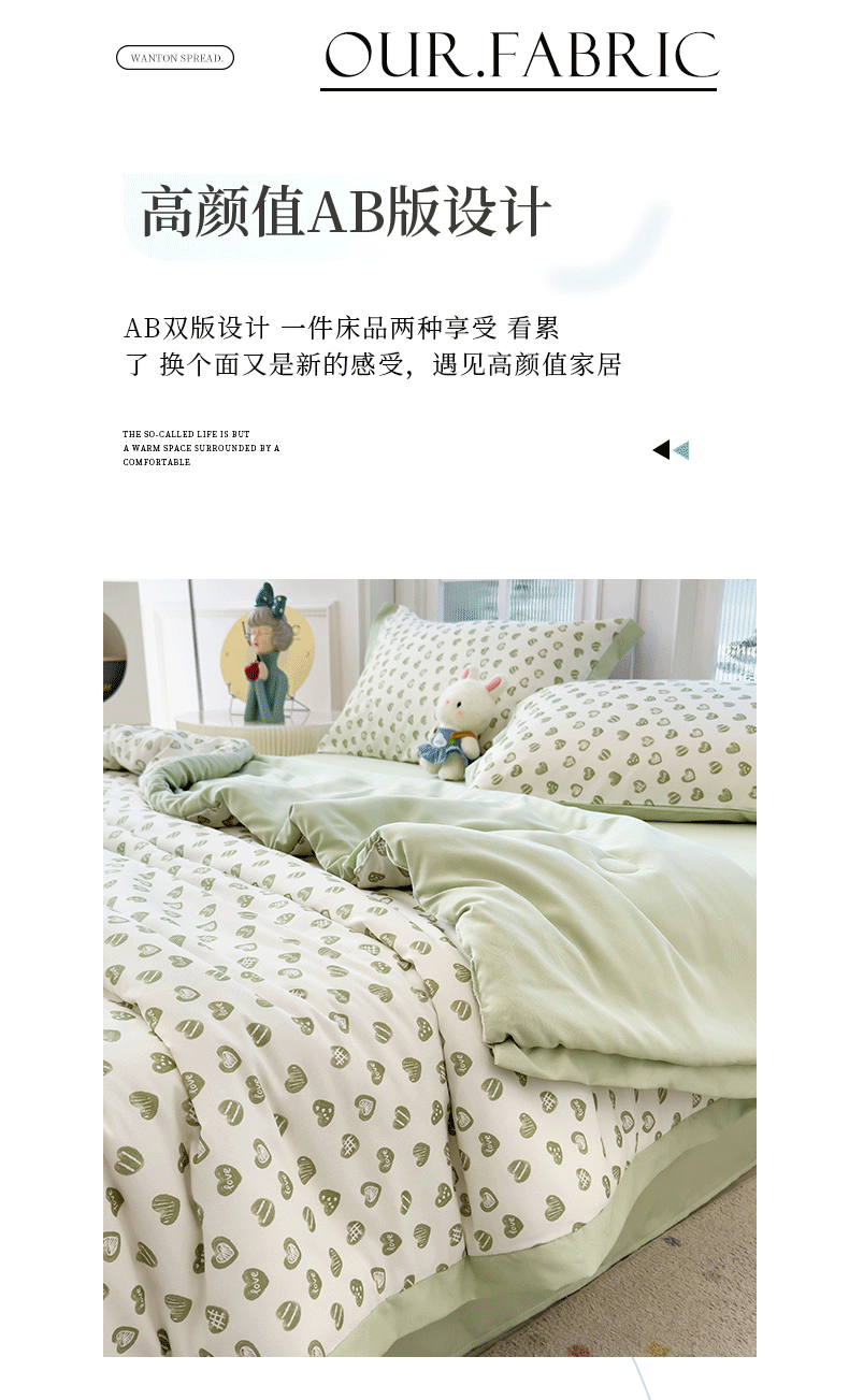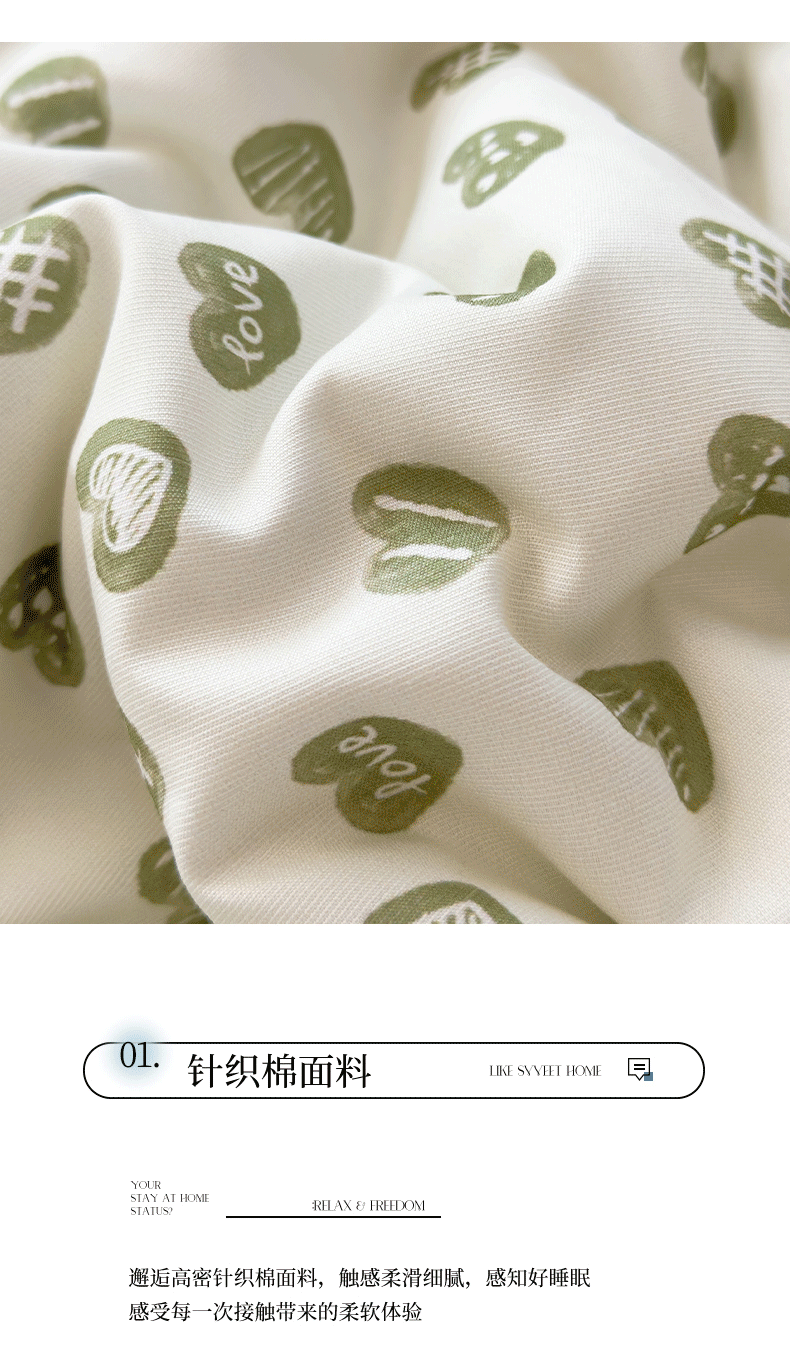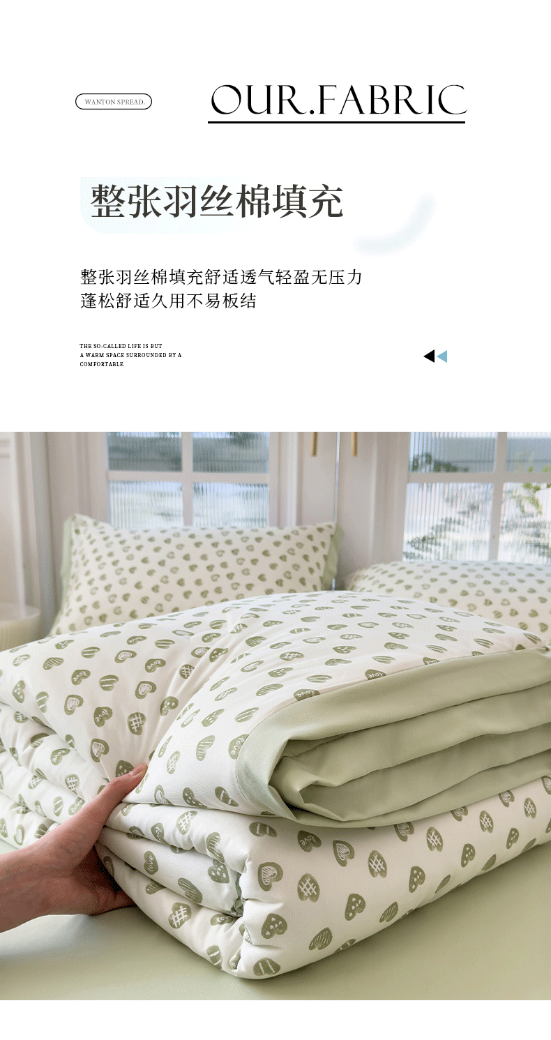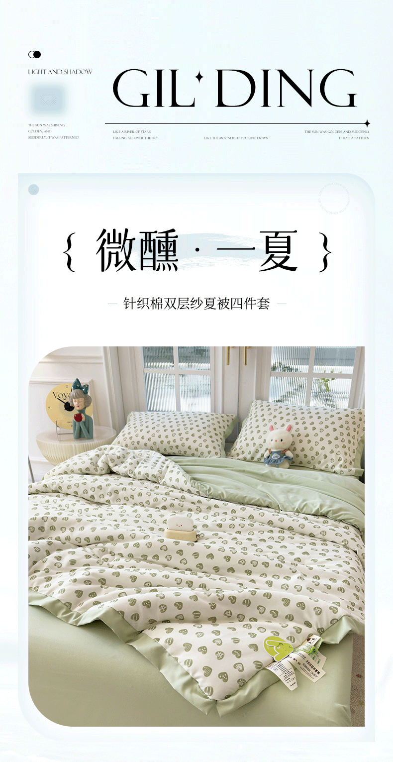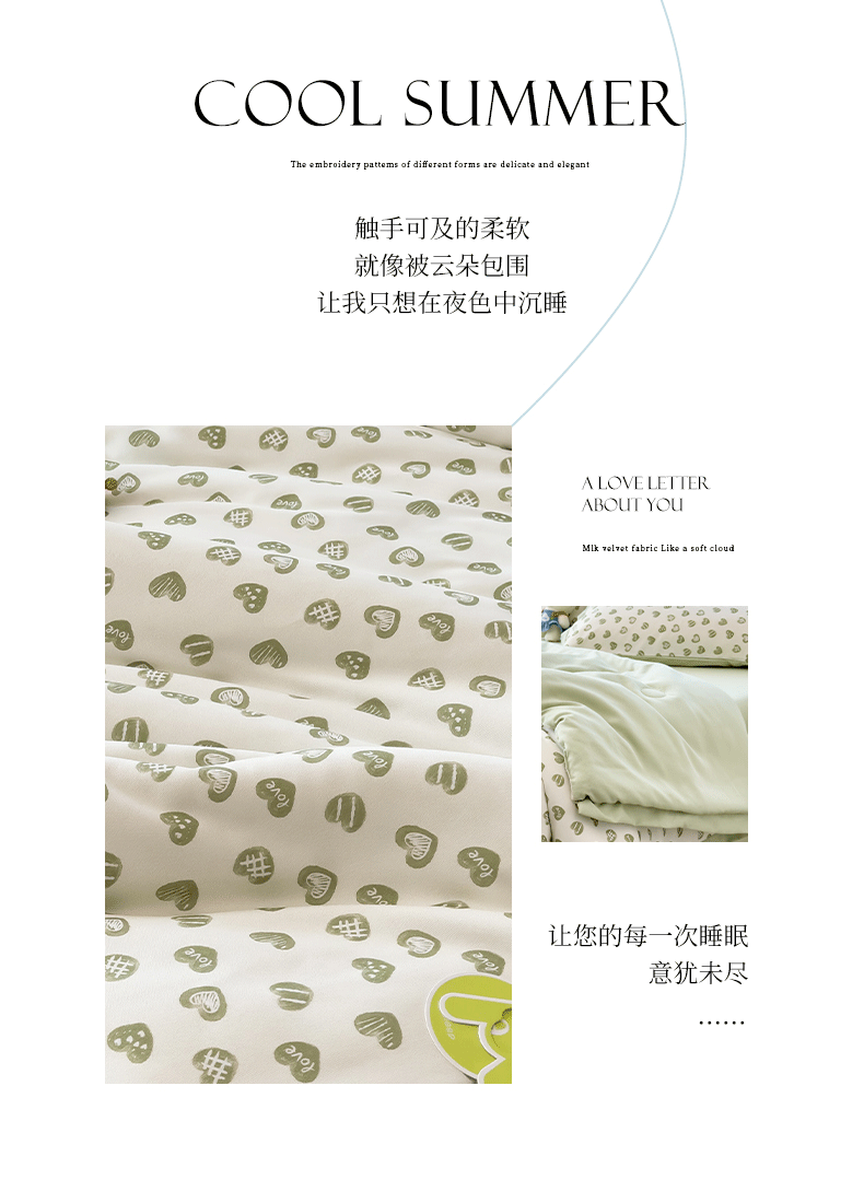 当前位置: 91家纺网 > 商品网购 > 床品套件 > 四件套 > 夏被四件套 > 悦织语 2026新款A类针织棉双层纱韩版夏被四件套空调被 绿色爱心
