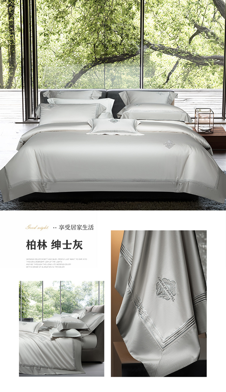 诗黛尔家纺 2026春夏新款 高端长绒棉刺绣 柏林系列 柏林-绅士灰