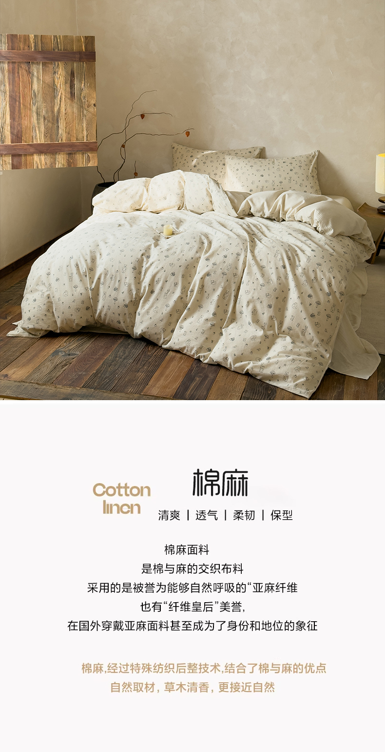 当前位置: 91家纺网 > 商品网购 > 床品套件 > 四件套 > 棉麻四件套 > 对白 2026新款A类棉麻文艺风人字纹印花四件套 棉麻-洛神