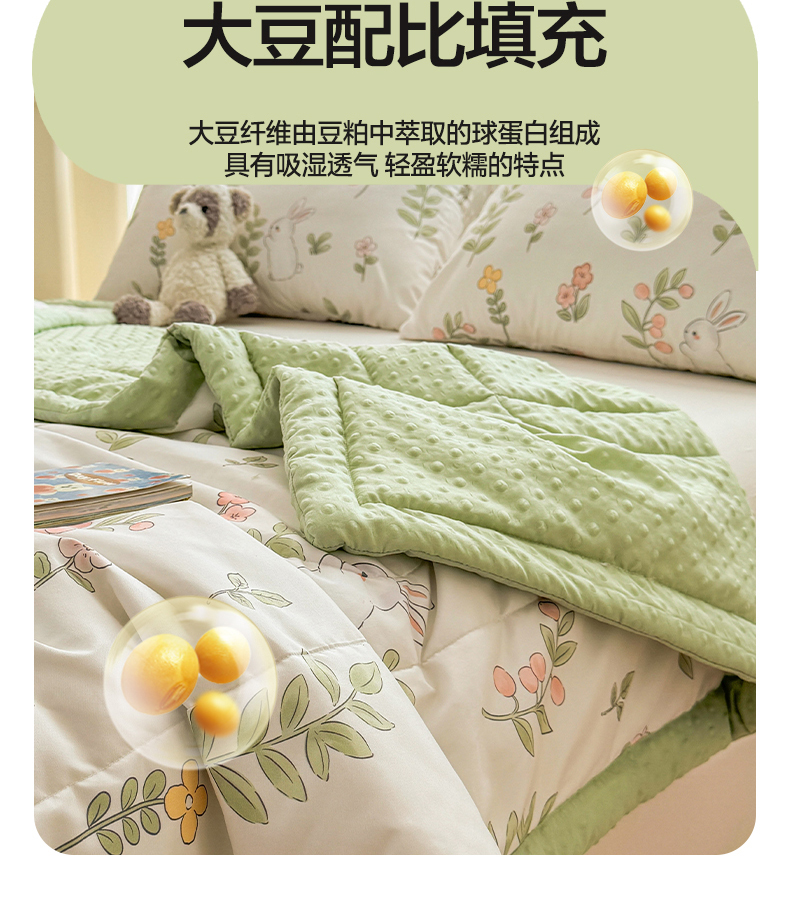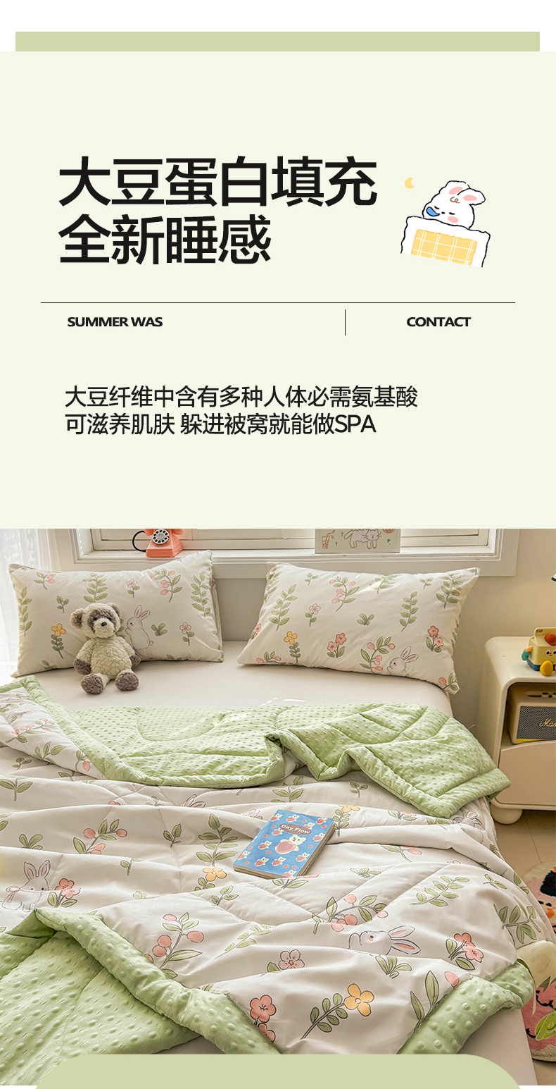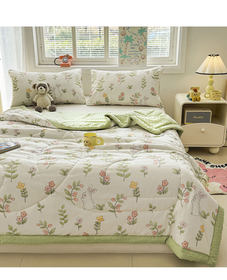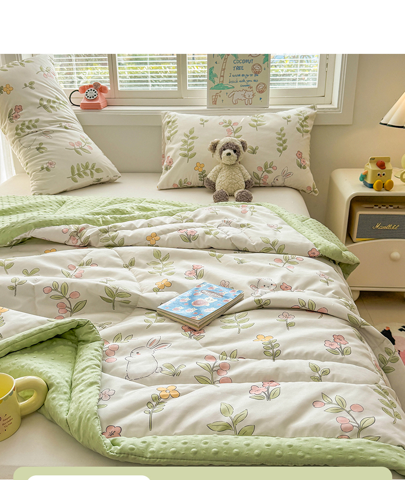 商品名称:悦织语 2026新款A类水洗棉双层纱豆豆被大豆夏凉被 微醺兔兔