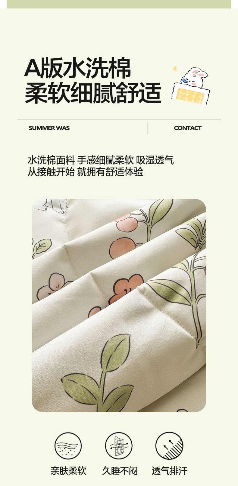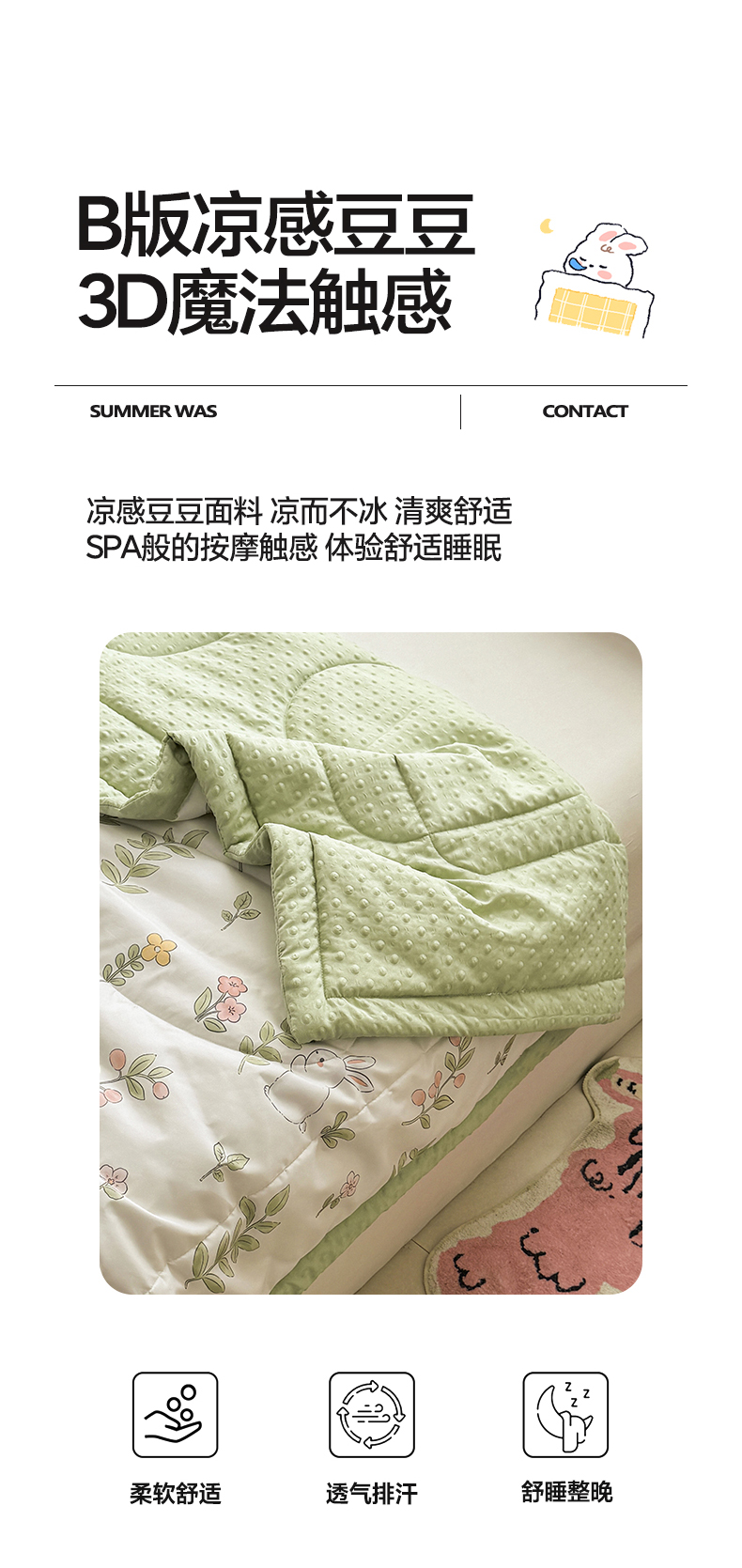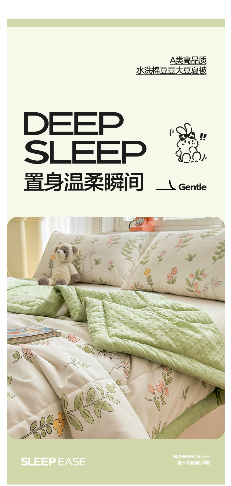 商品名称:悦织语 2026新款A类水洗棉双层纱豆豆被大豆夏凉被 微醺兔兔