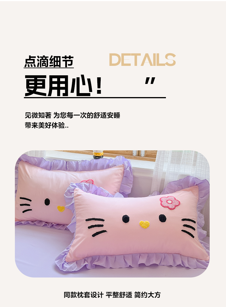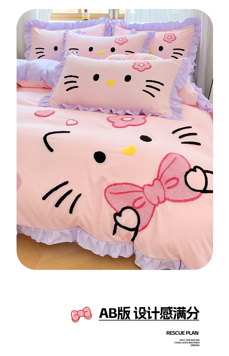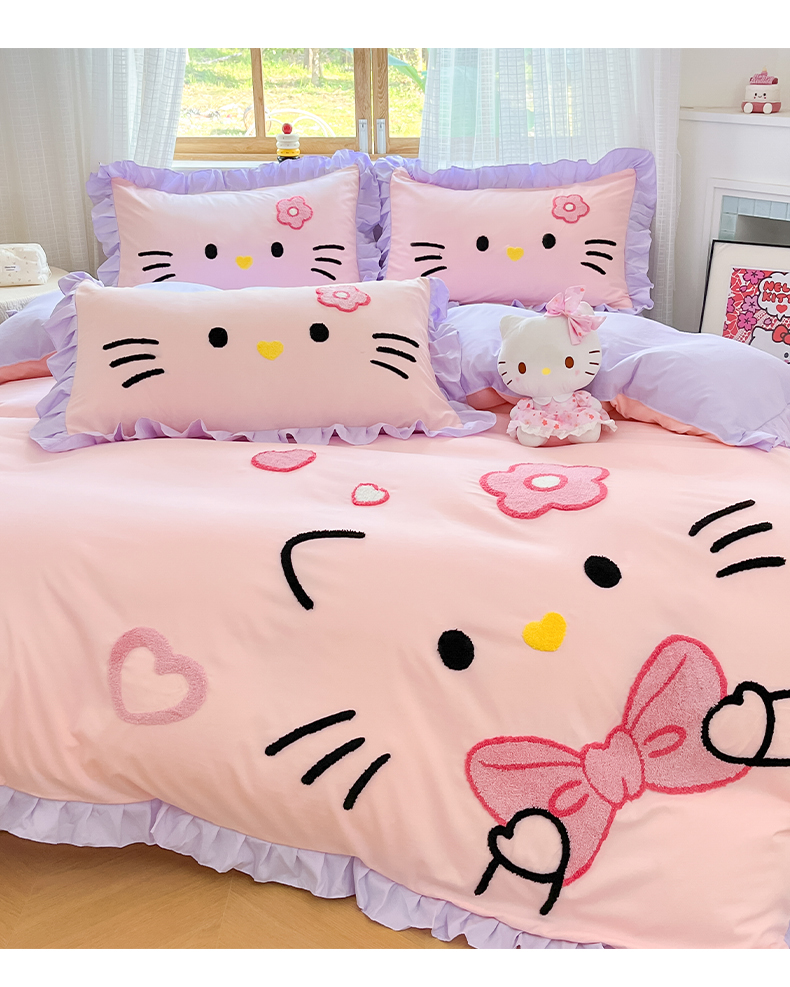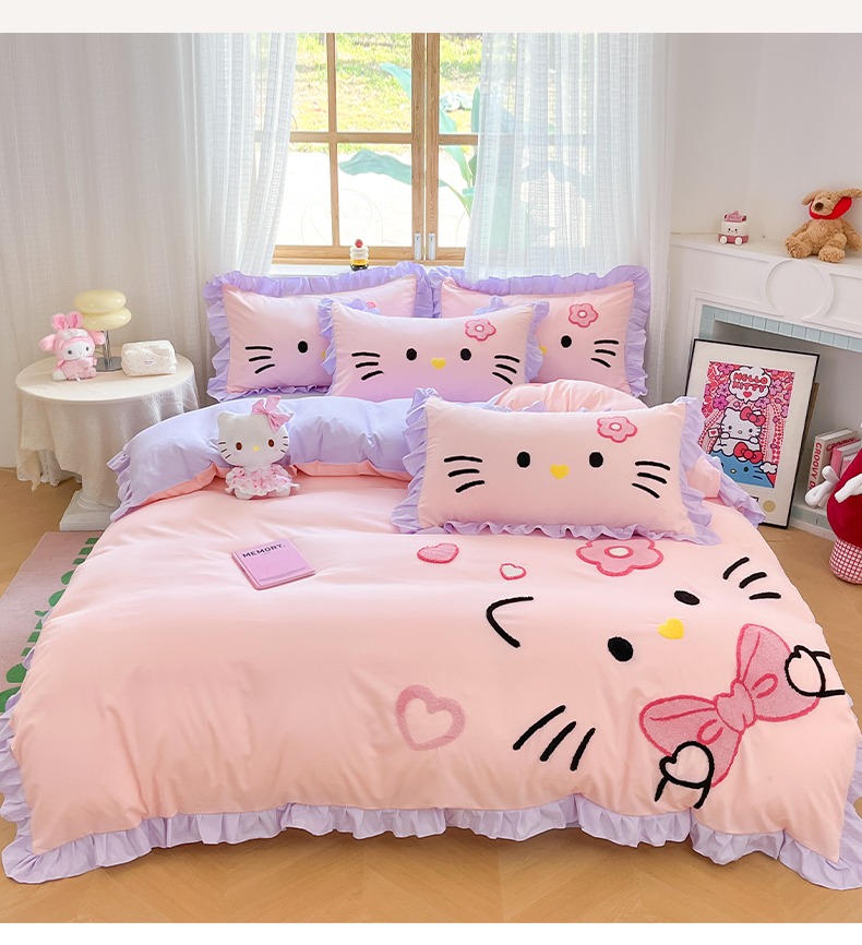 当前位置: 91家纺网 > 商品网购 > 床品套件 > 四件套 > 水洗棉四件套 > 泉欣家纺 2026新款网红可爱卡通 公主风毛巾绣花水洗棉四件套(专版花型) 甜甜猫咪-粉紫