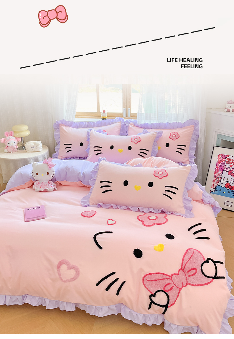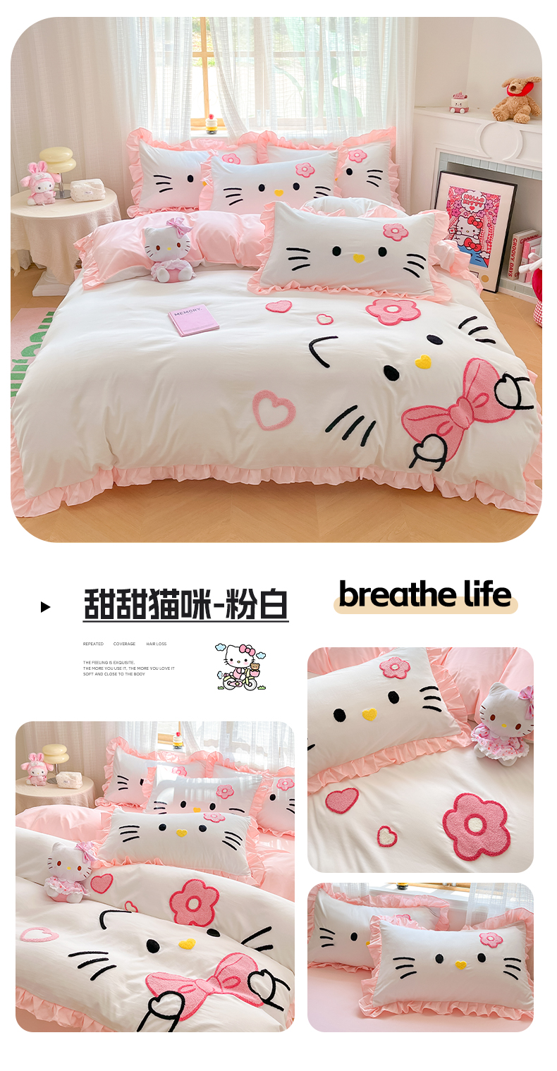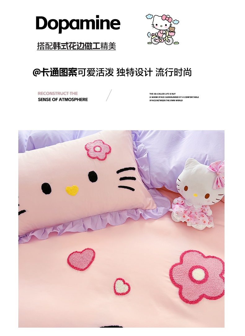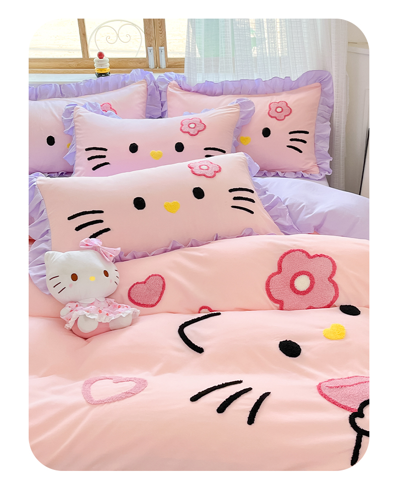 当前位置: 91家纺网 > 商品网购 > 床品套件 > 四件套 > 水洗棉四件套 > 泉欣家纺 2026新款网红可爱卡通 公主风毛巾绣花水洗棉四件套(专版花型) 甜甜猫咪-粉紫